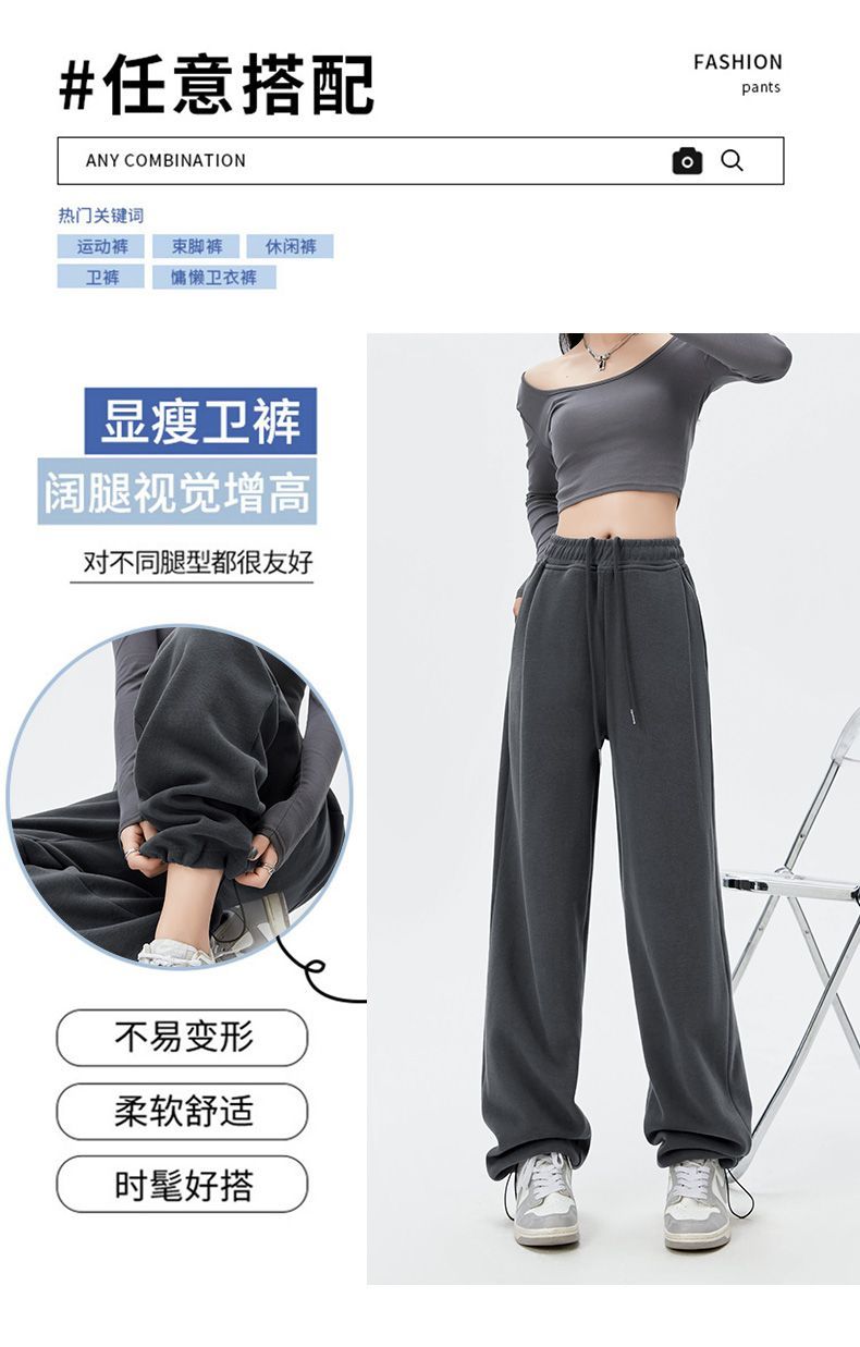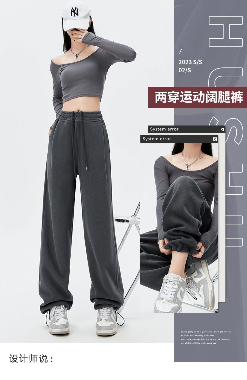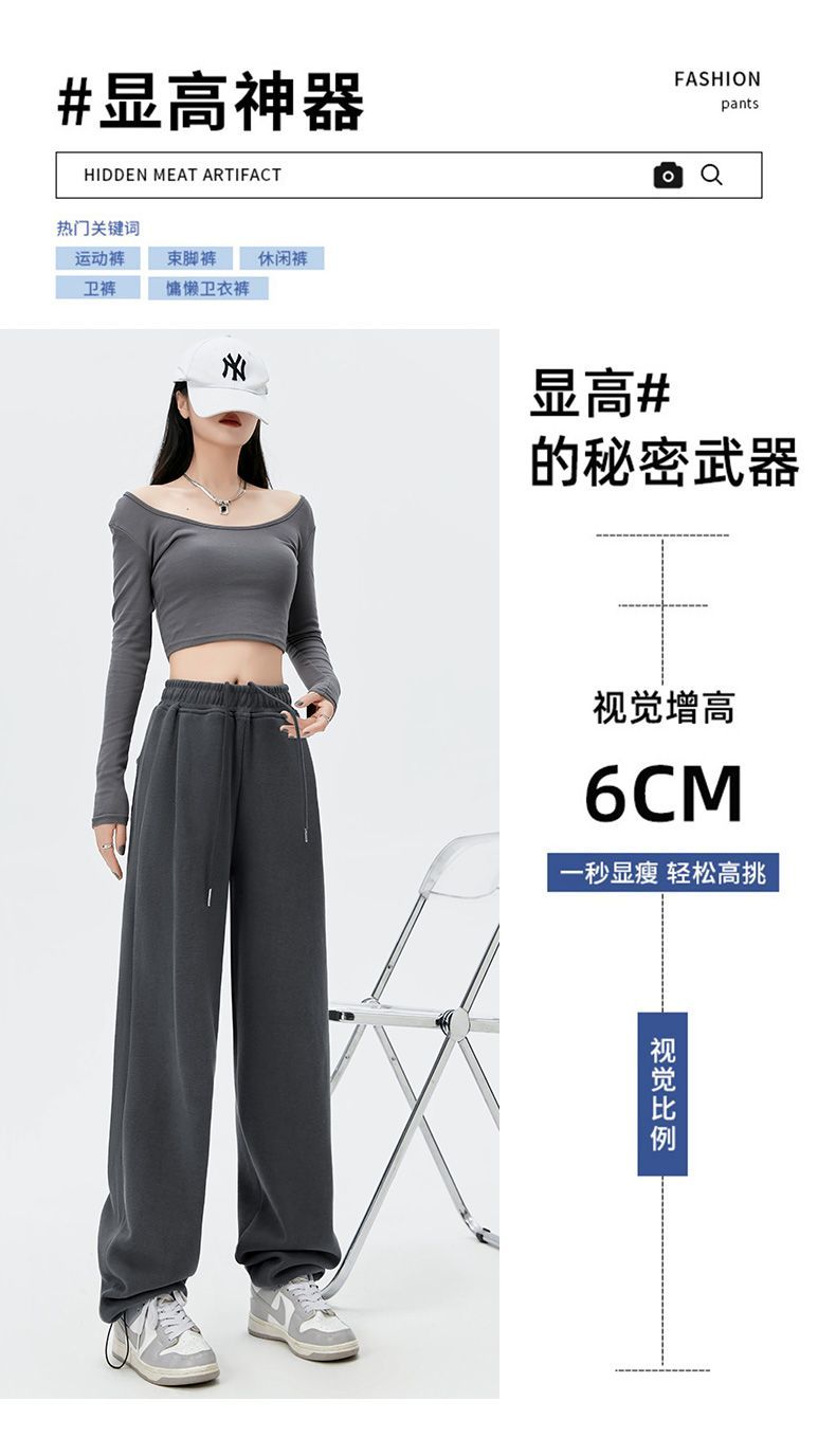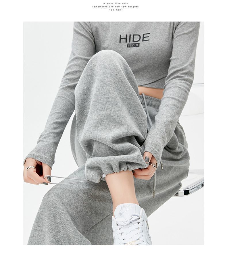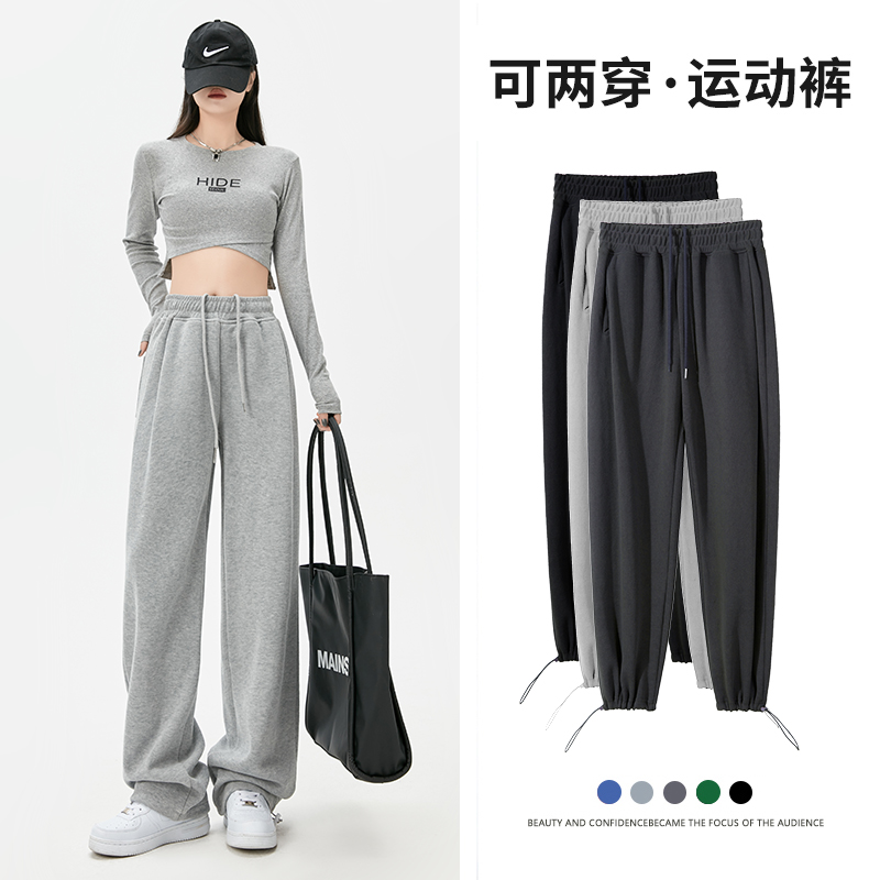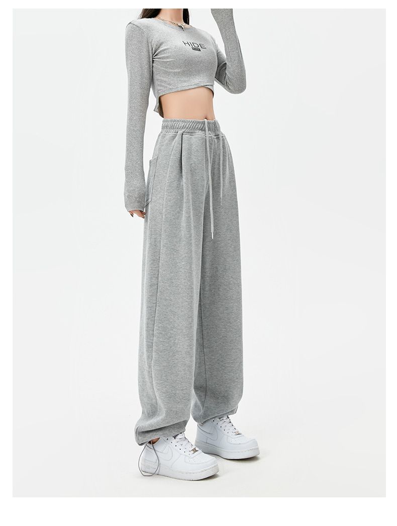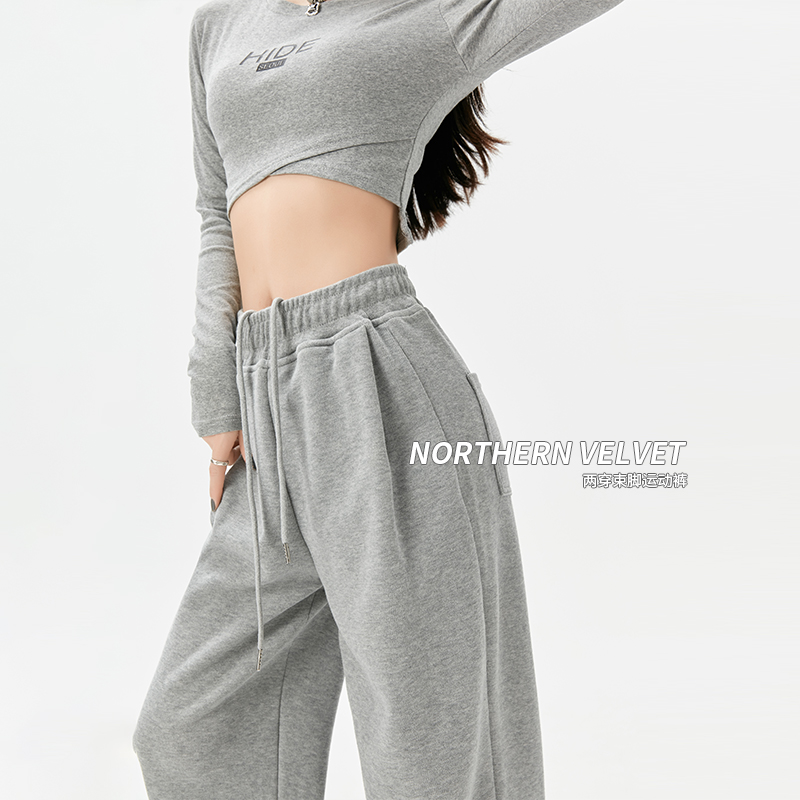 灰色運動褲女夏季薄款小個子高腰直筒寬褲美式寬鬆束腳春秋衛褲