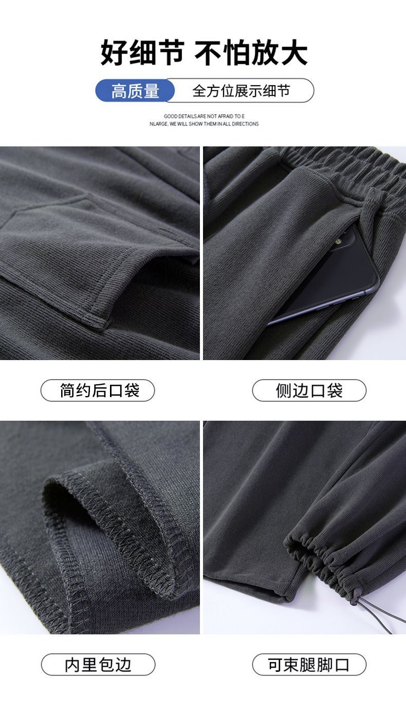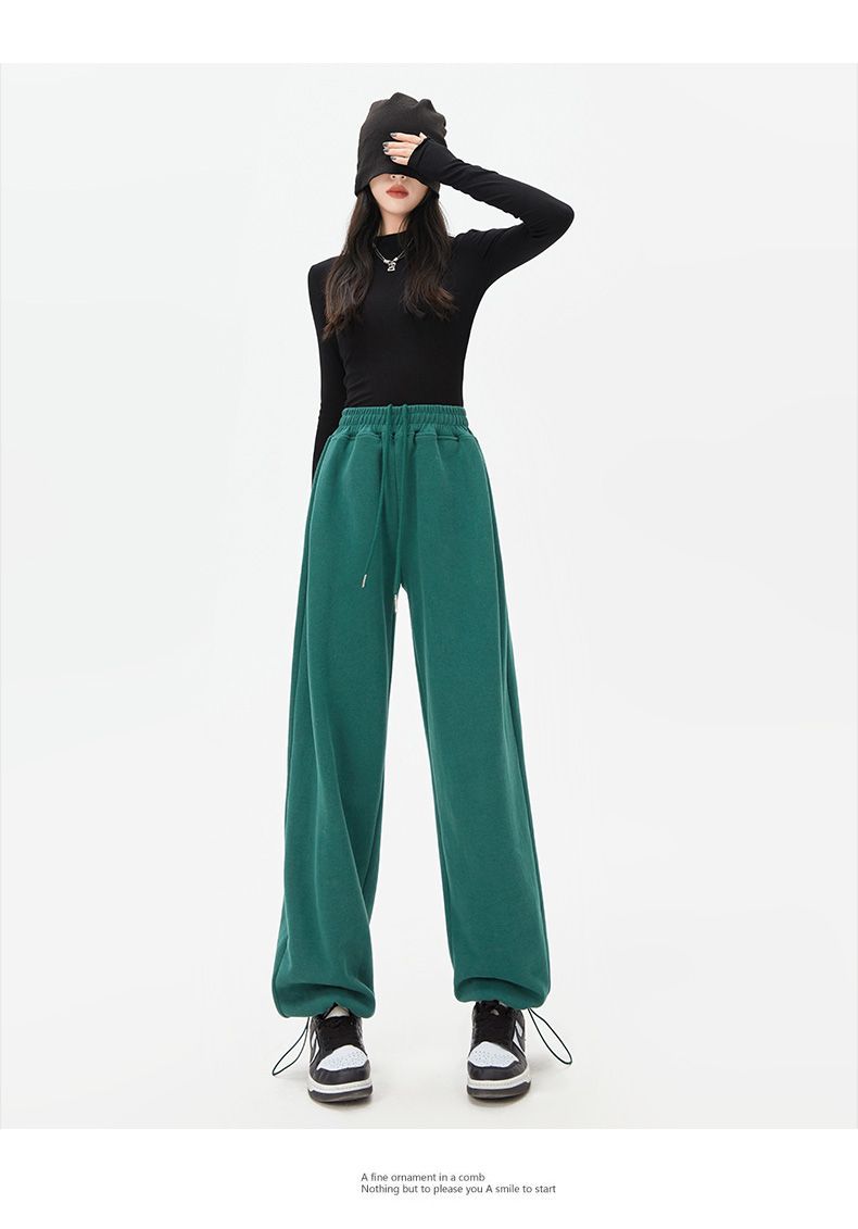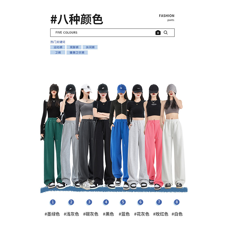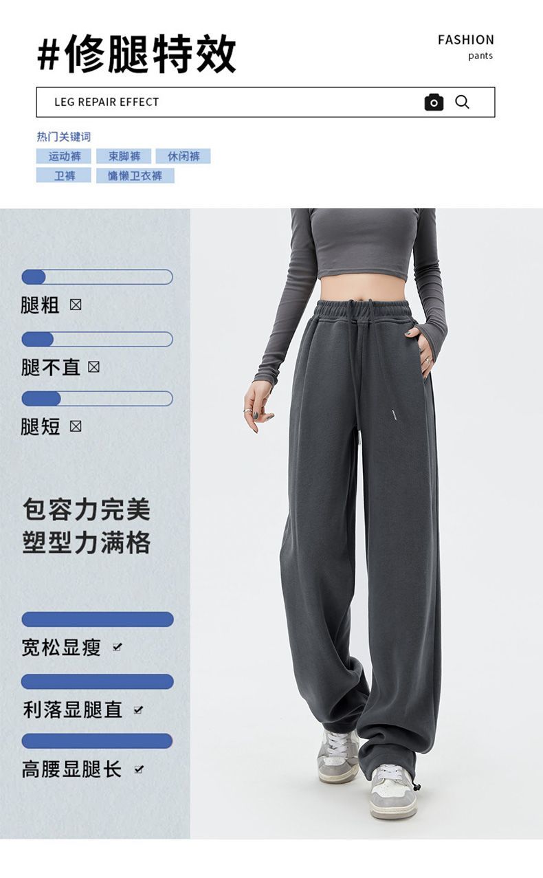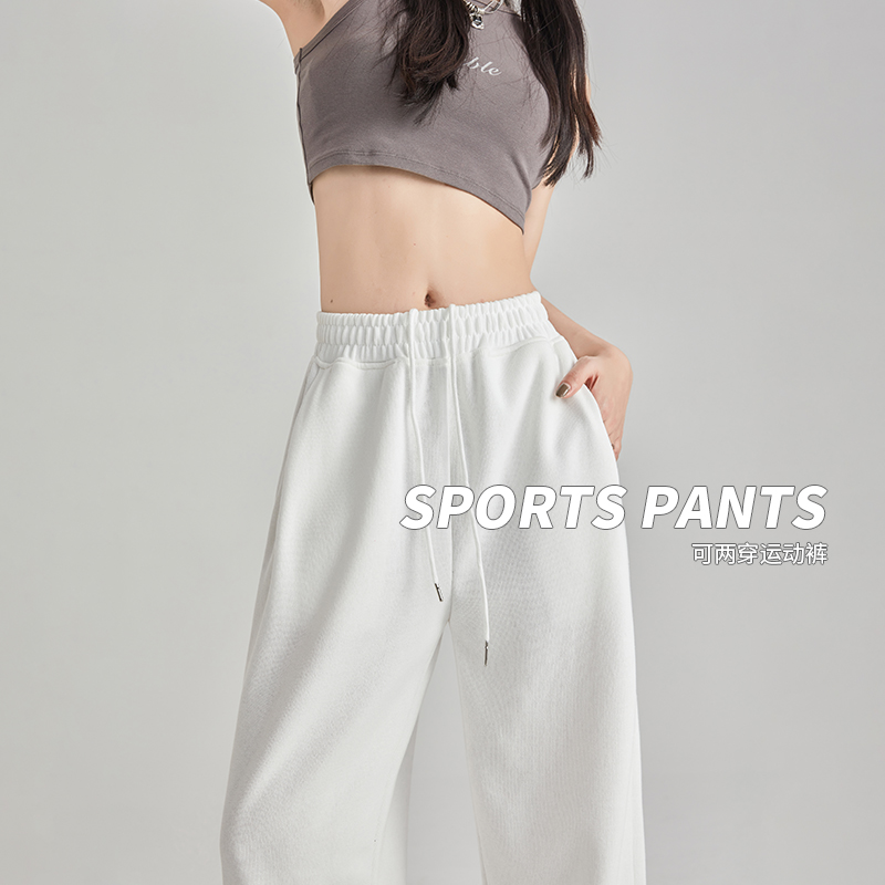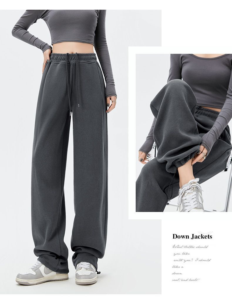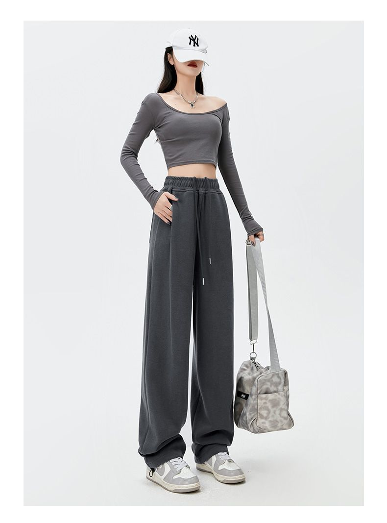 灰色運動褲女夏季薄款小個子高腰直筒寬褲美式寬鬆束腳春秋衛褲