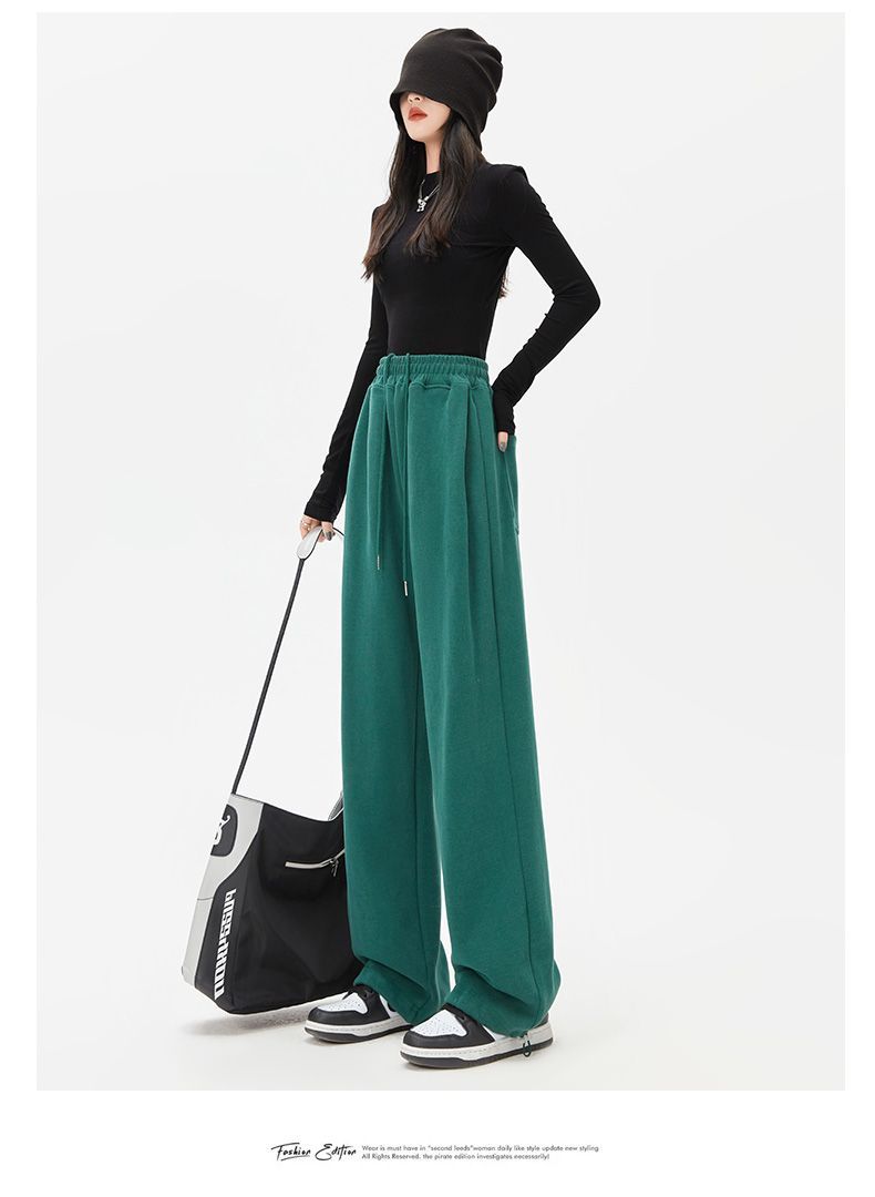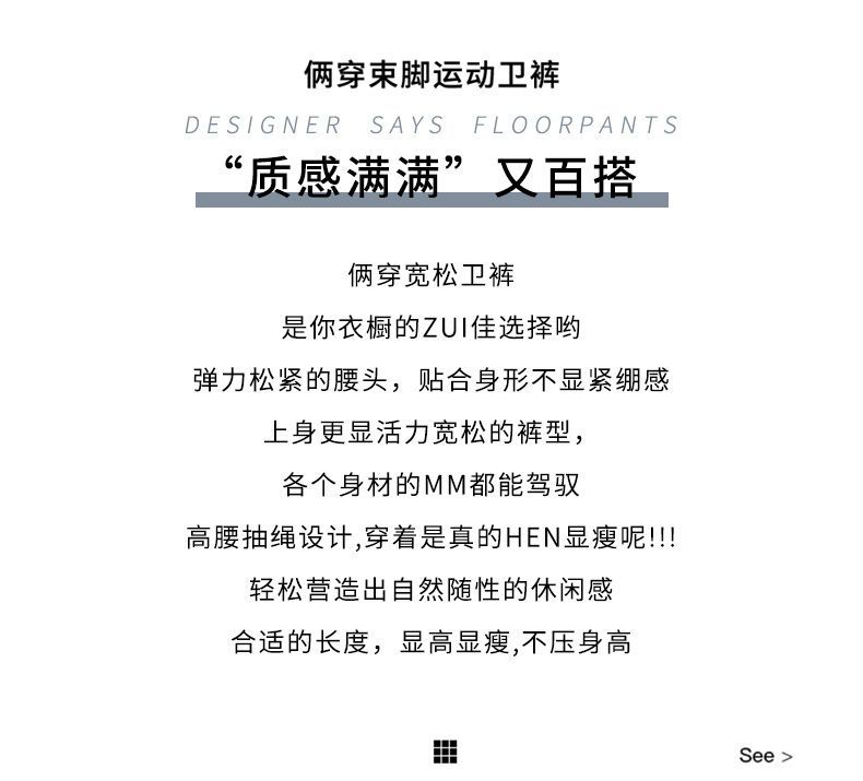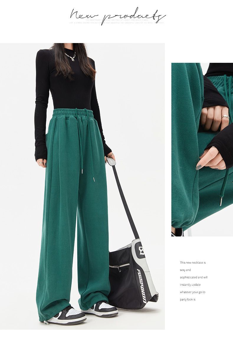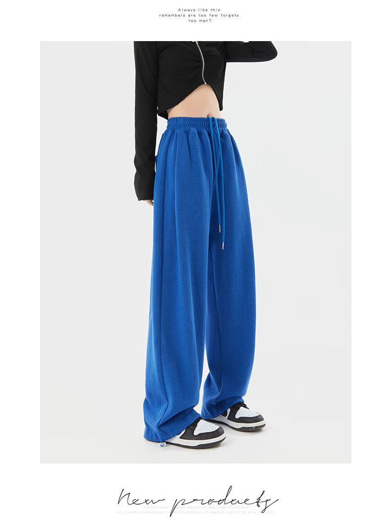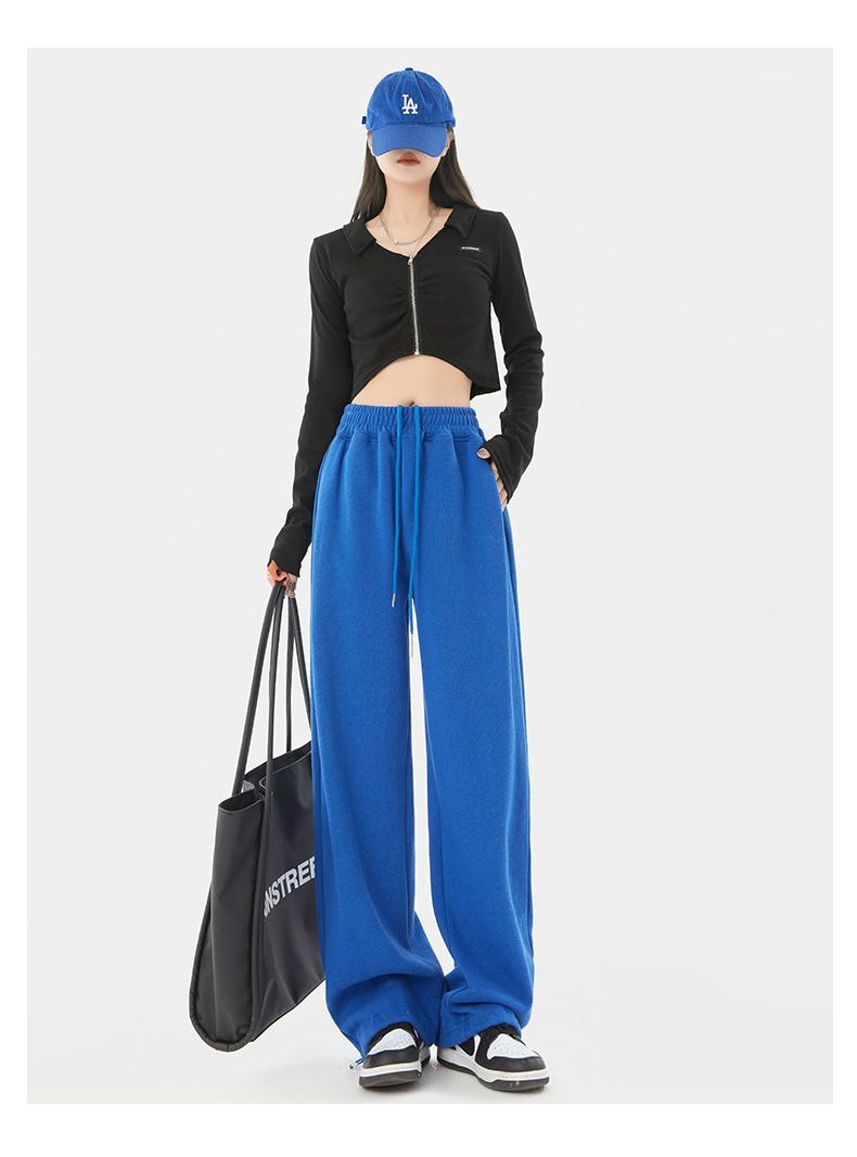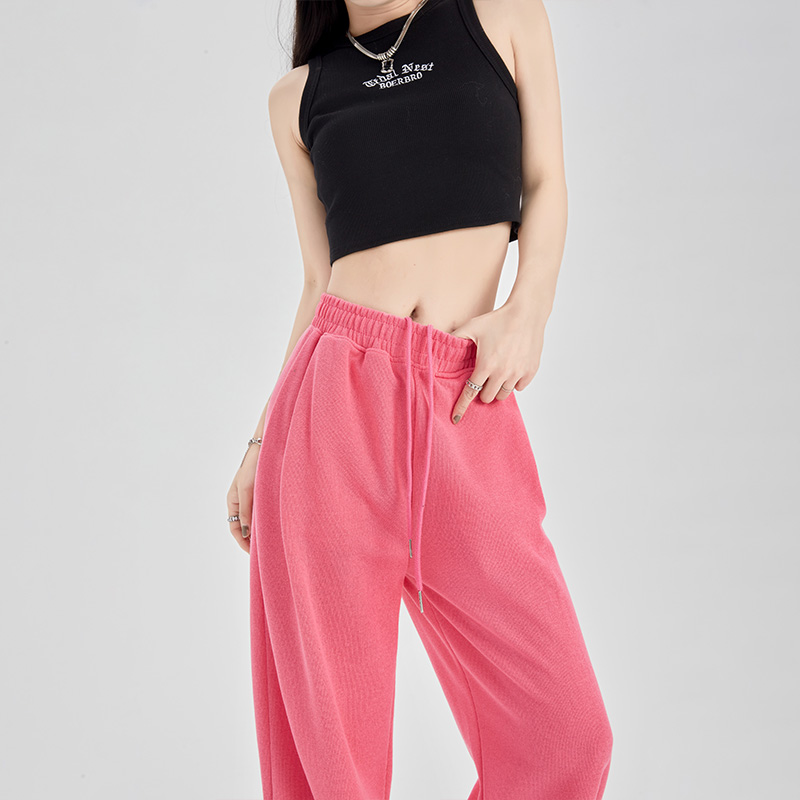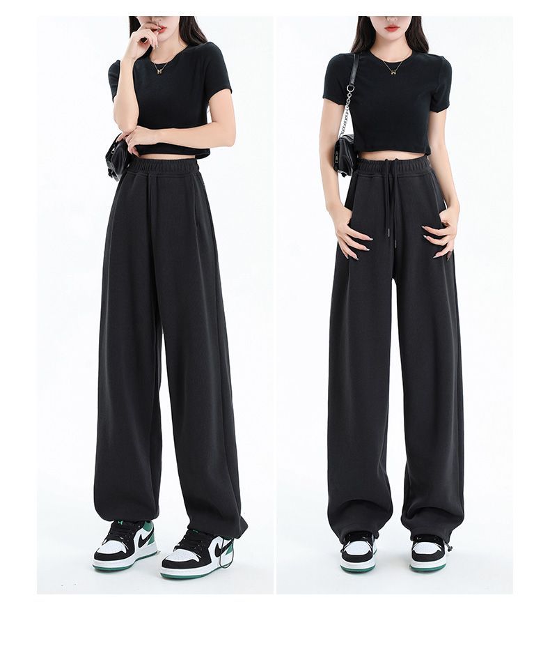 灰色運動褲女夏季薄款小個子高腰直筒寬褲美式寬鬆束腳春秋衛褲