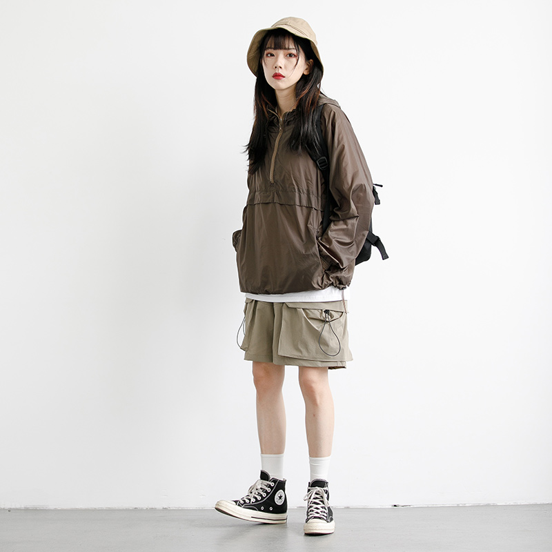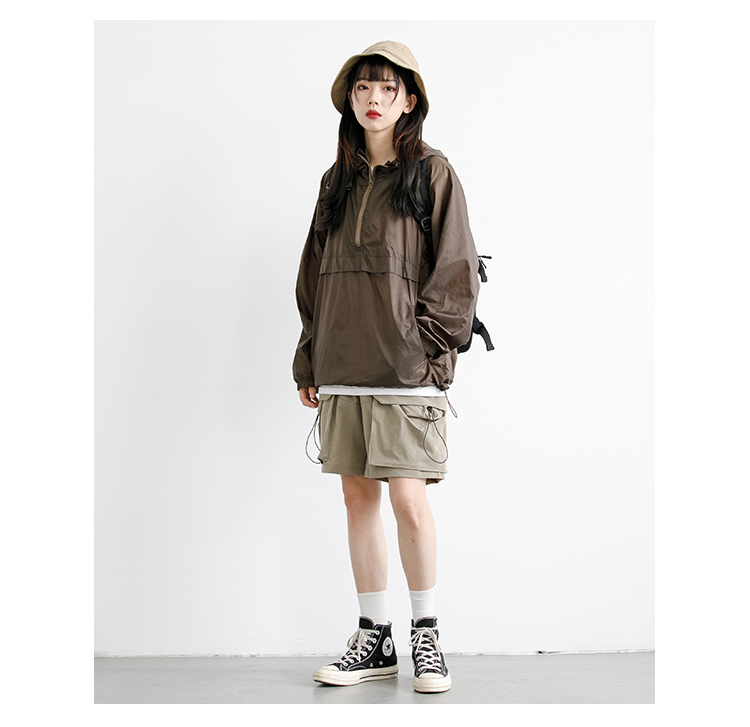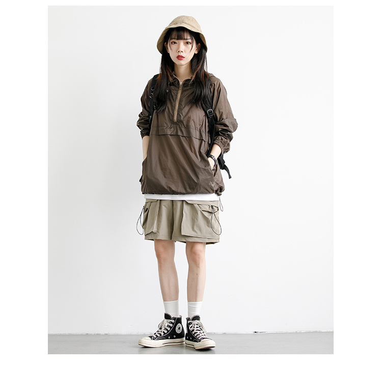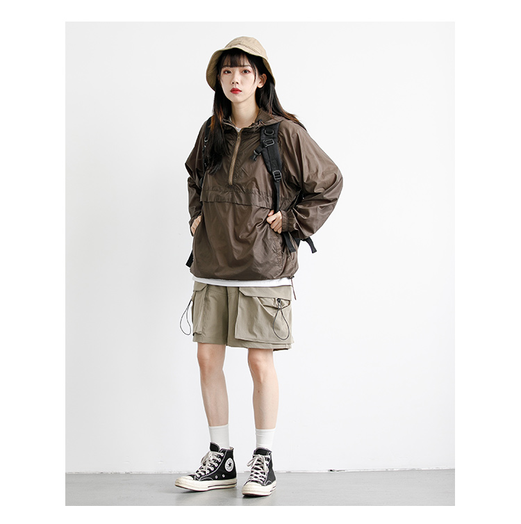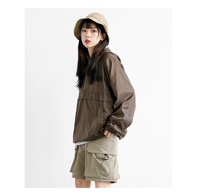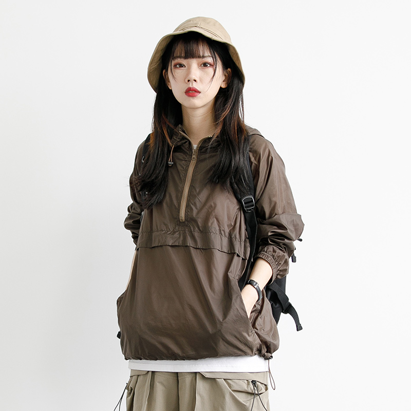 RCDB日系復古連帽套頭防曬皮膚衣男女款BF風寬鬆休閒上衣薄外套潮