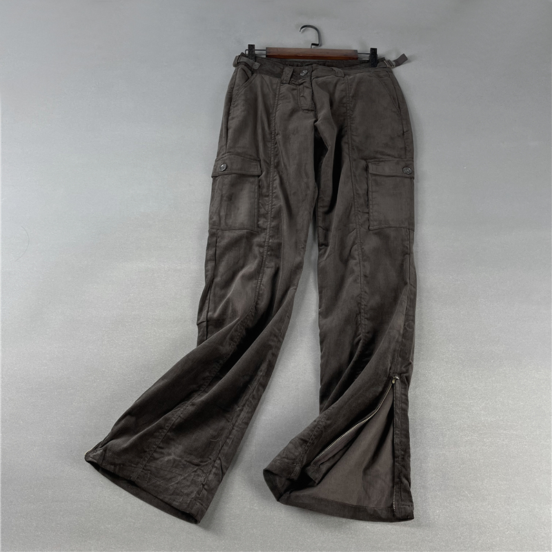外貿女裝剪標尾貨歐美風大尺碼復古燈芯絨工裝休閒褲寬鬆顯瘦闊腿褲