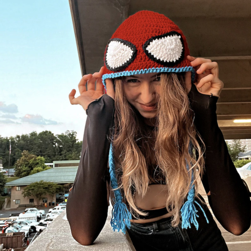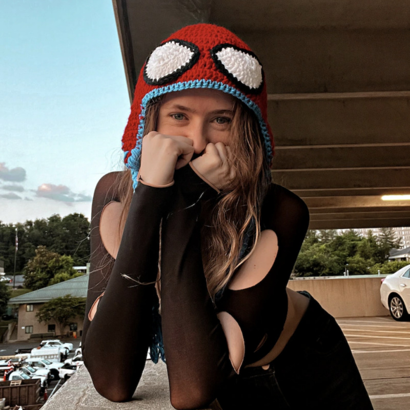 亚马逊跨境手工针织蜘蛛侠针织帽Spider Man万圣节装扮搞怪帽子