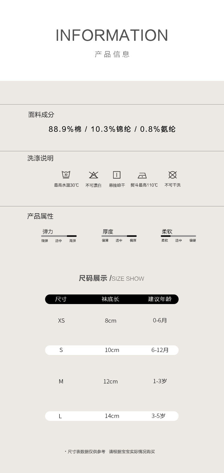 童袜尺码 XS码0-6个月,S码6-12个月,M码1-3岁,L码3-5岁