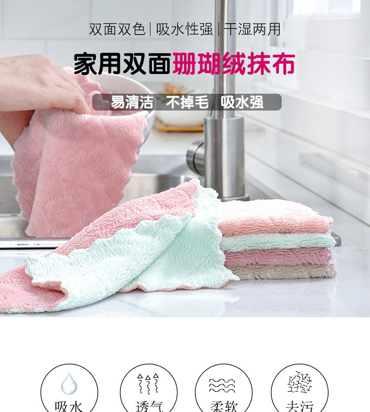双色抹布珊瑚绒不沾油厨房强吸水擦桌擦手洗碗布去污百洁布批发