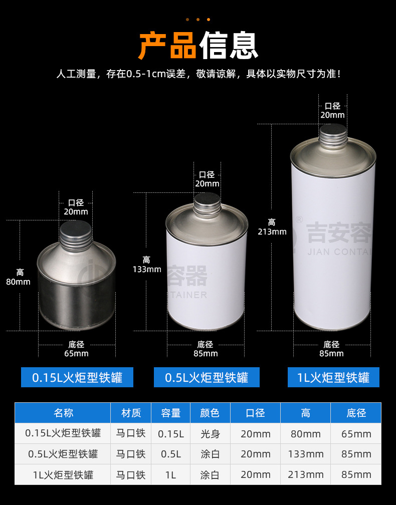 规格 150ml火炬罐,500ml火炬罐,1L火炬罐