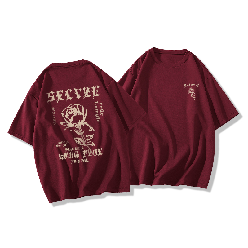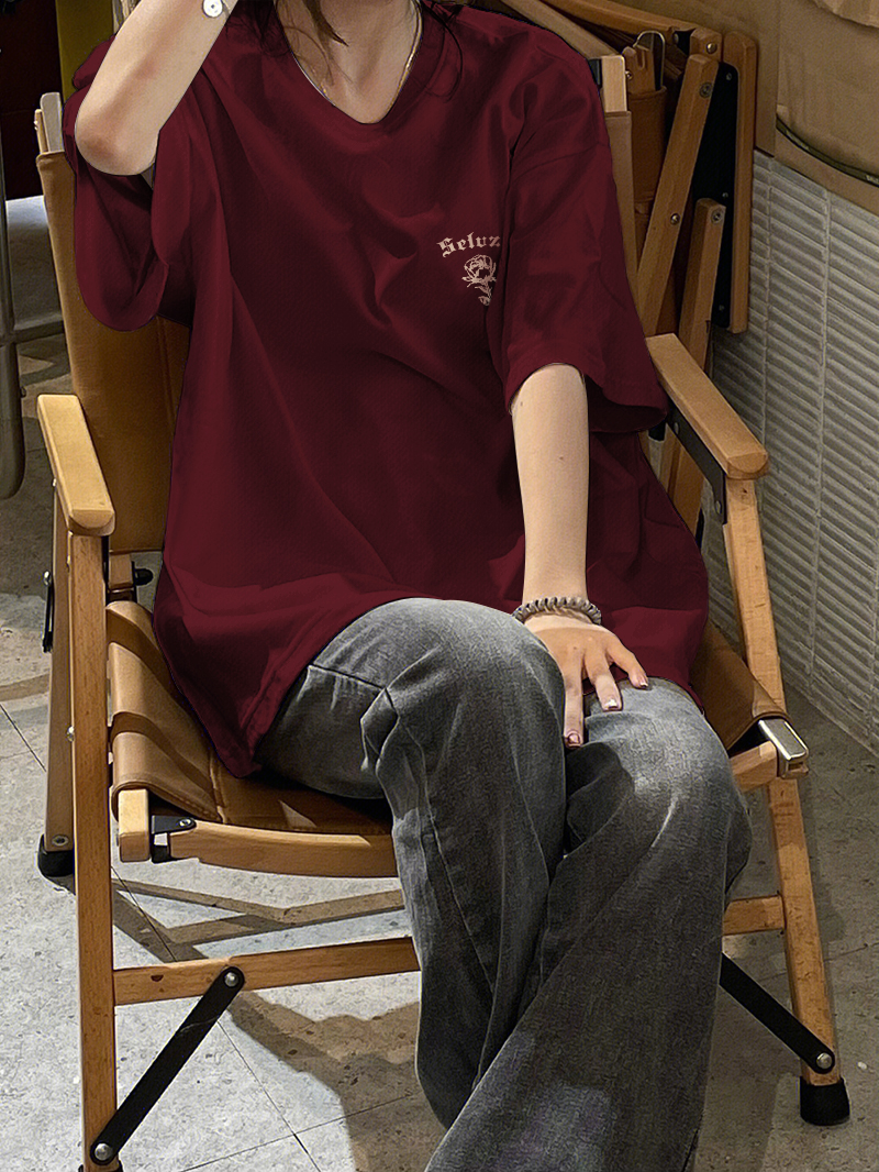 美式復古酒紅色短袖t恤女夏季寬鬆設計感小眾純棉半袖情侶裝上衣