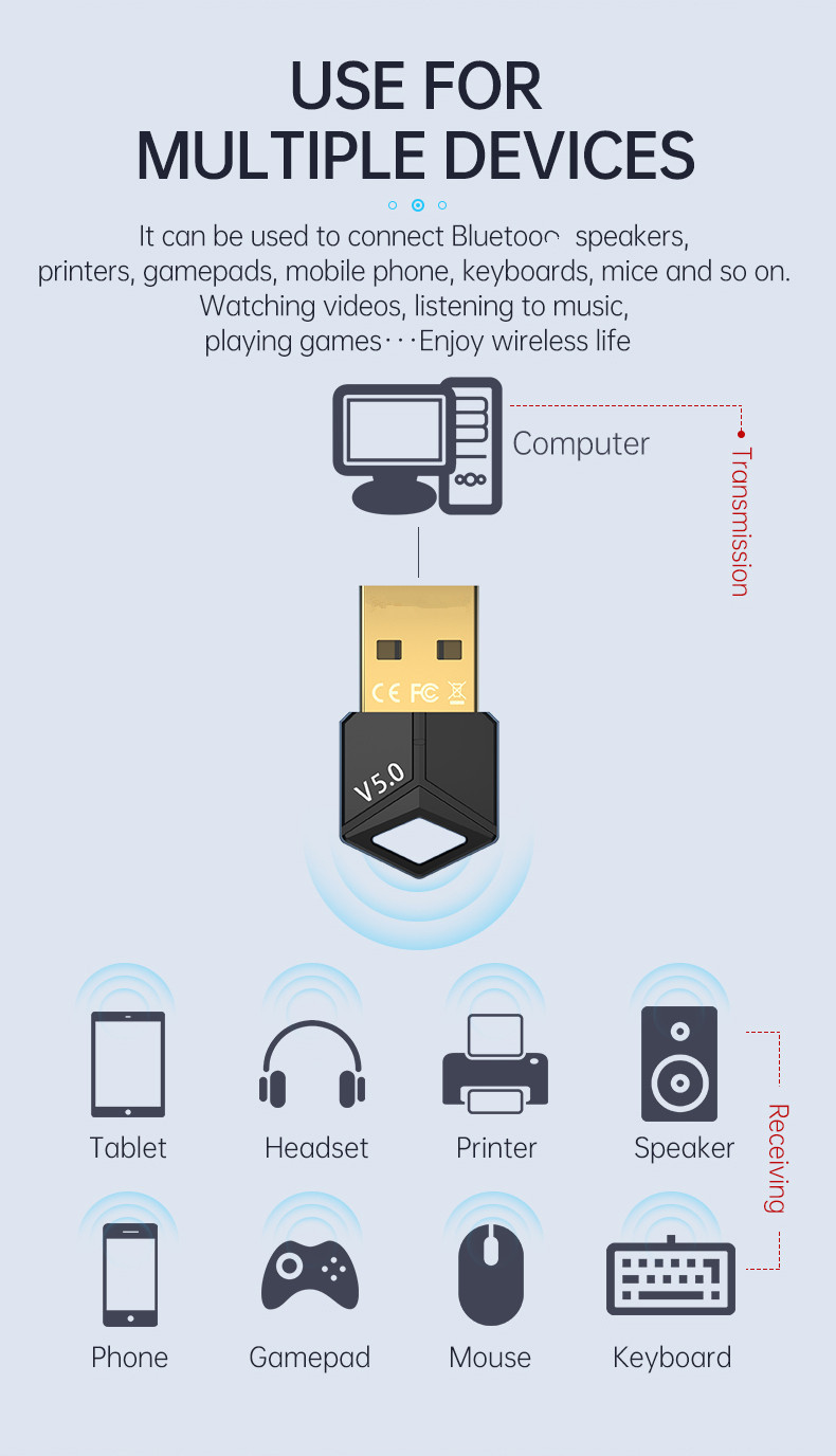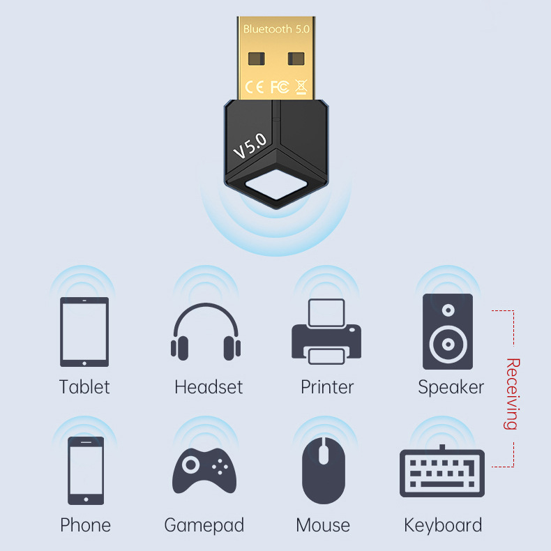 USB蓝牙接收器电脑无线音频发射器游戏手柄耳机鼠键5.0蓝牙适配器