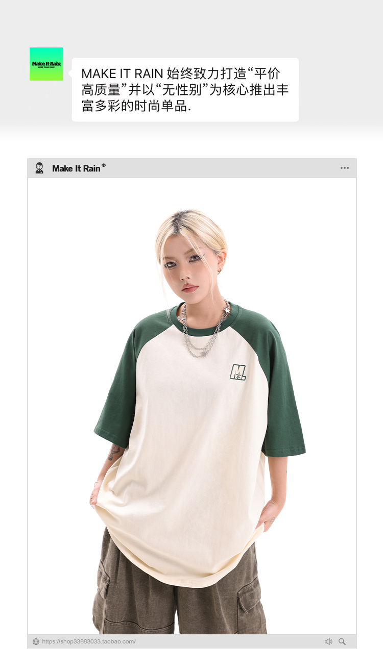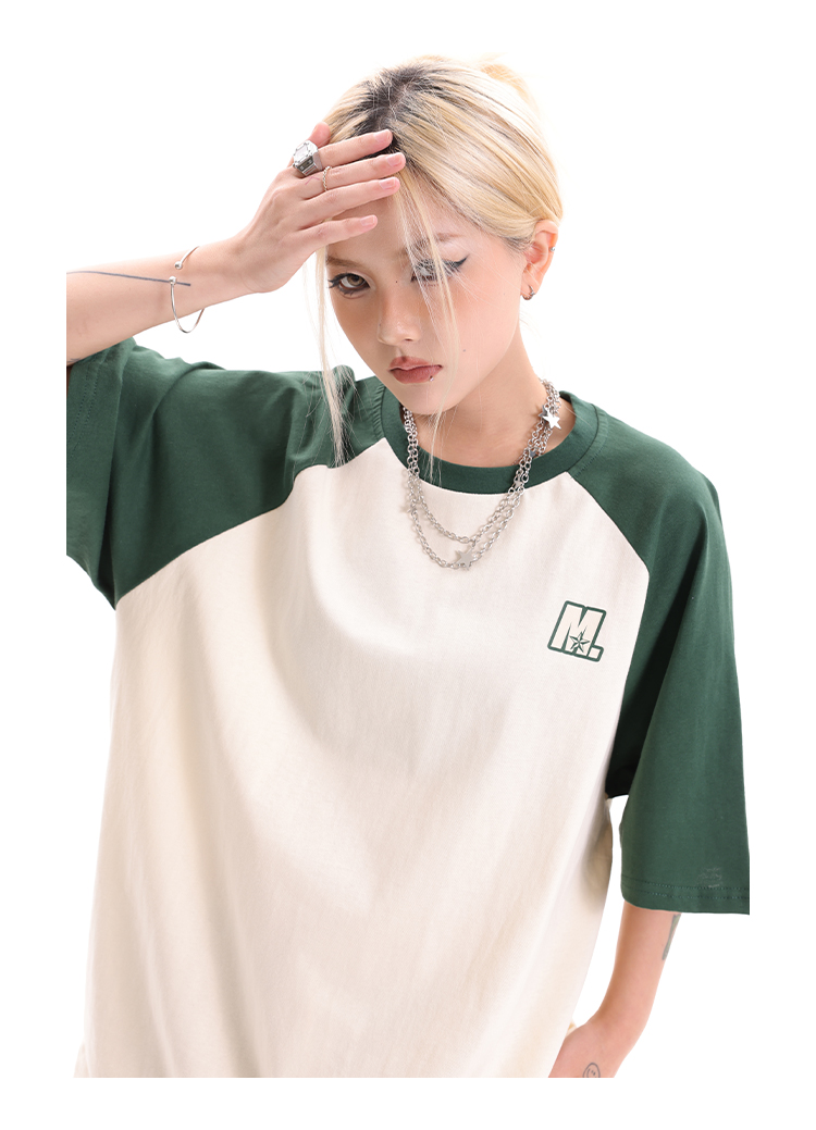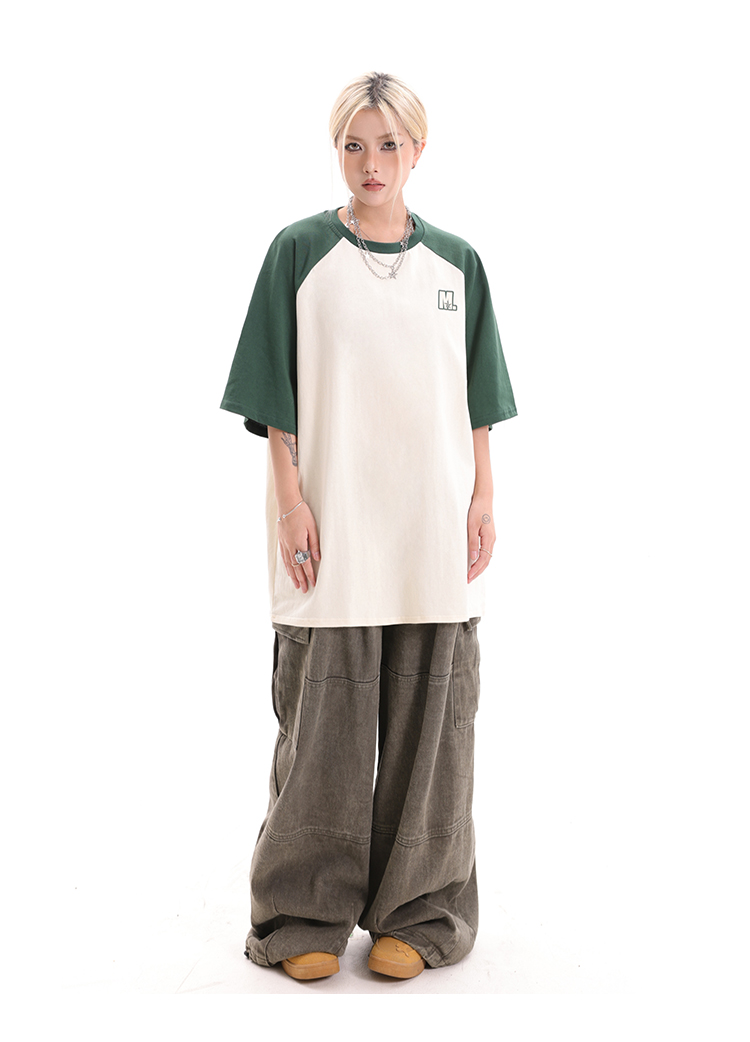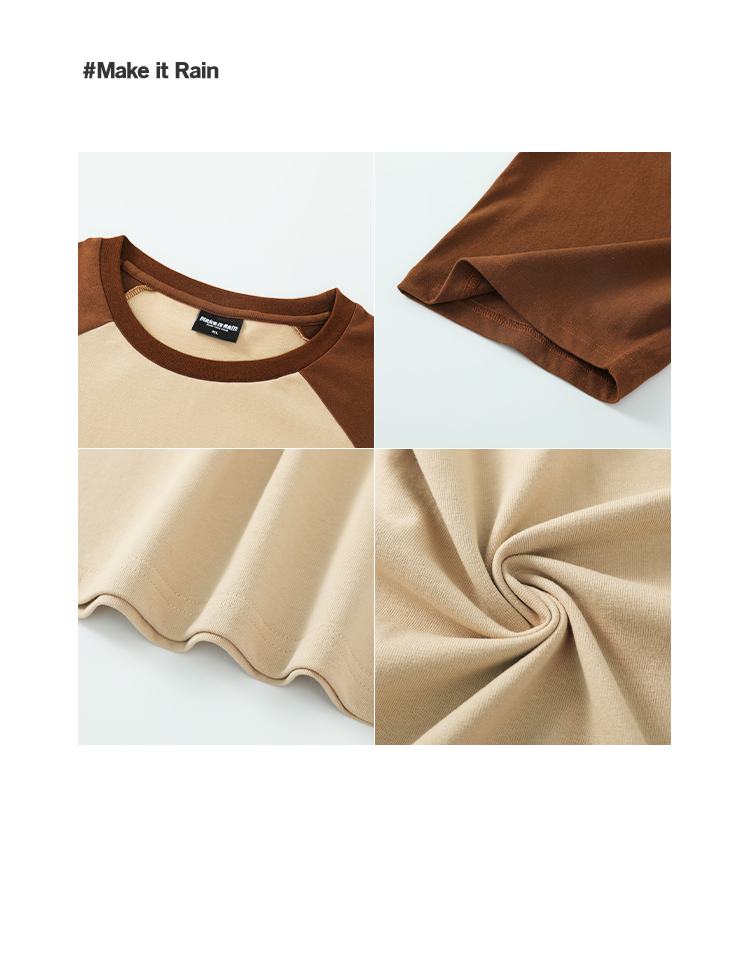 cityboy純棉短袖插肩袖T恤男女潮流痞帥情侶拼接撞色簡約半袖T恤