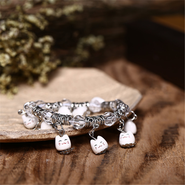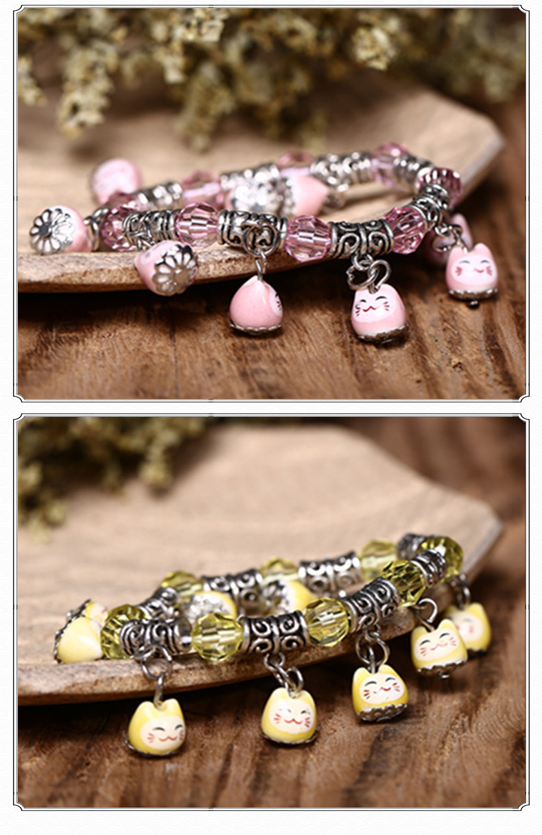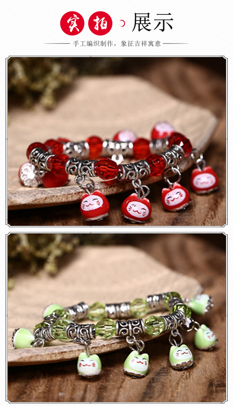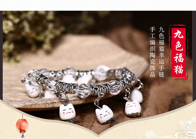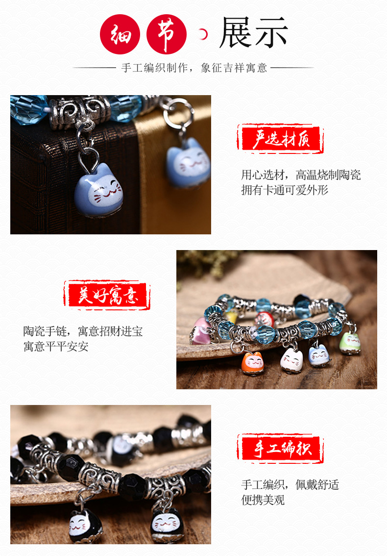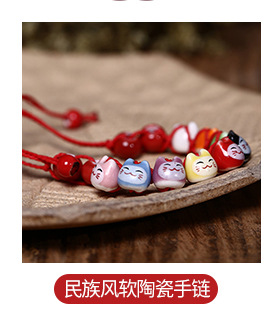 景德镇陶瓷民族风手链 日式杂货白瓷手链 九色福猫幸运手链