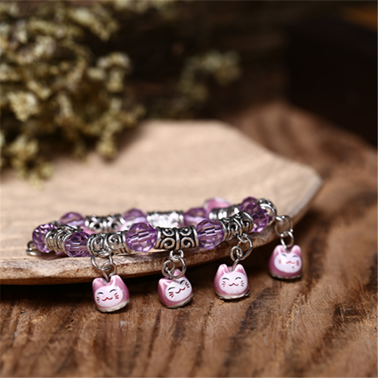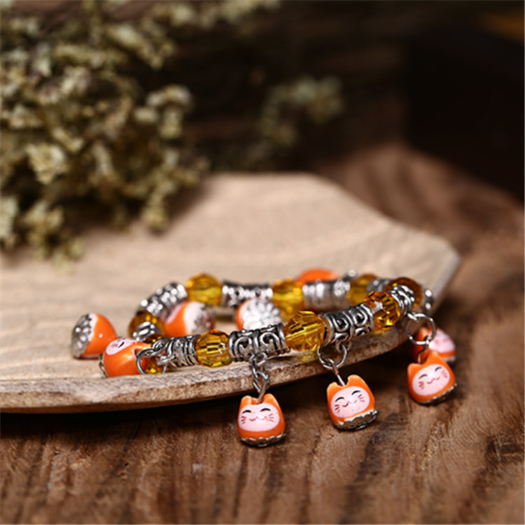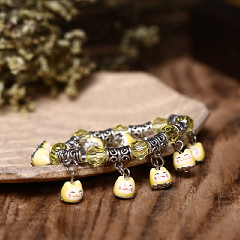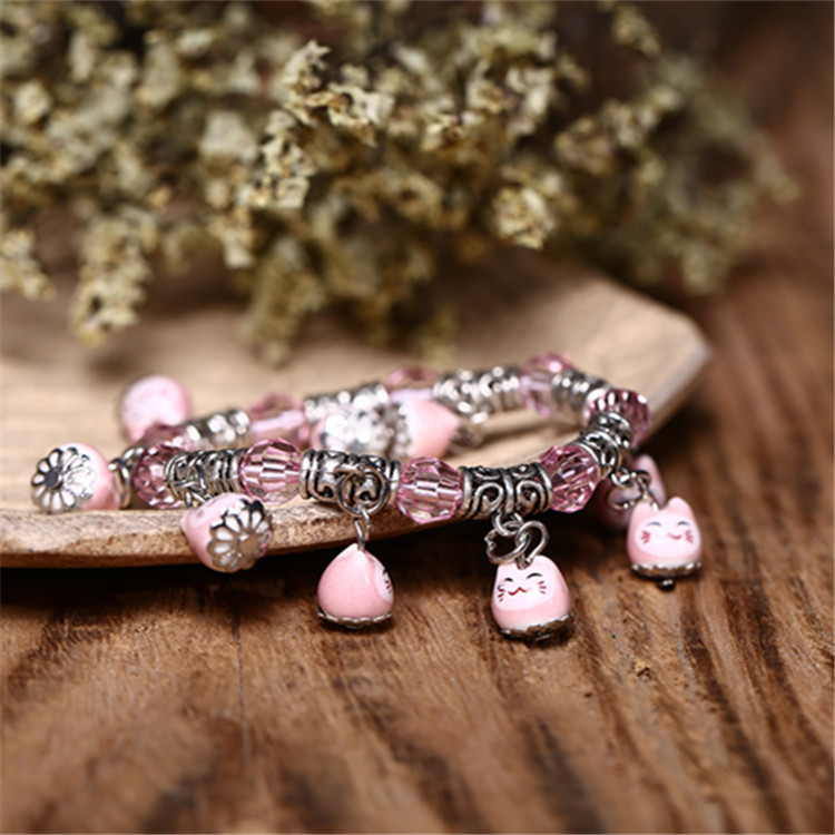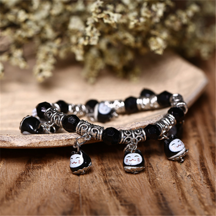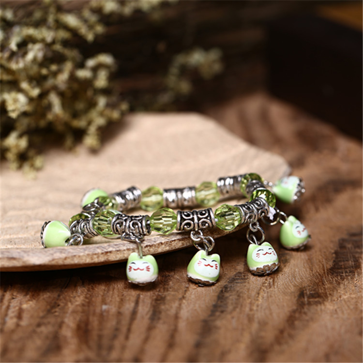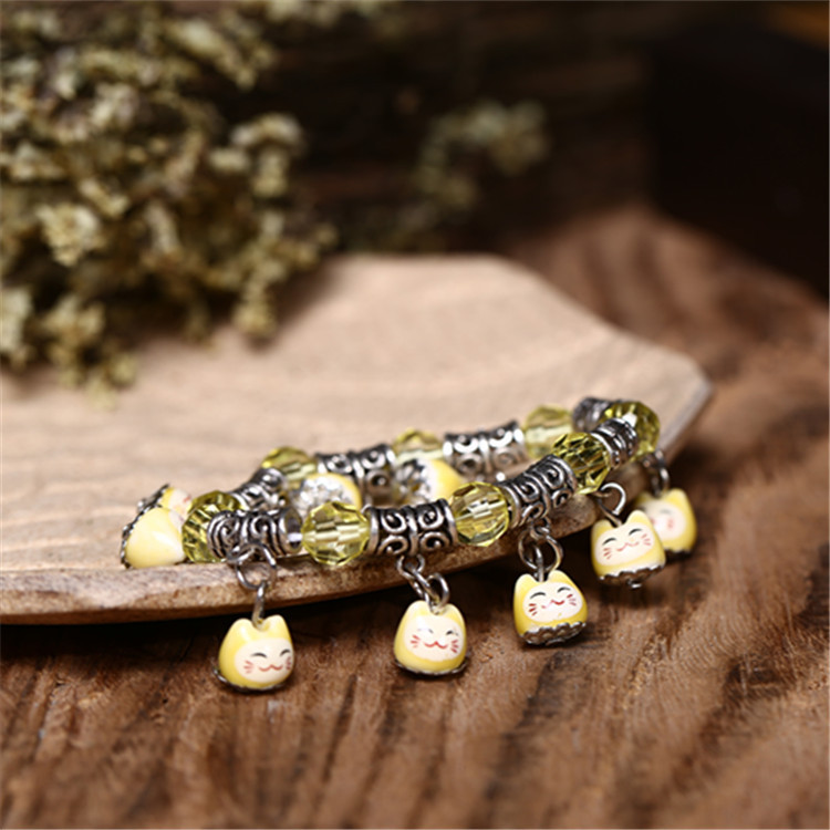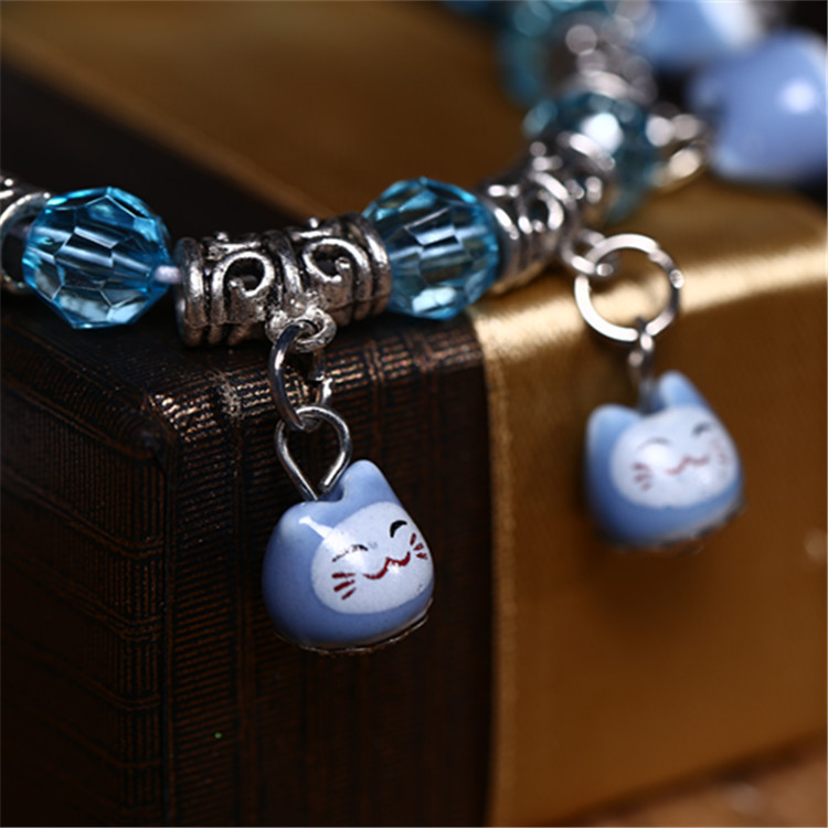 景德镇陶瓷民族风手链 日式杂货白瓷手链 九色福猫幸运手链
