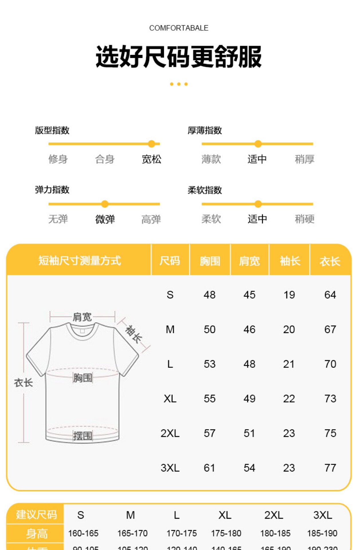 尺碼 165/S 170/M 175/L 180/XL 185/2XL 190/3XL