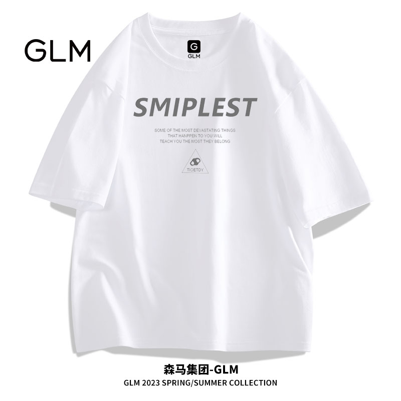 森馬集團GLM日系短袖t恤男2023夏季男裝純棉情侶寬鬆運動T恤男