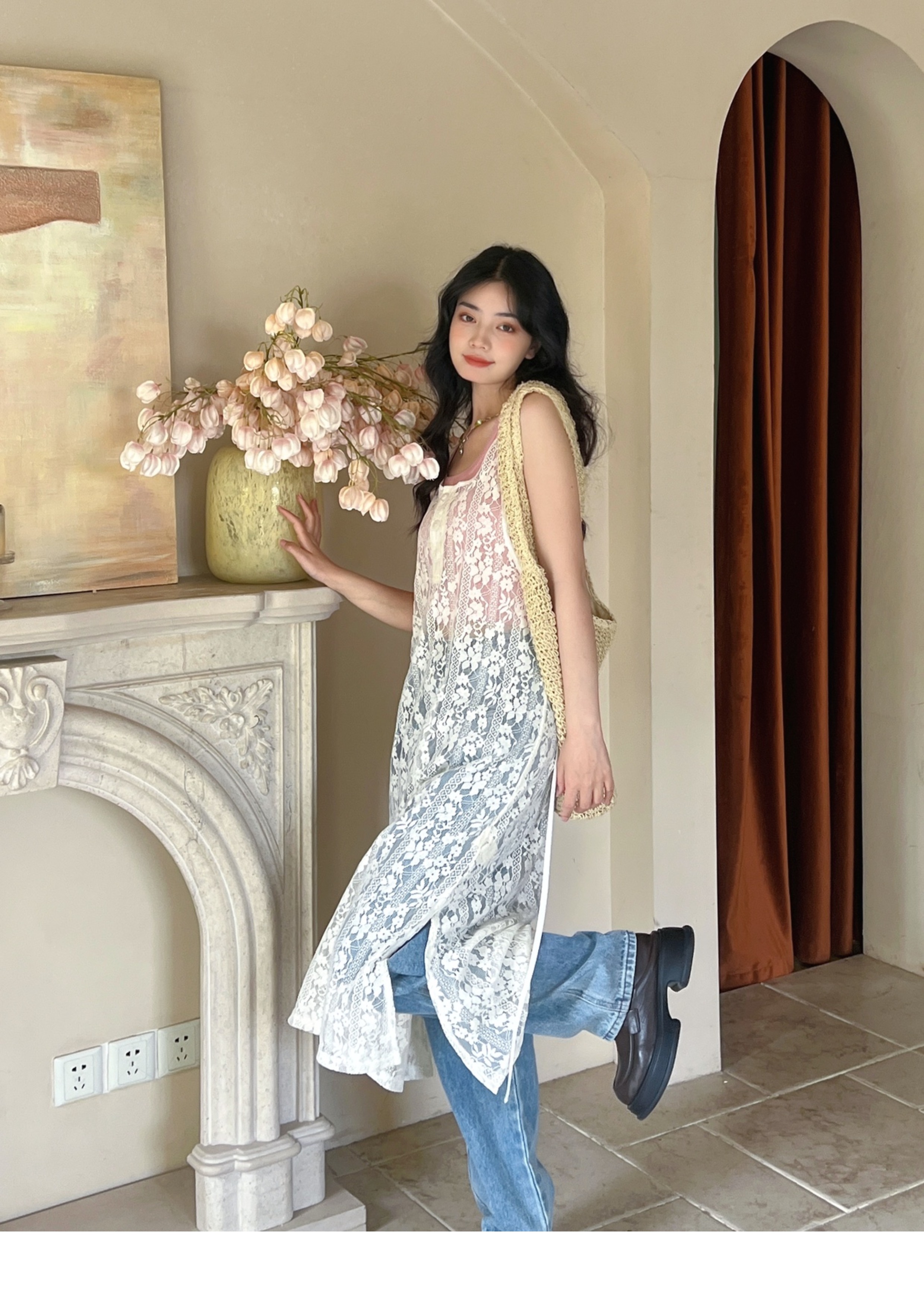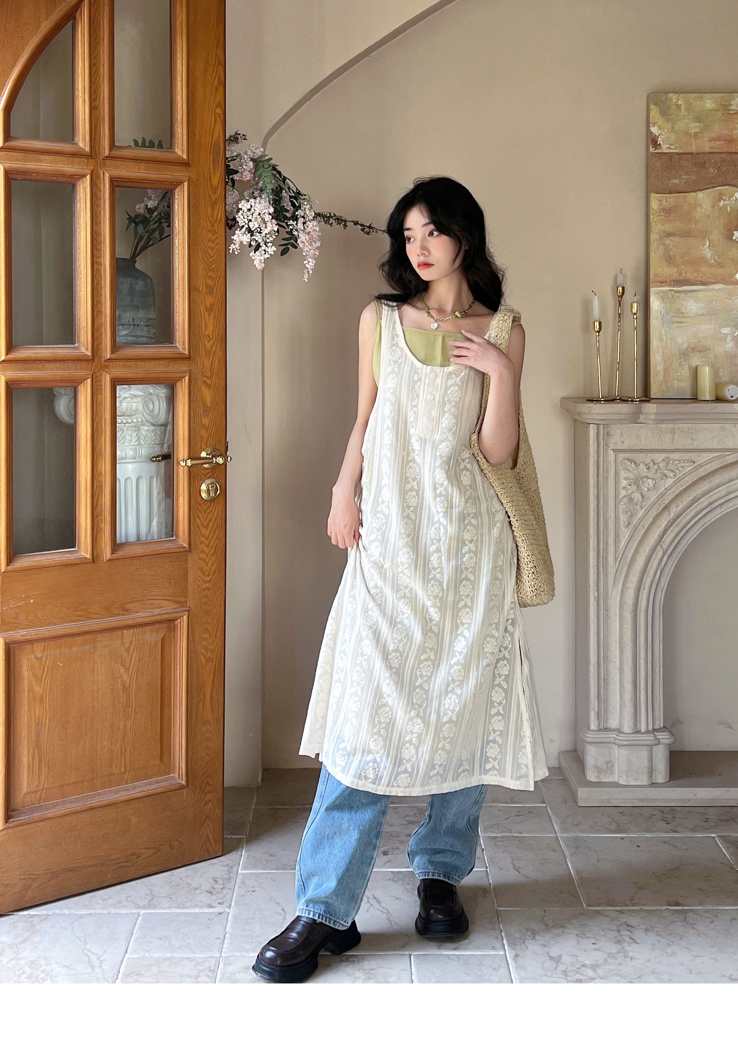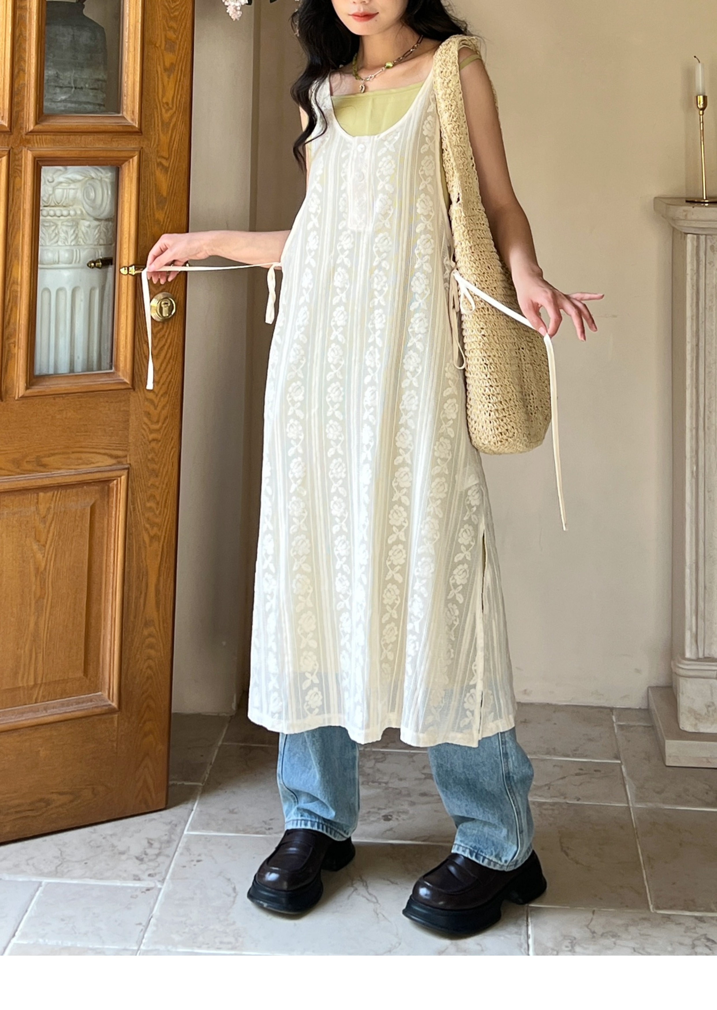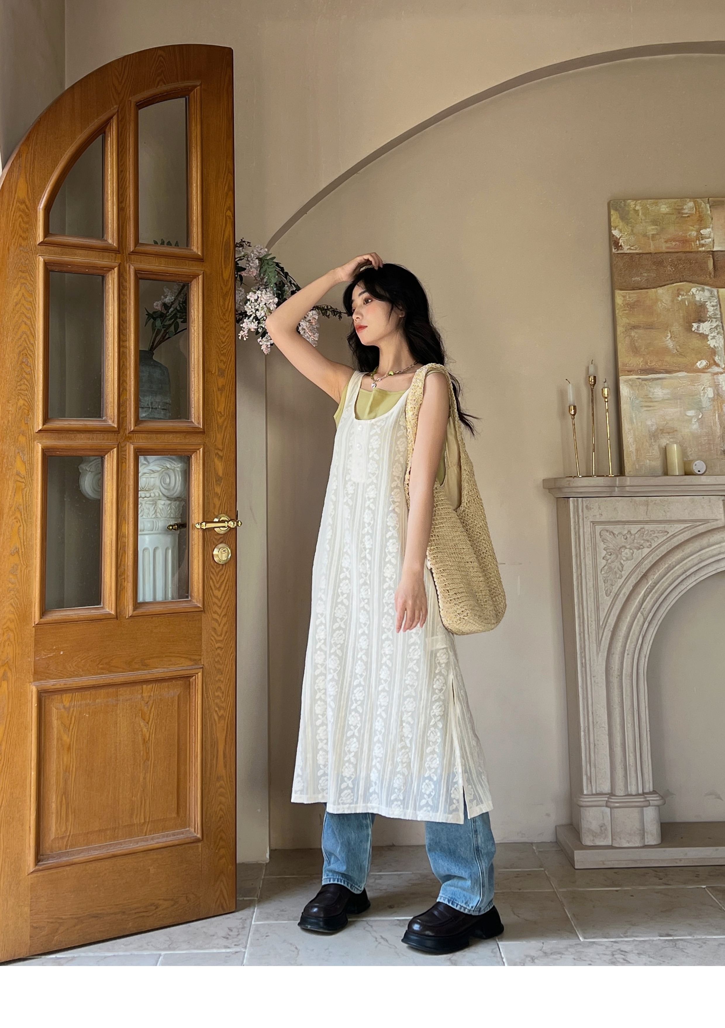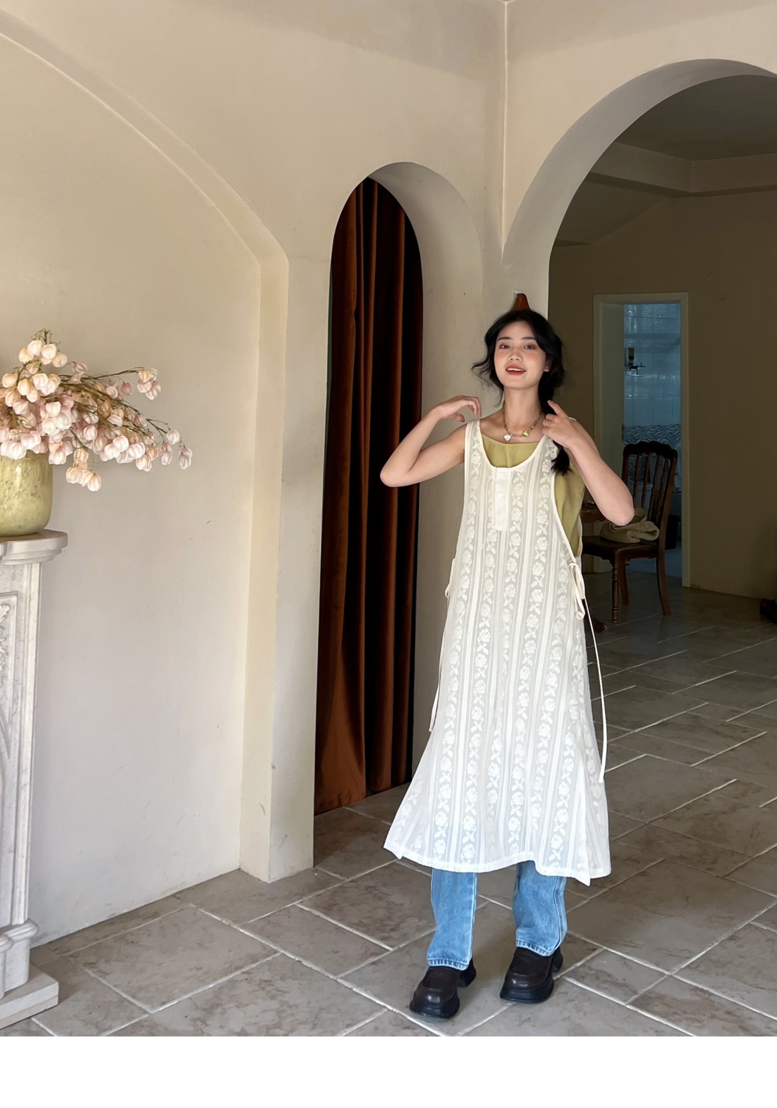 NERVOUS FROG自制復古鏤空蕾絲罩裙長版背心洋裝