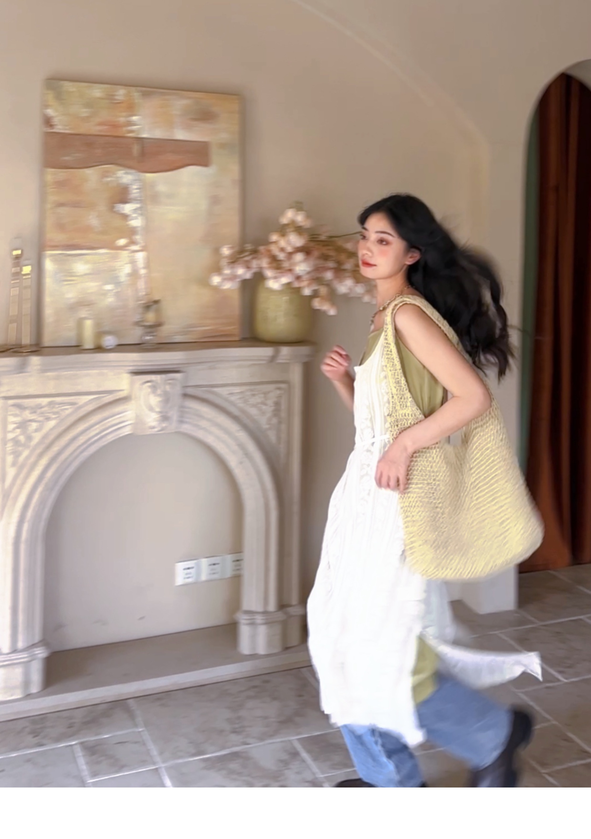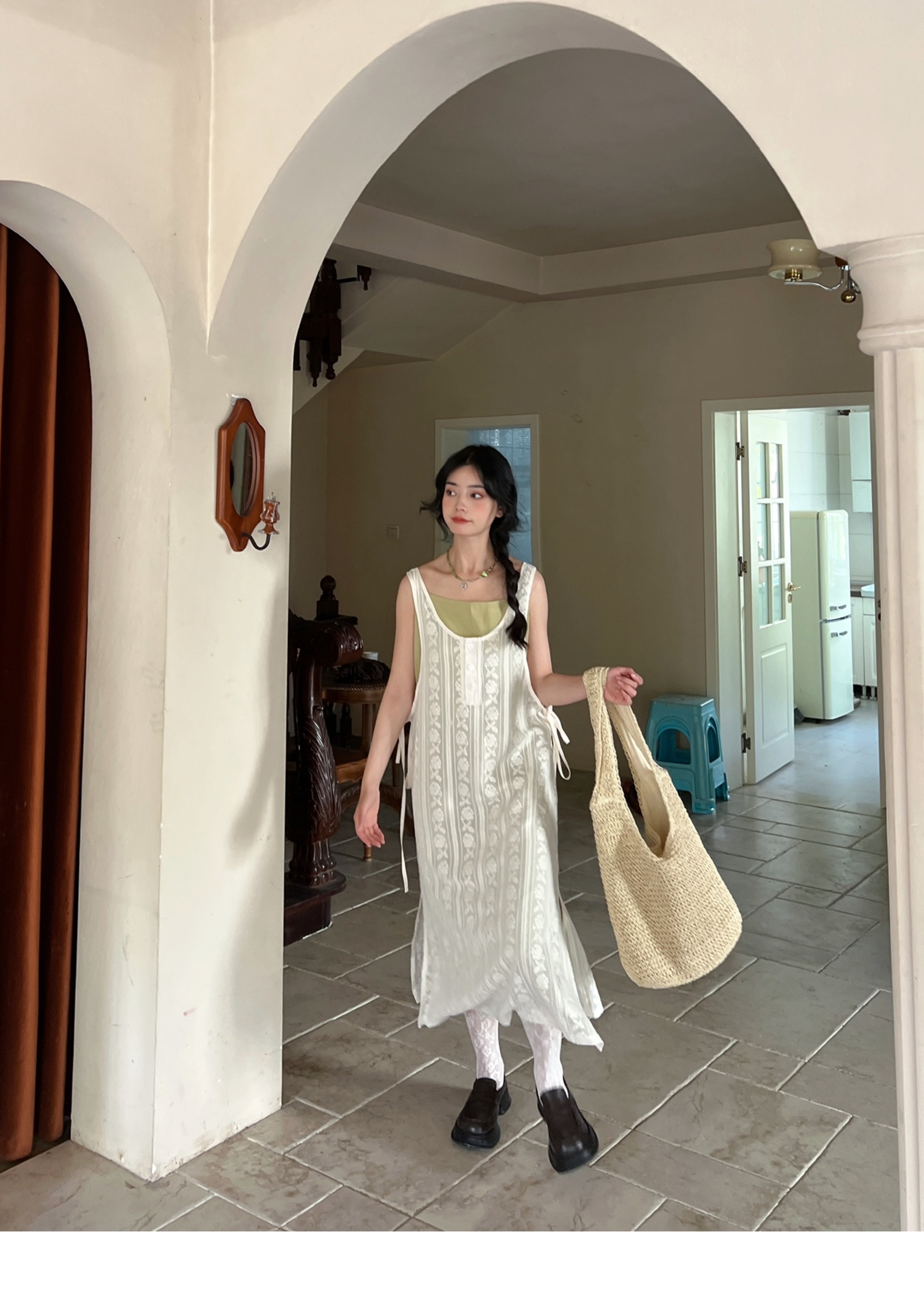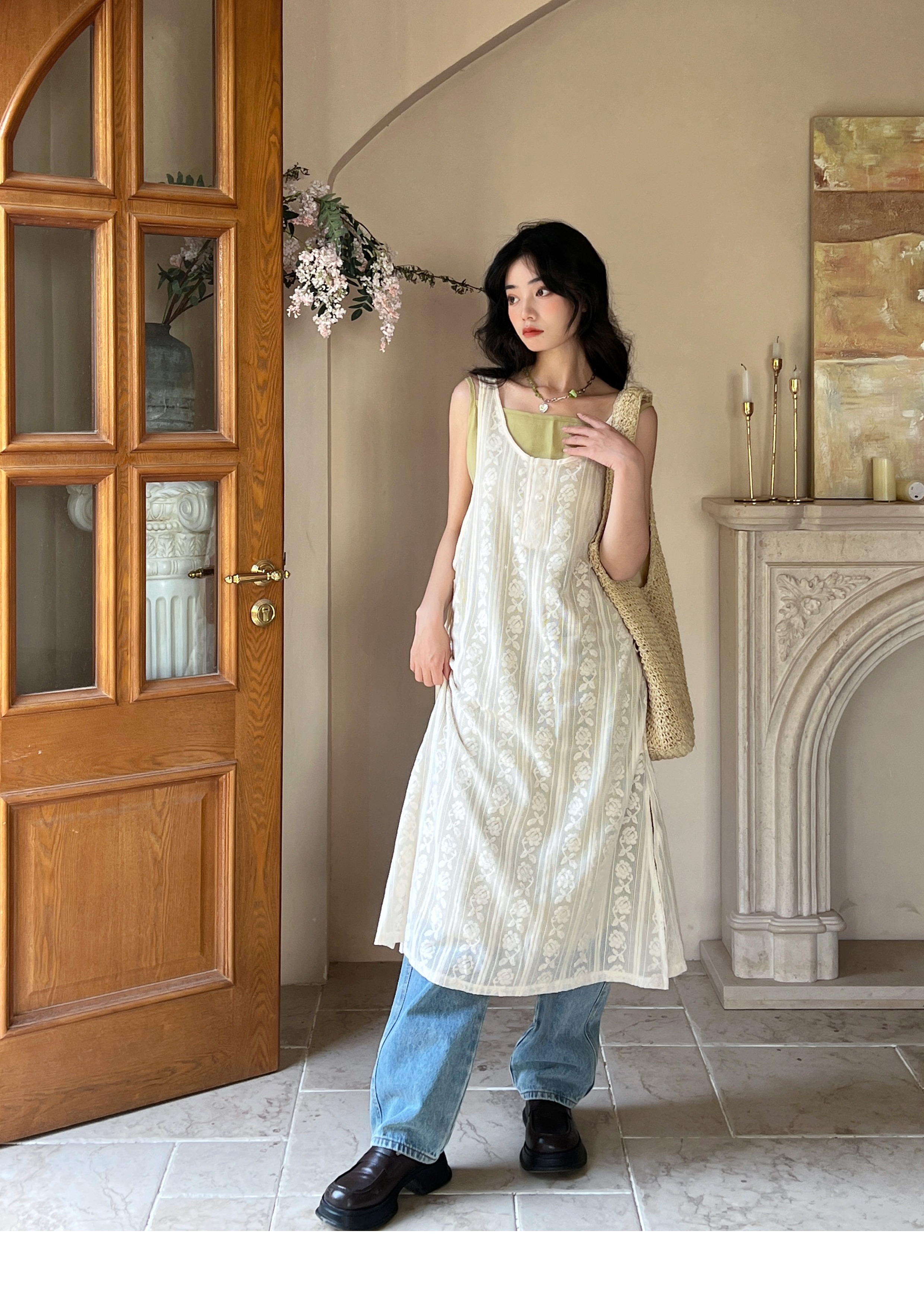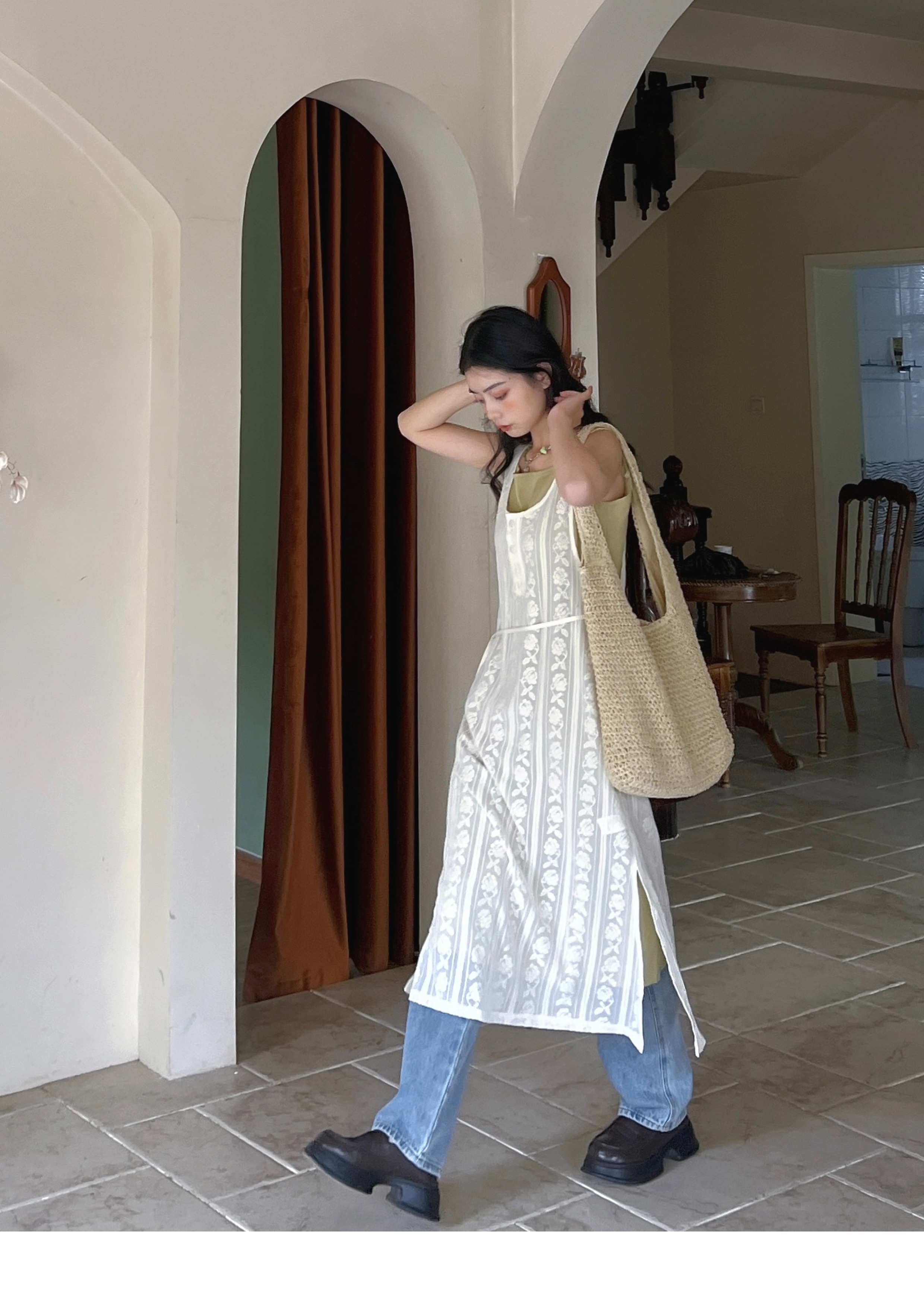 NERVOUS FROG自制復古鏤空蕾絲罩裙長版背心洋裝