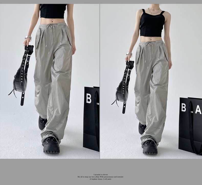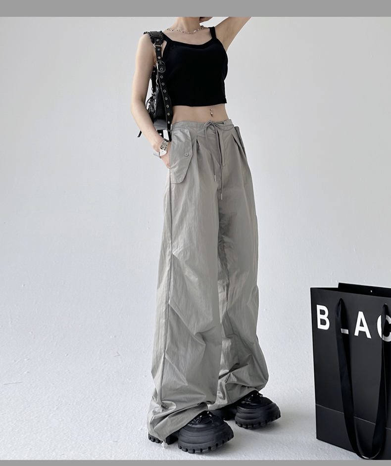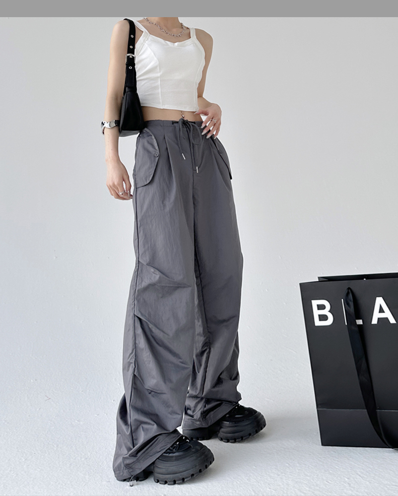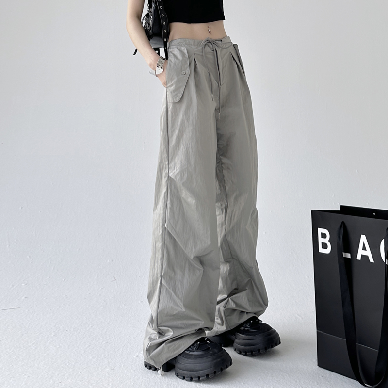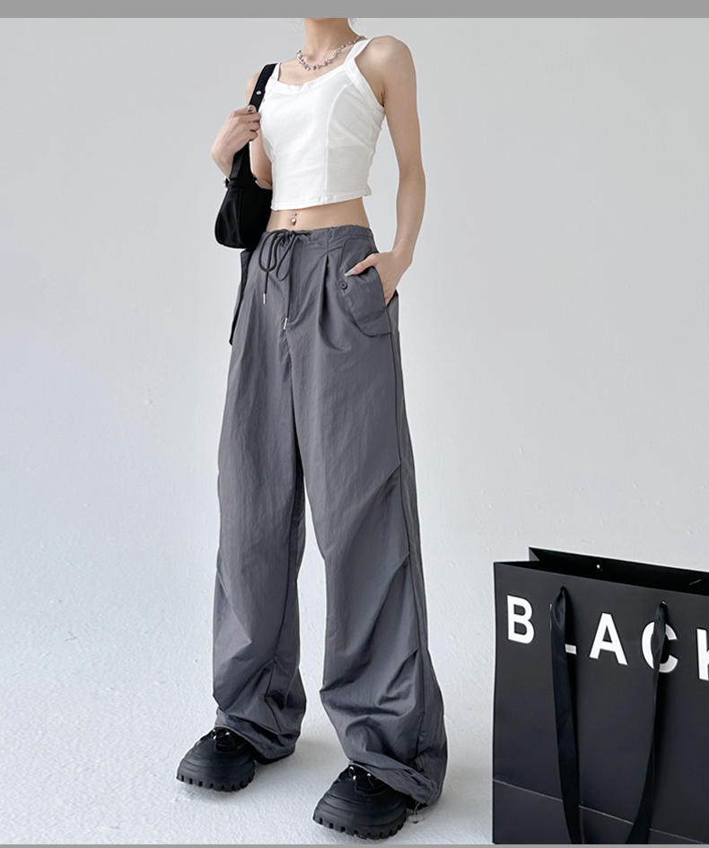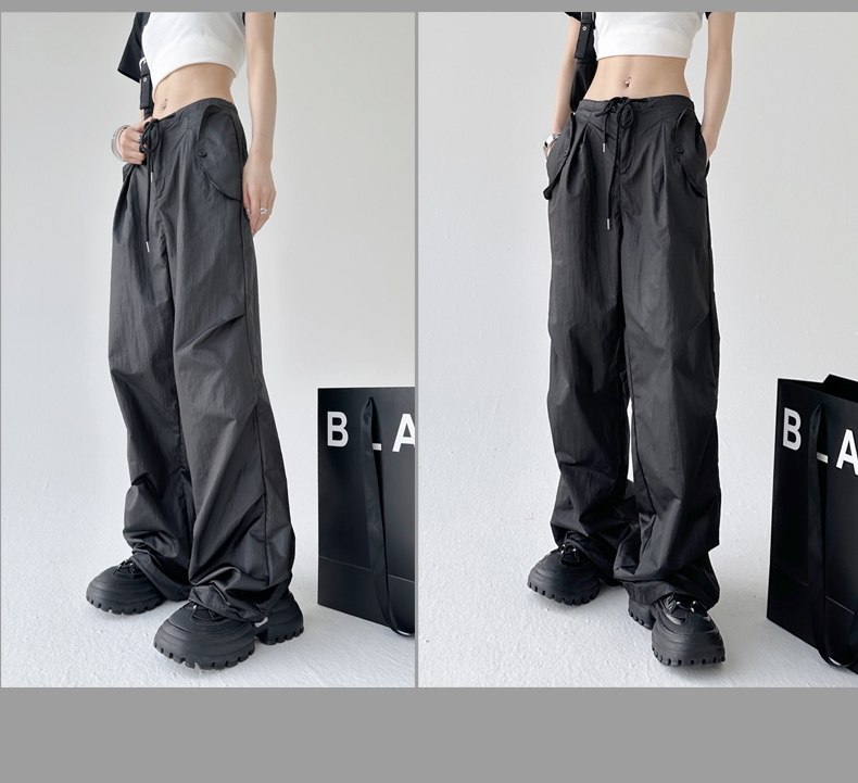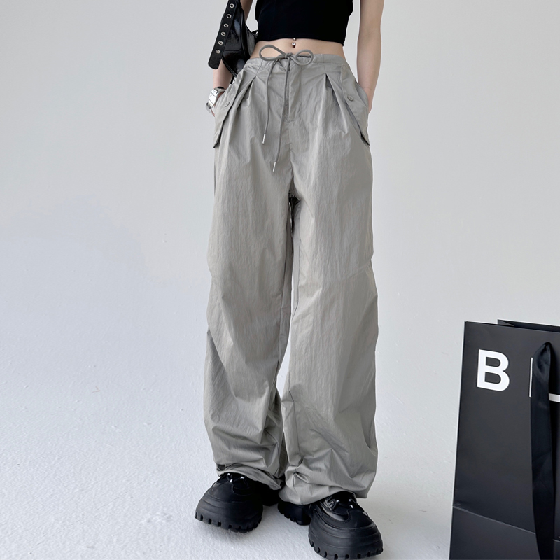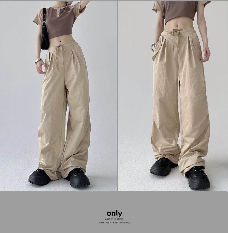 街頭工裝褲女秋裝2023年新款秋季降落傘休閒寬鬆高腰顯瘦闊腿褲子