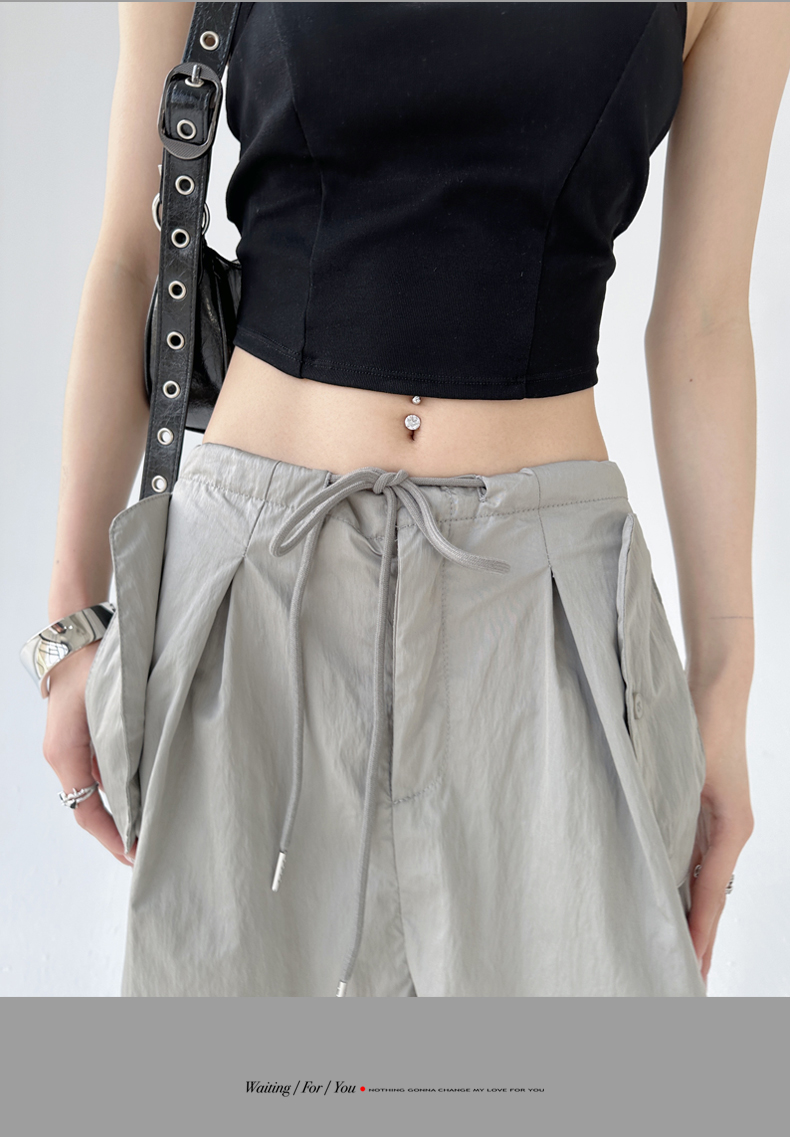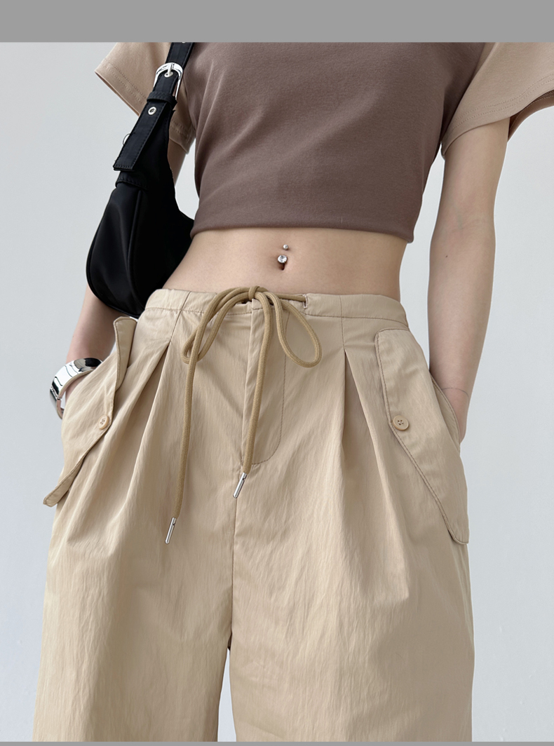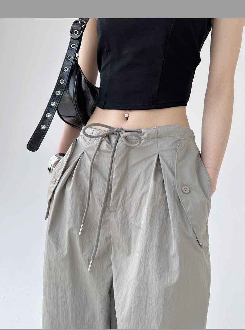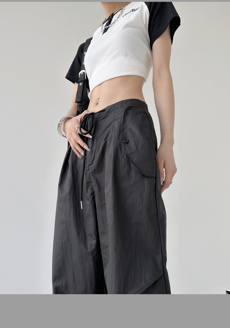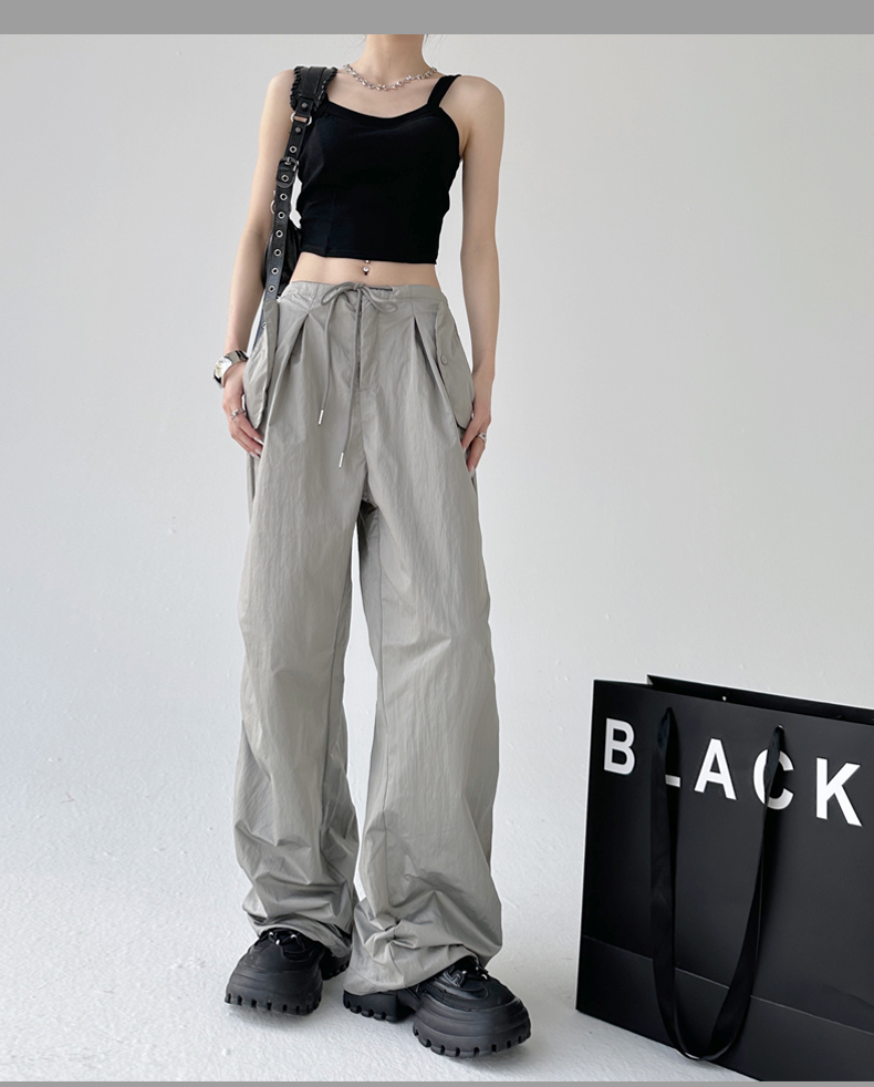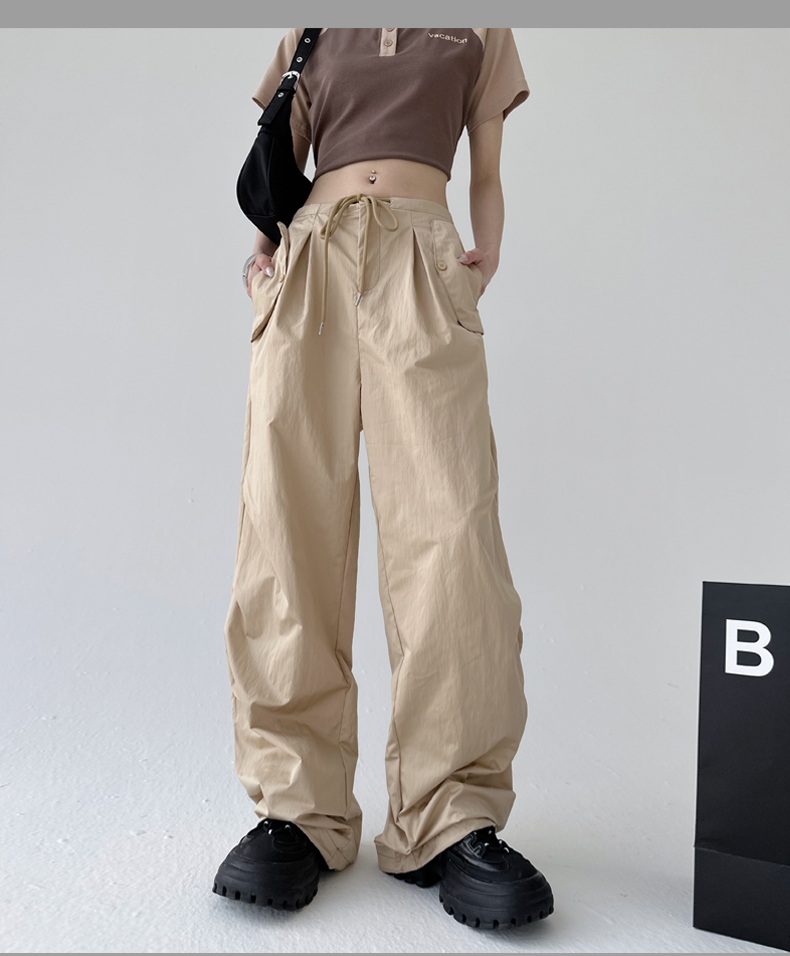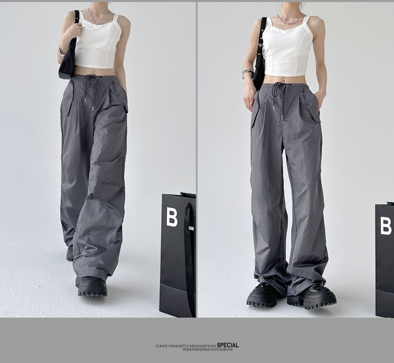 街頭工裝褲女秋裝2023年新款秋季降落傘休閒寬鬆高腰顯瘦闊腿褲子