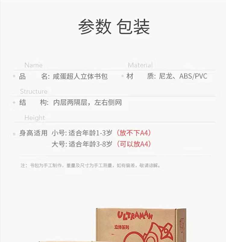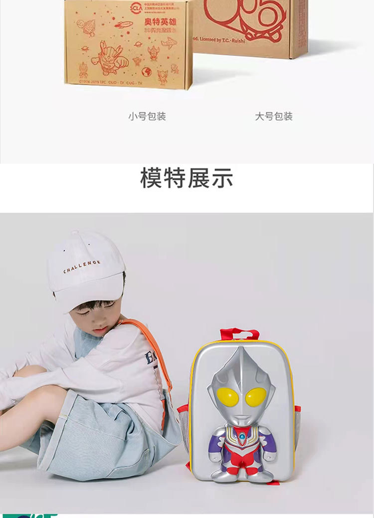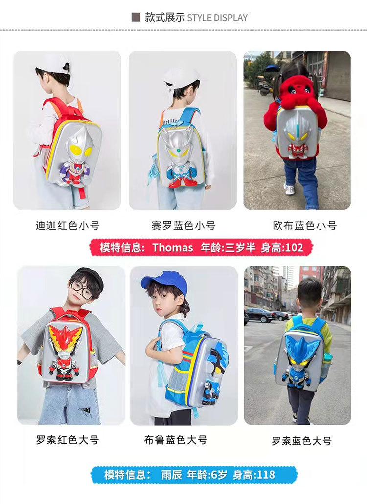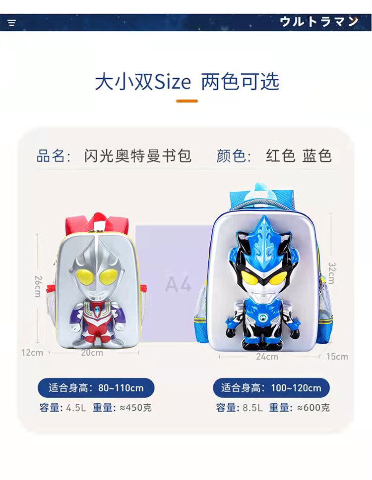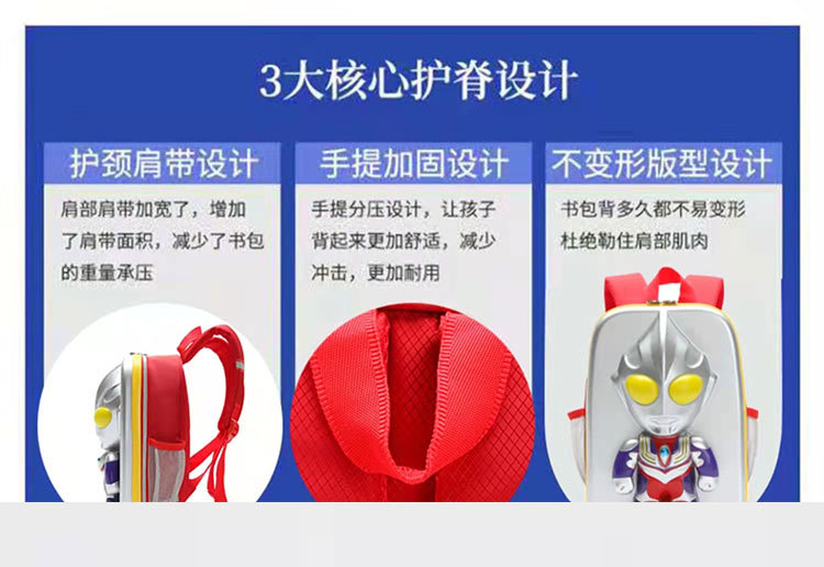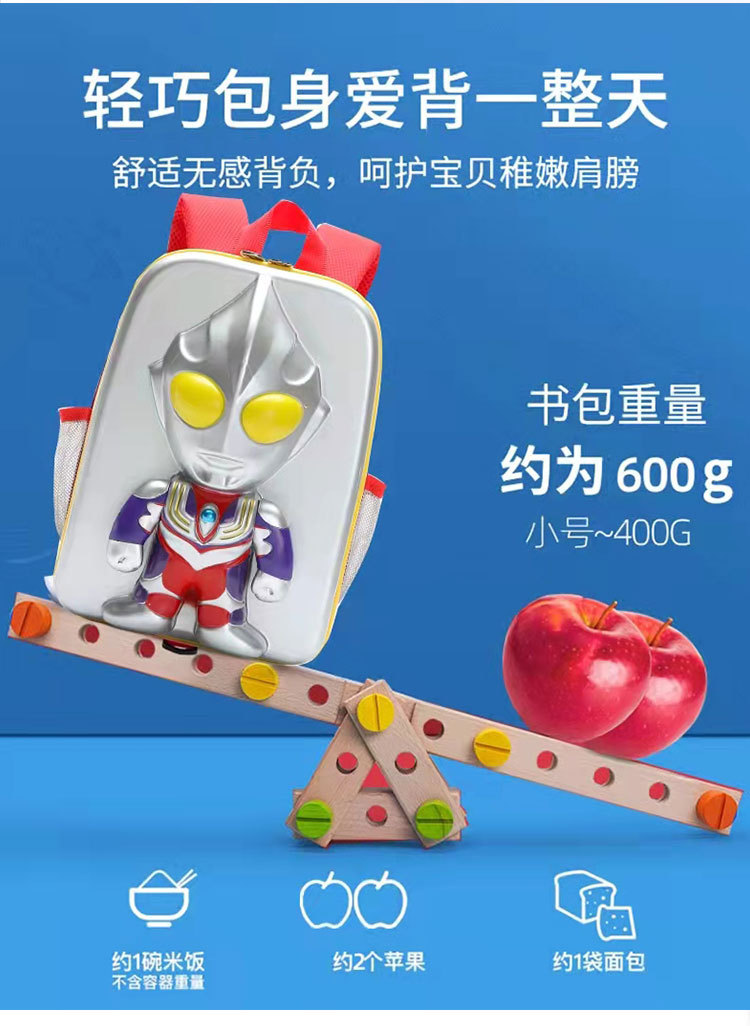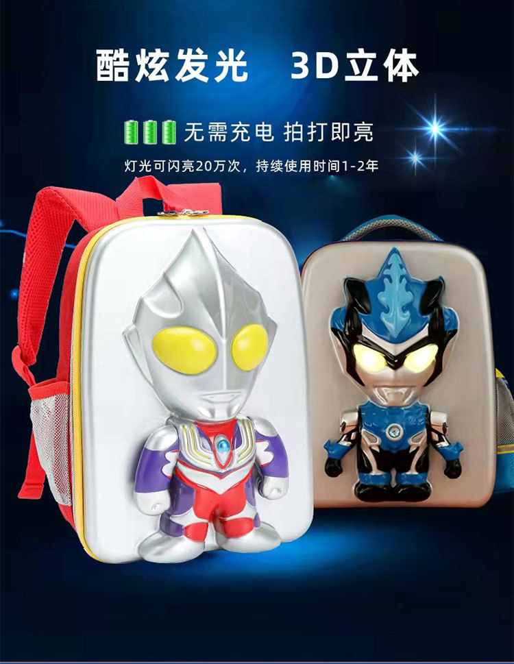 奥特曼书包迪迦儿童闪光造型包男孩减负潮包3D防水男童双肩背包