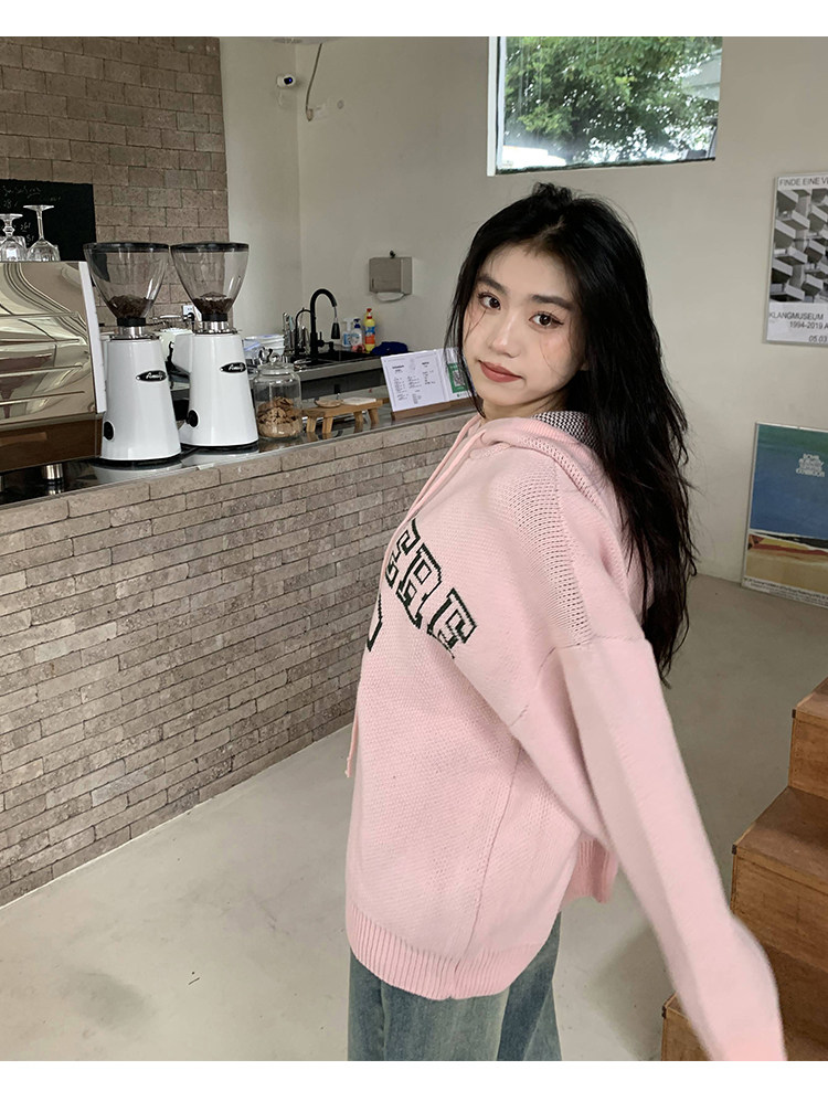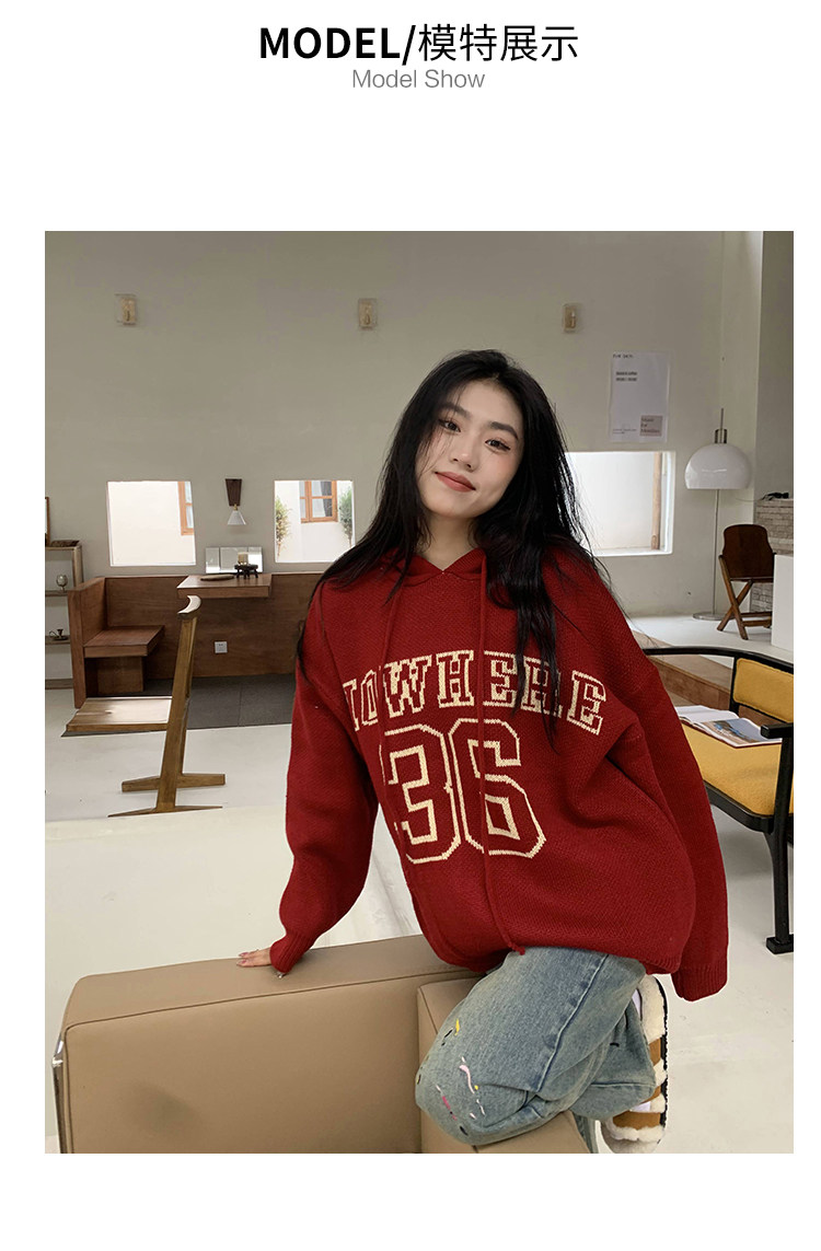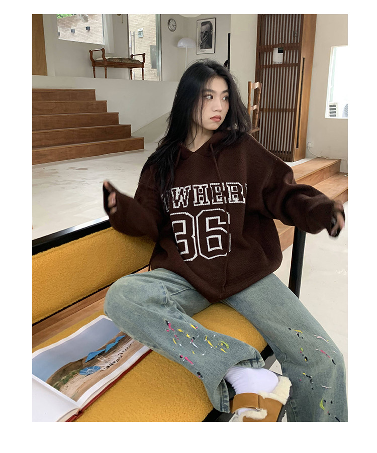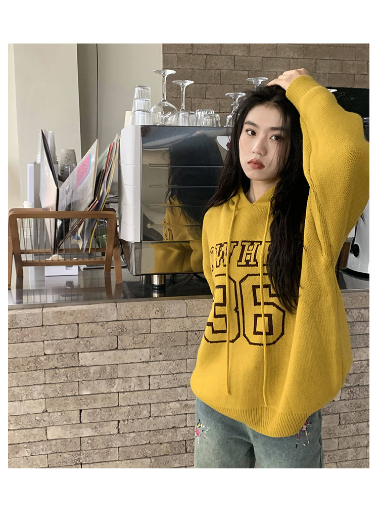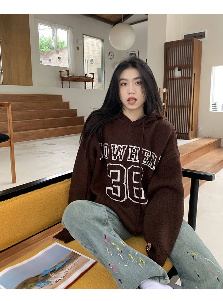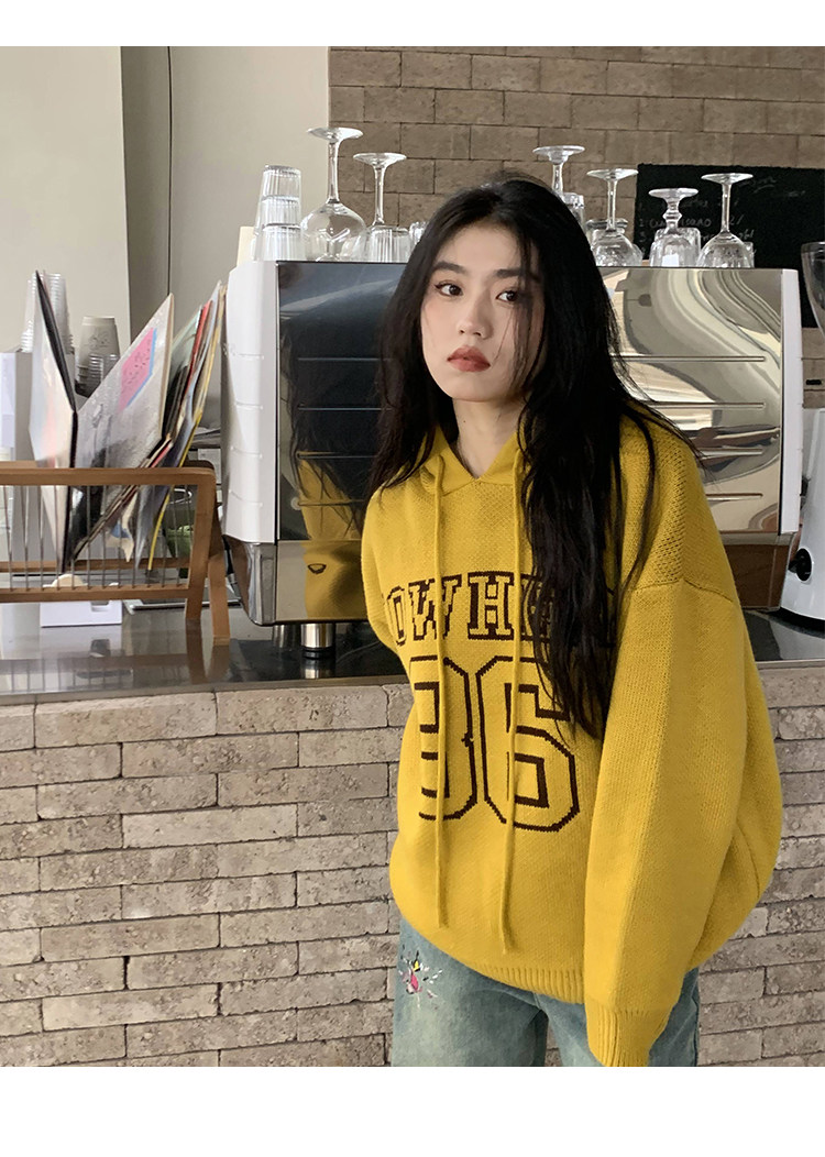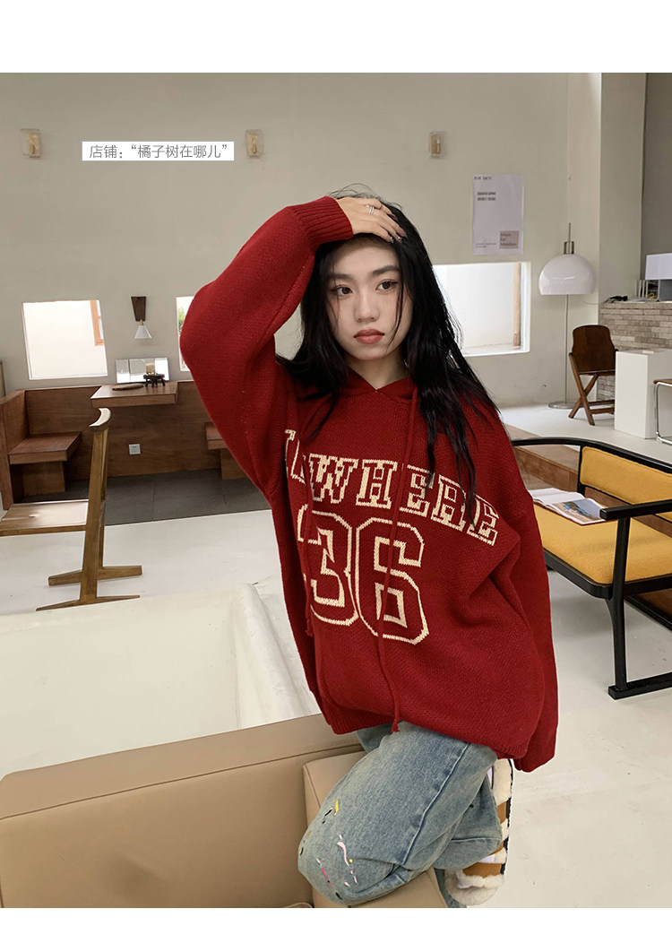 【反季清倉】橘子樹在哪兒字母連帽毛衣男女同款寬鬆慵懶針織衛衣