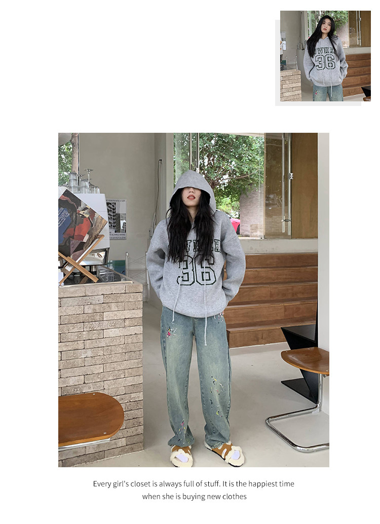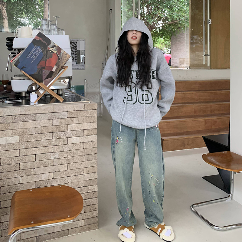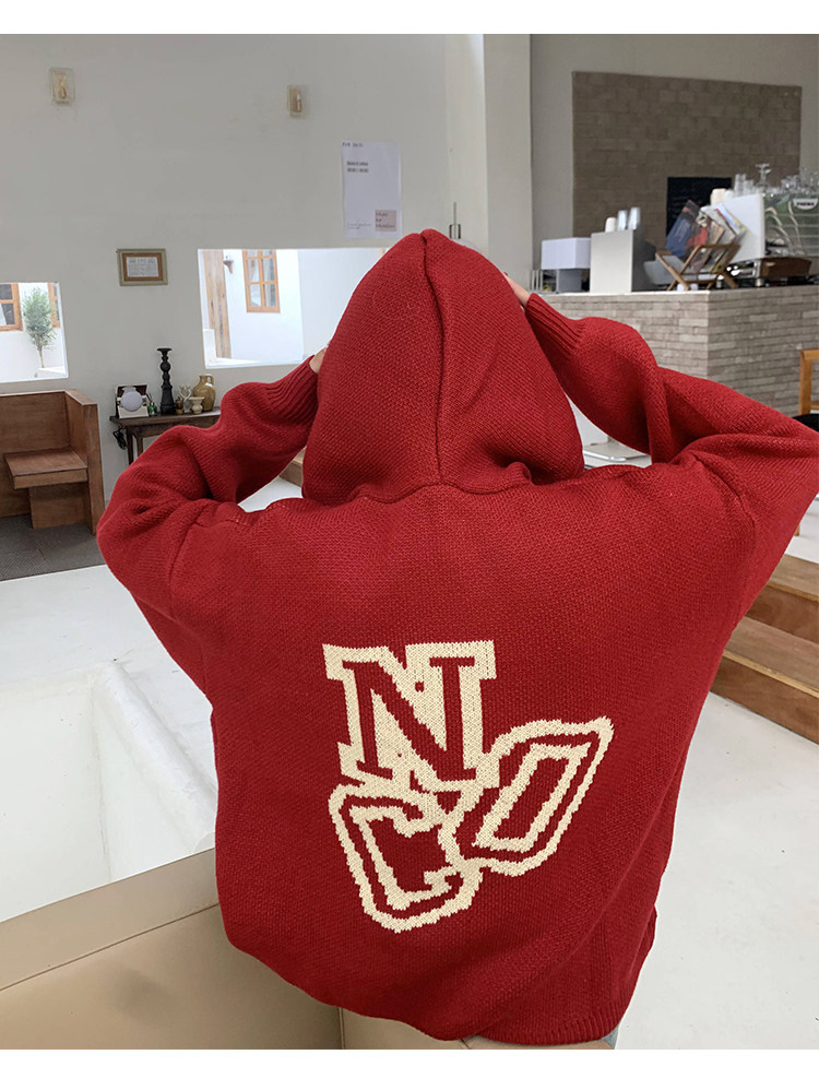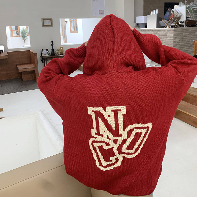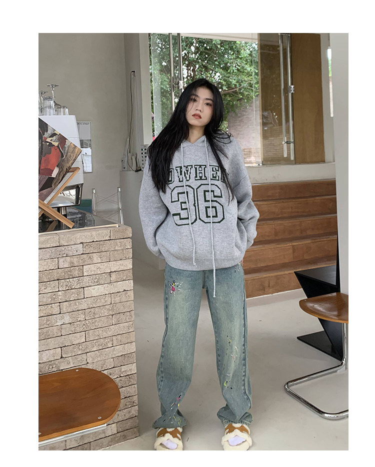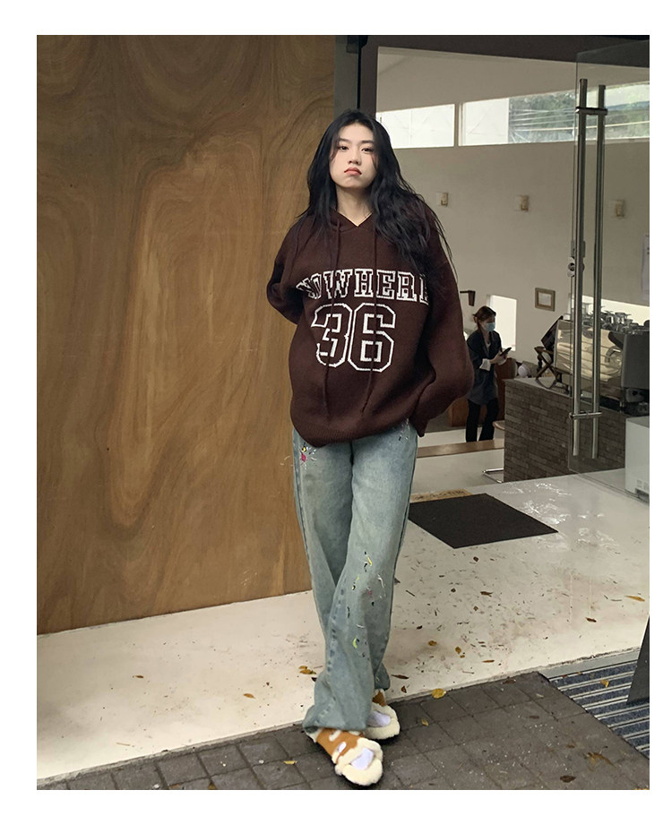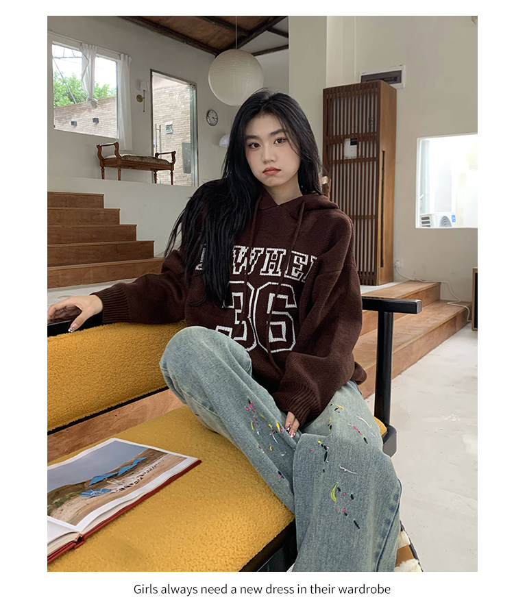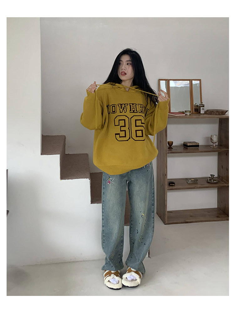 【反季清倉】橘子樹在哪兒字母連帽毛衣男女同款寬鬆慵懶針織衛衣