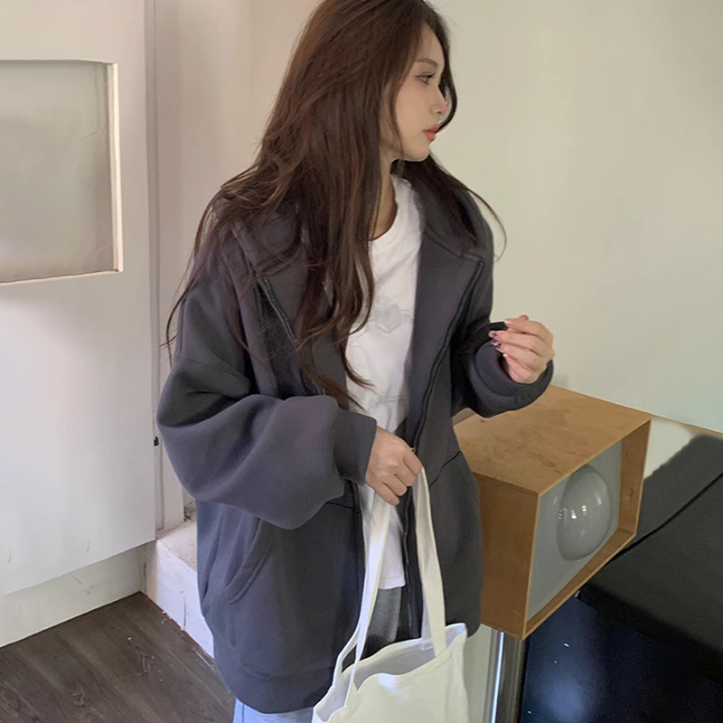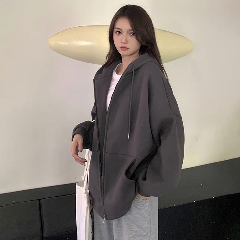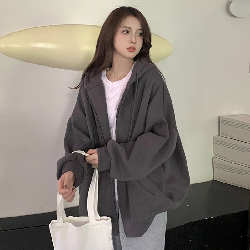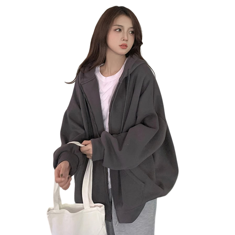 黑色拉鍊衛衣oversize女士早春秋季2023新款女裝開襟衫外套美式復古