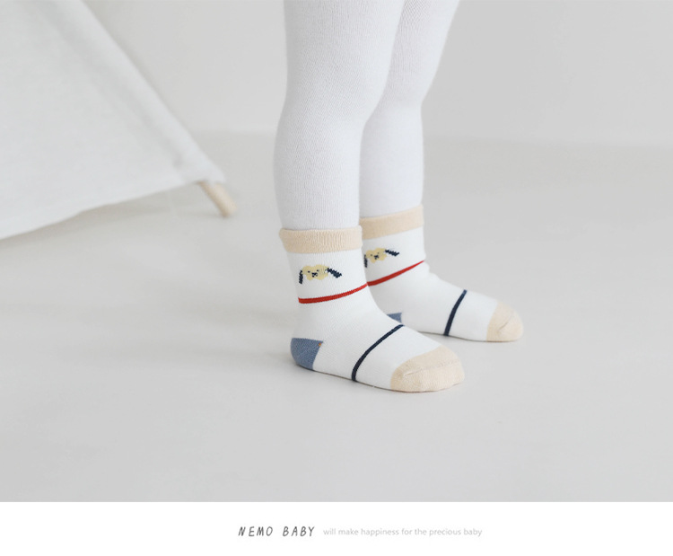 婴儿袜子秋冬新品松口宝宝袜子可爱卡通条纹男童女童儿童中筒棉袜
