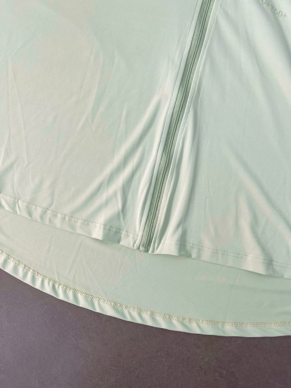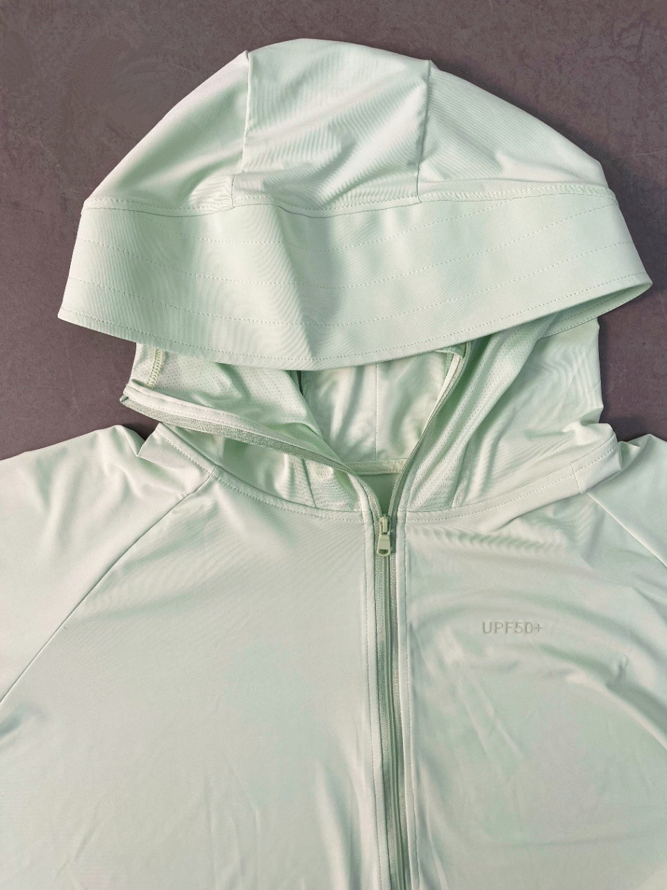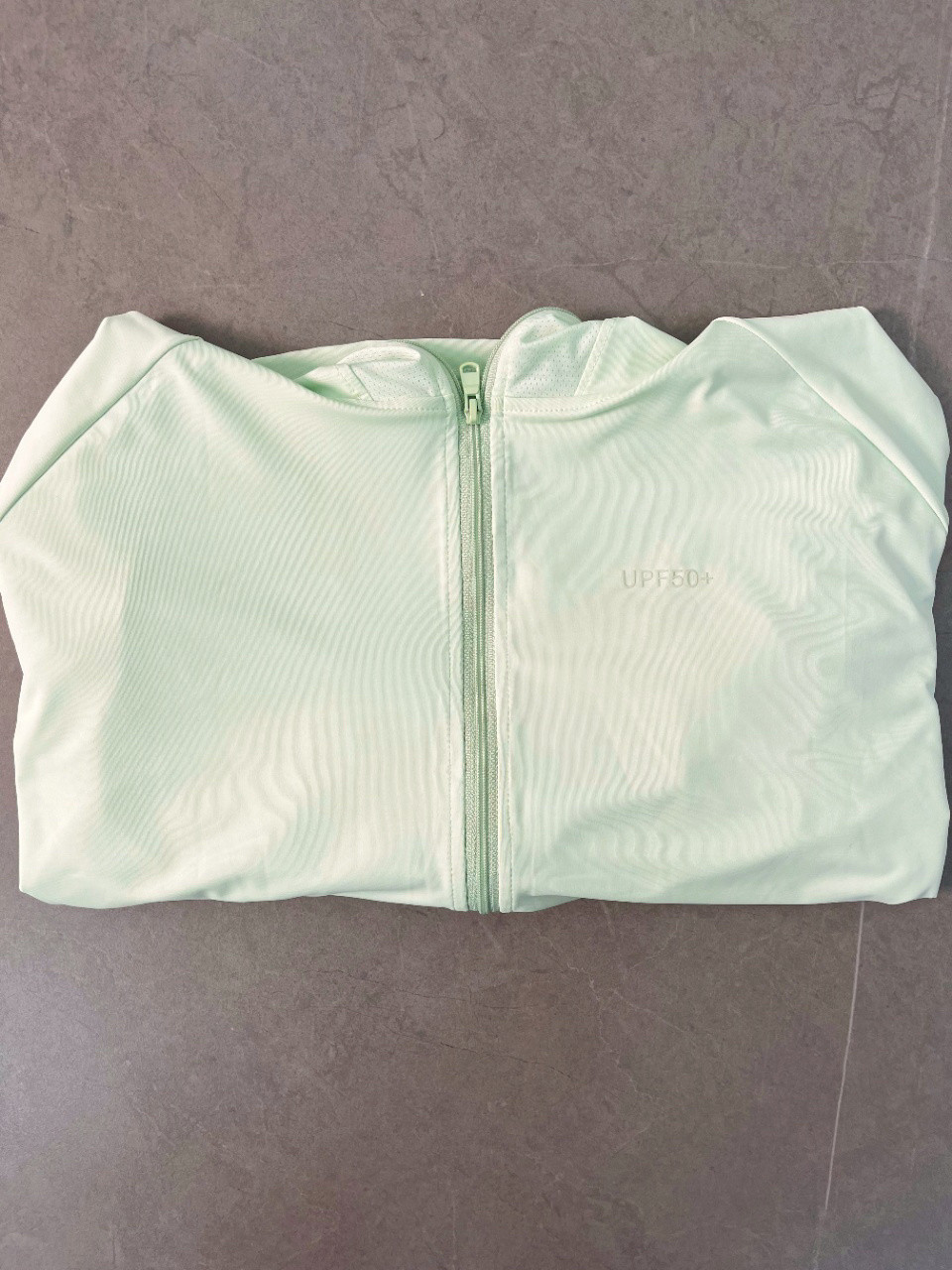 撿漏專櫃撤回綠色冰絲連帽開衫防曬服女夏季休閒透氣薄防曬服外套