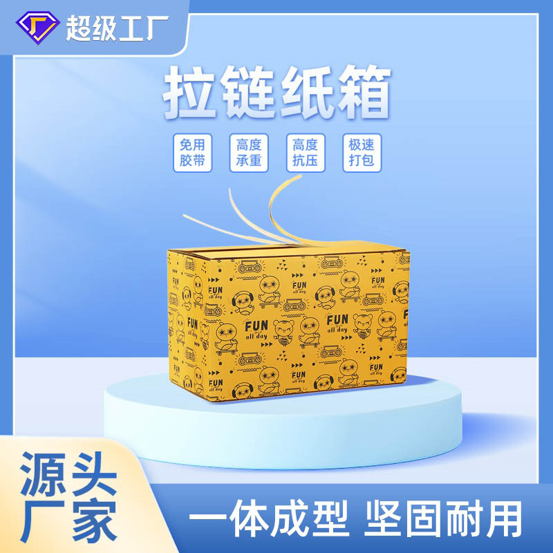 拉链纸箱小批量定制易撕拉免胶带化妆品拉链纸盒彩箱印刷定做工厂