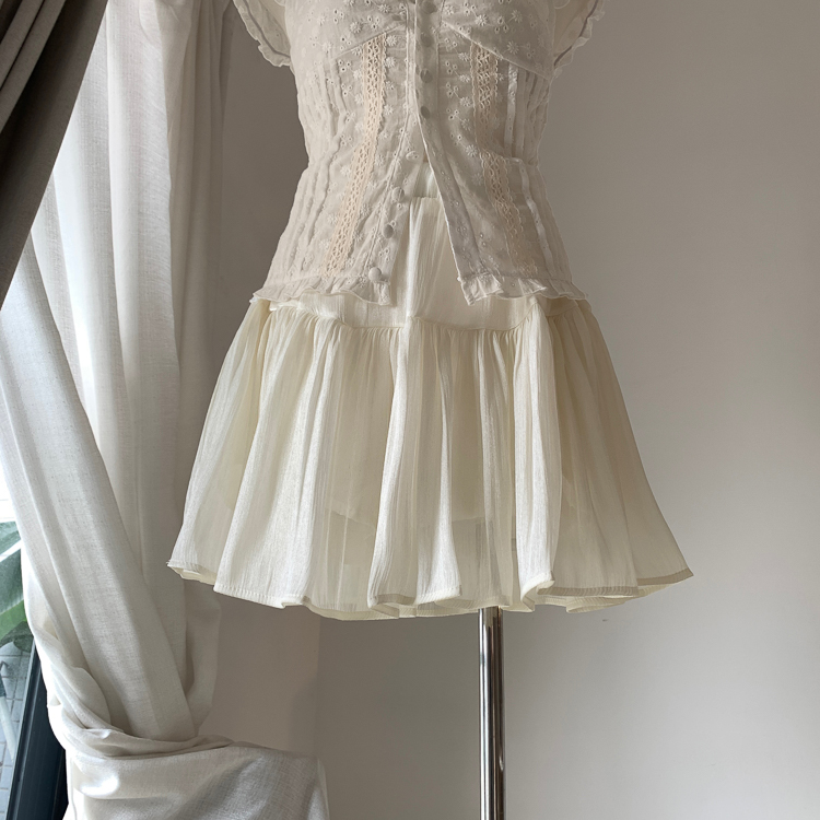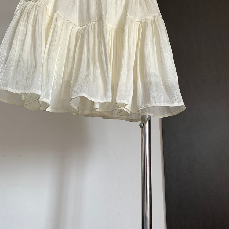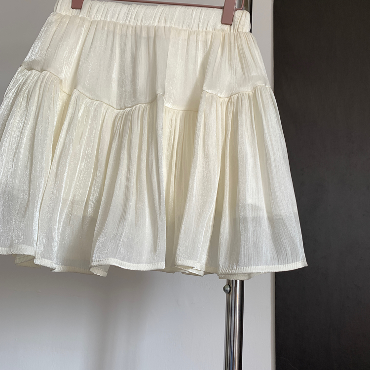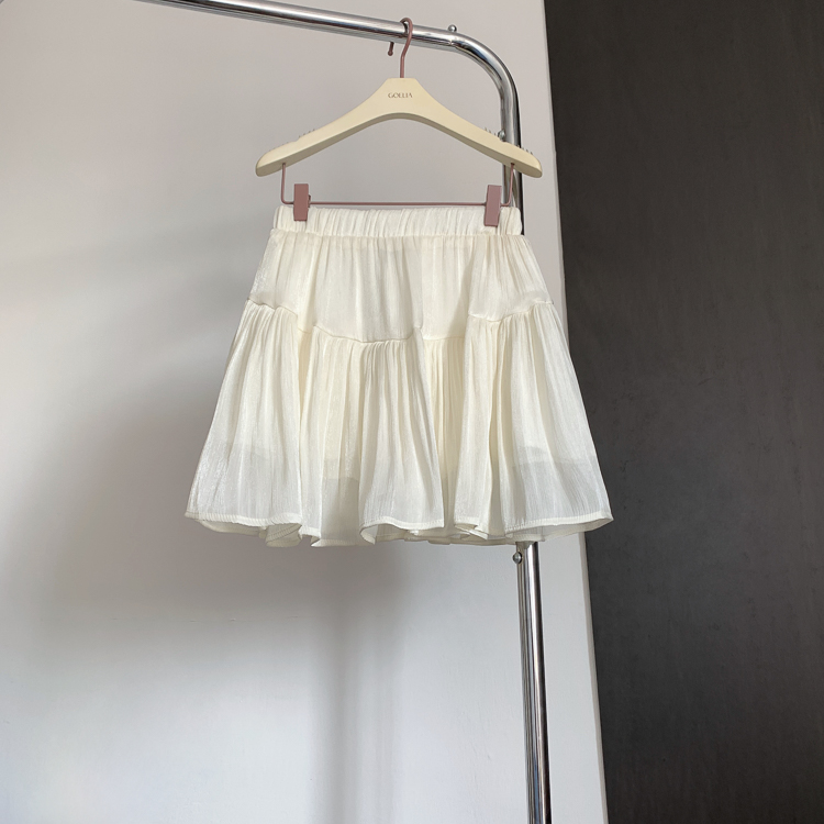 女【銀色山泉】百褶網紗半身裙女夏高腰顯瘦垂墜感a字蛋糕裙