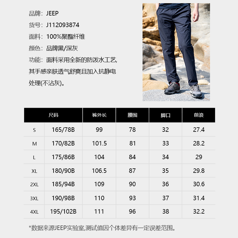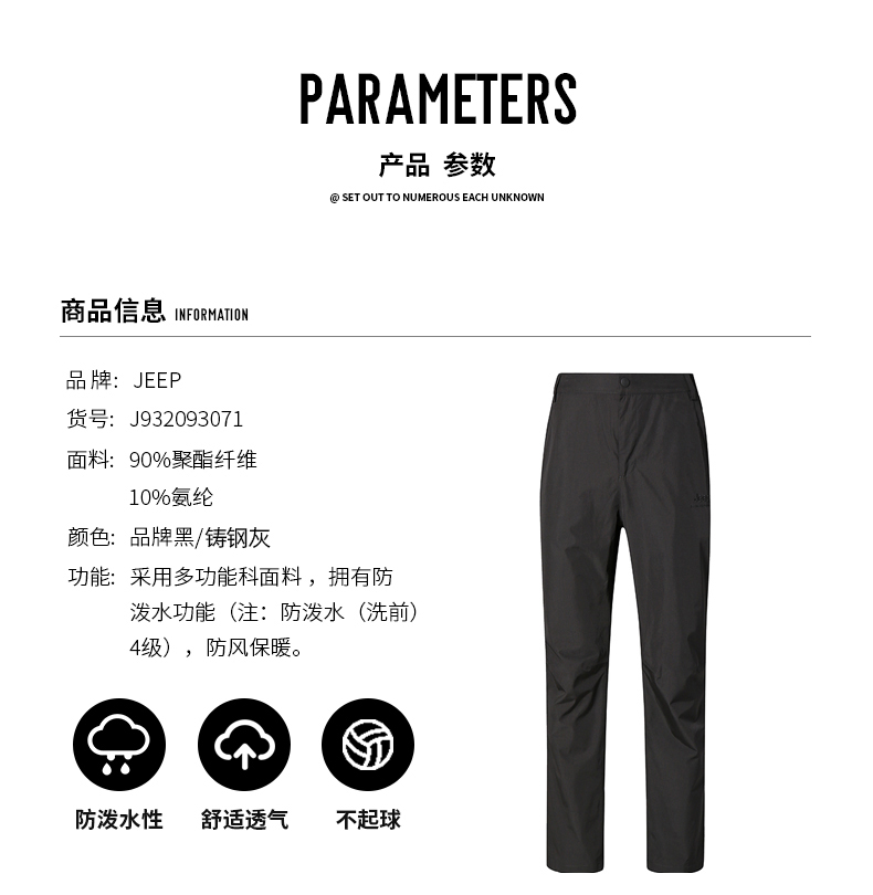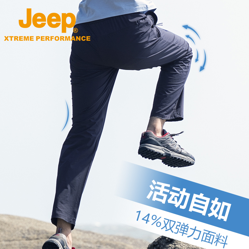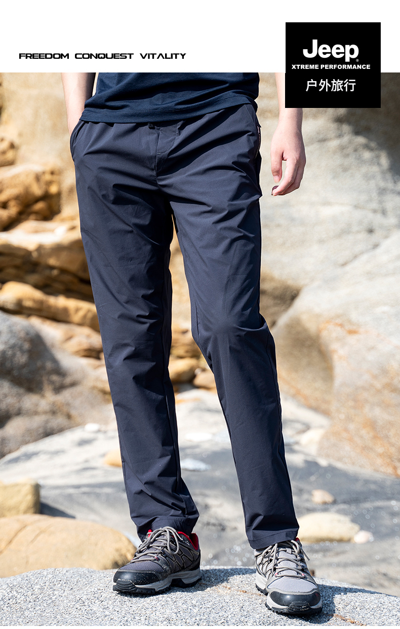 Jeep吉普戶外運動衝鋒褲男防水透氣速乾褲彈力直筒舒適長褲休閒褲
