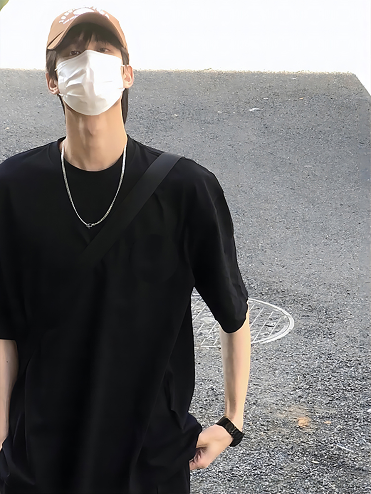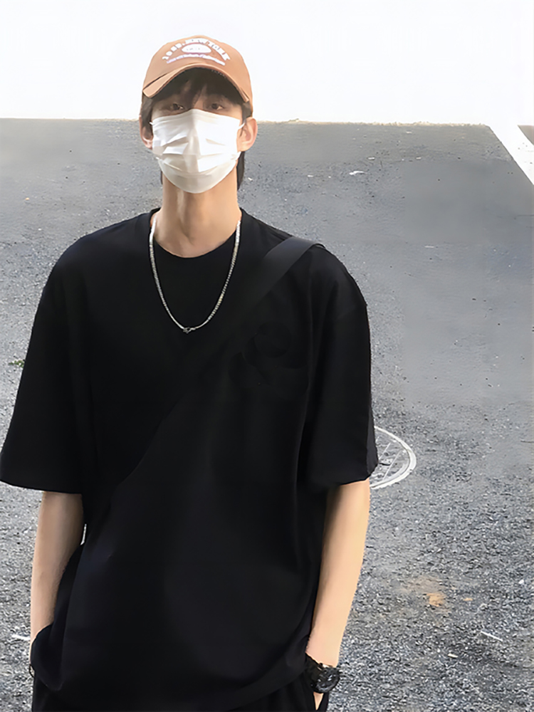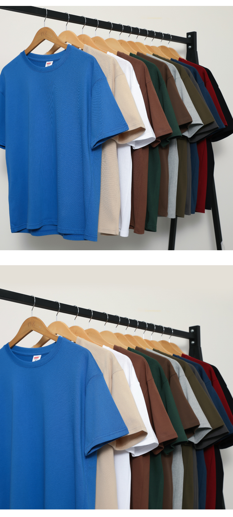 320g重磅純黑色cleanfit短袖美式高街男小領口純棉t恤三本針半袖