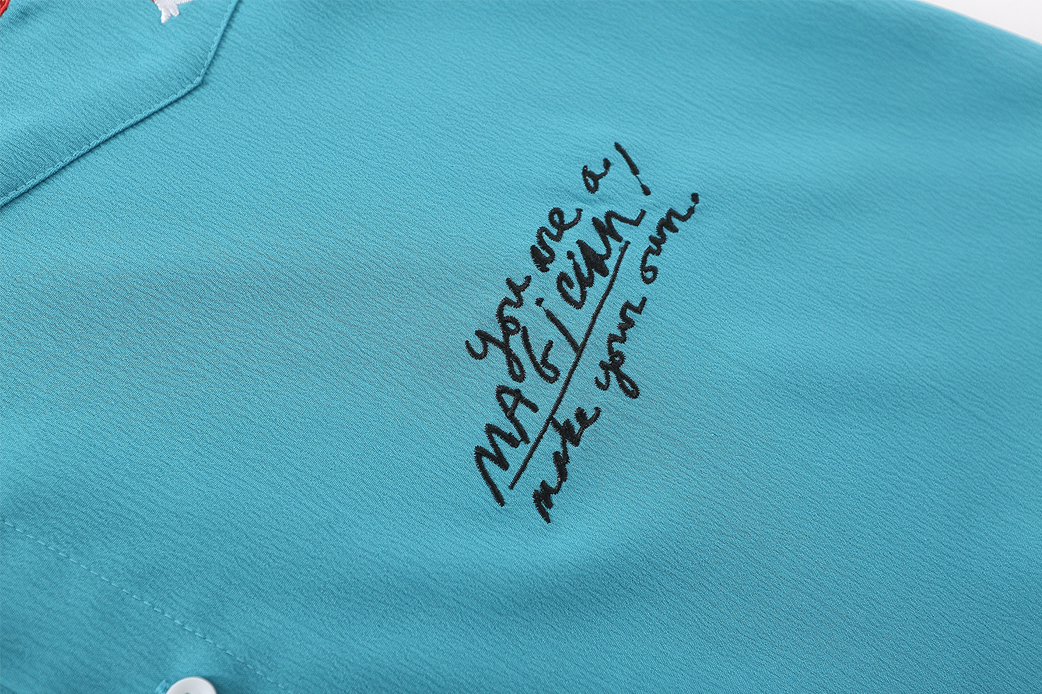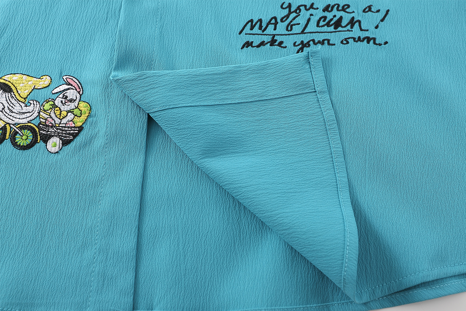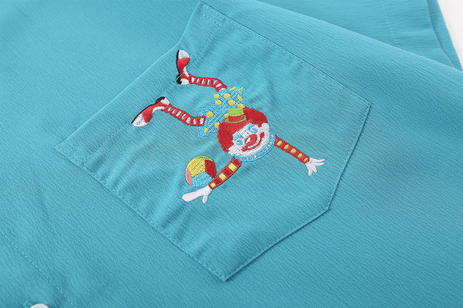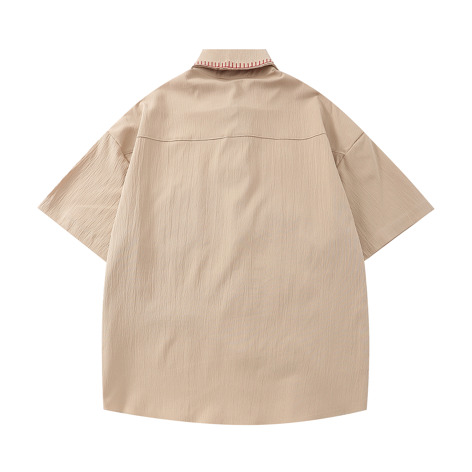 WESVGM美式復古趣味卡通刺繡短袖襯衫男女寬鬆情侶港味chic上衣潮