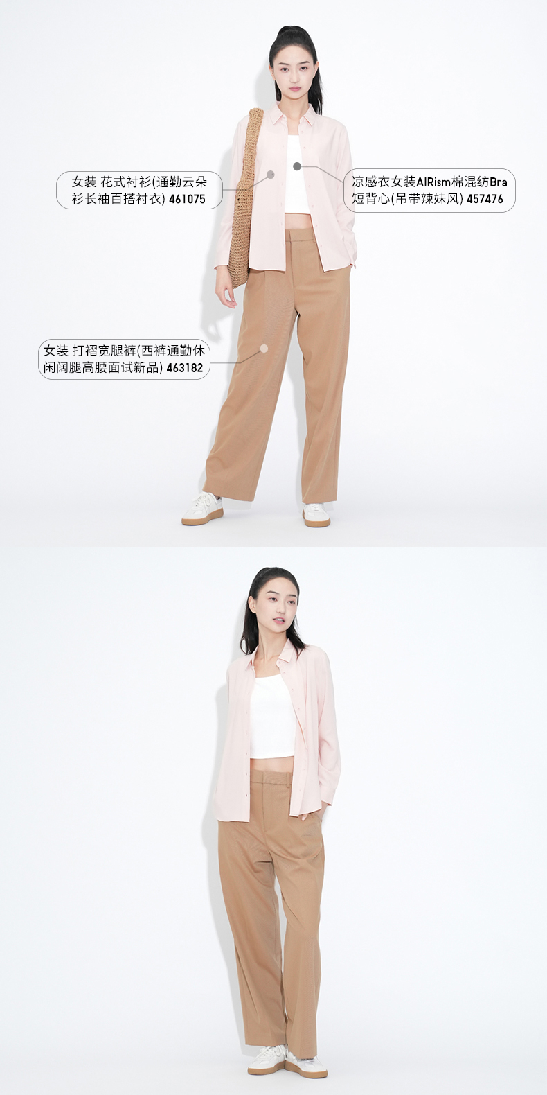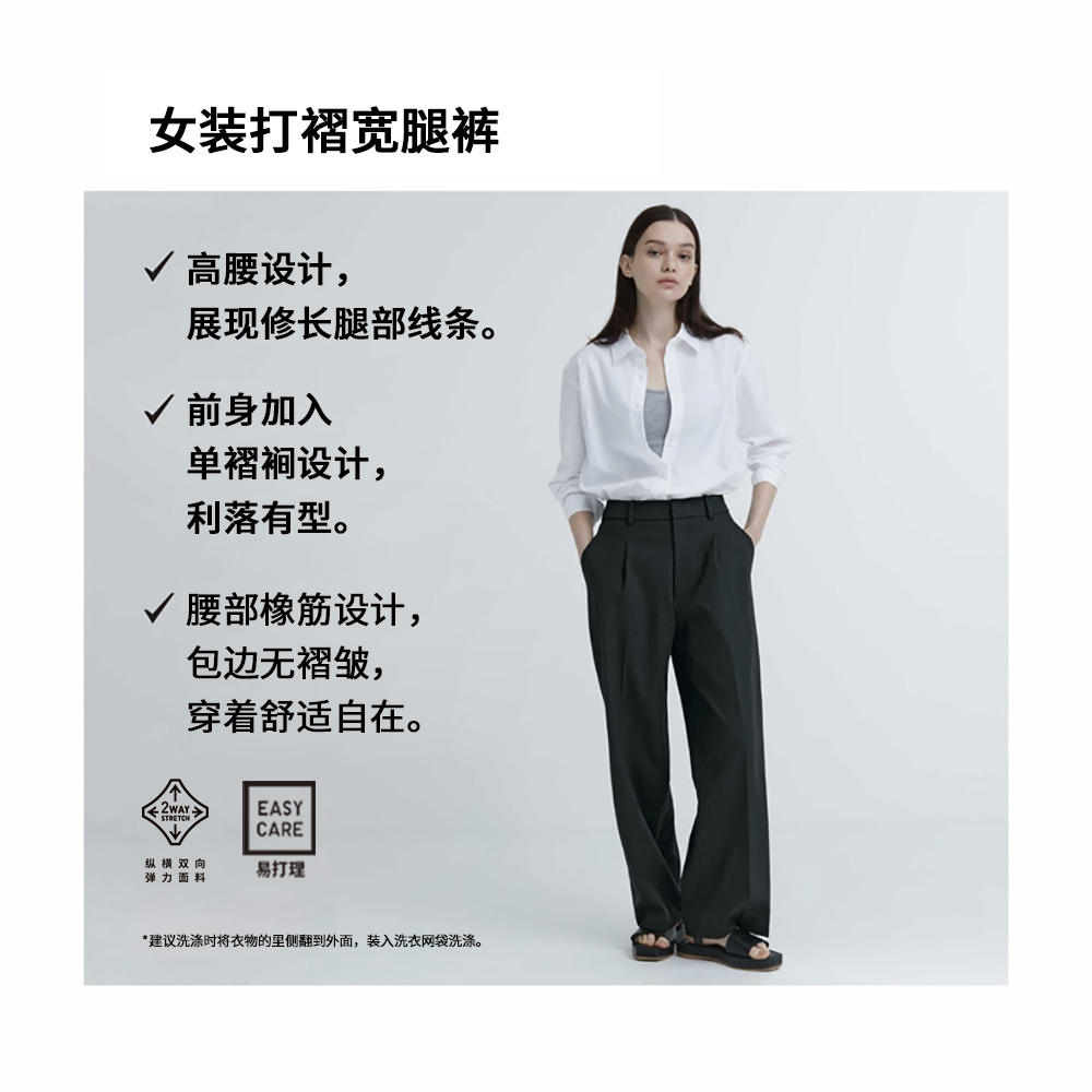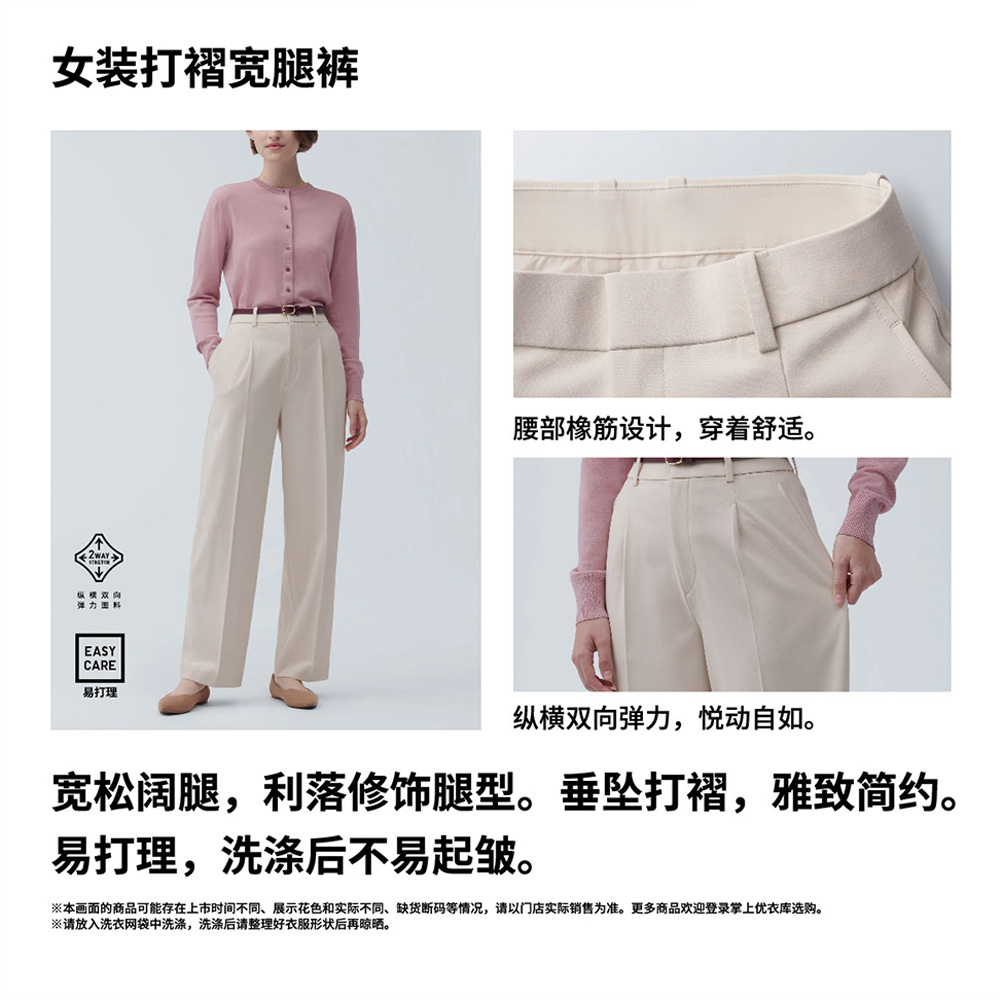 Uniqlo女裝打褶闊腿褲(西褲通勤休閒顯瘦高腰加長版單褶款)463182
