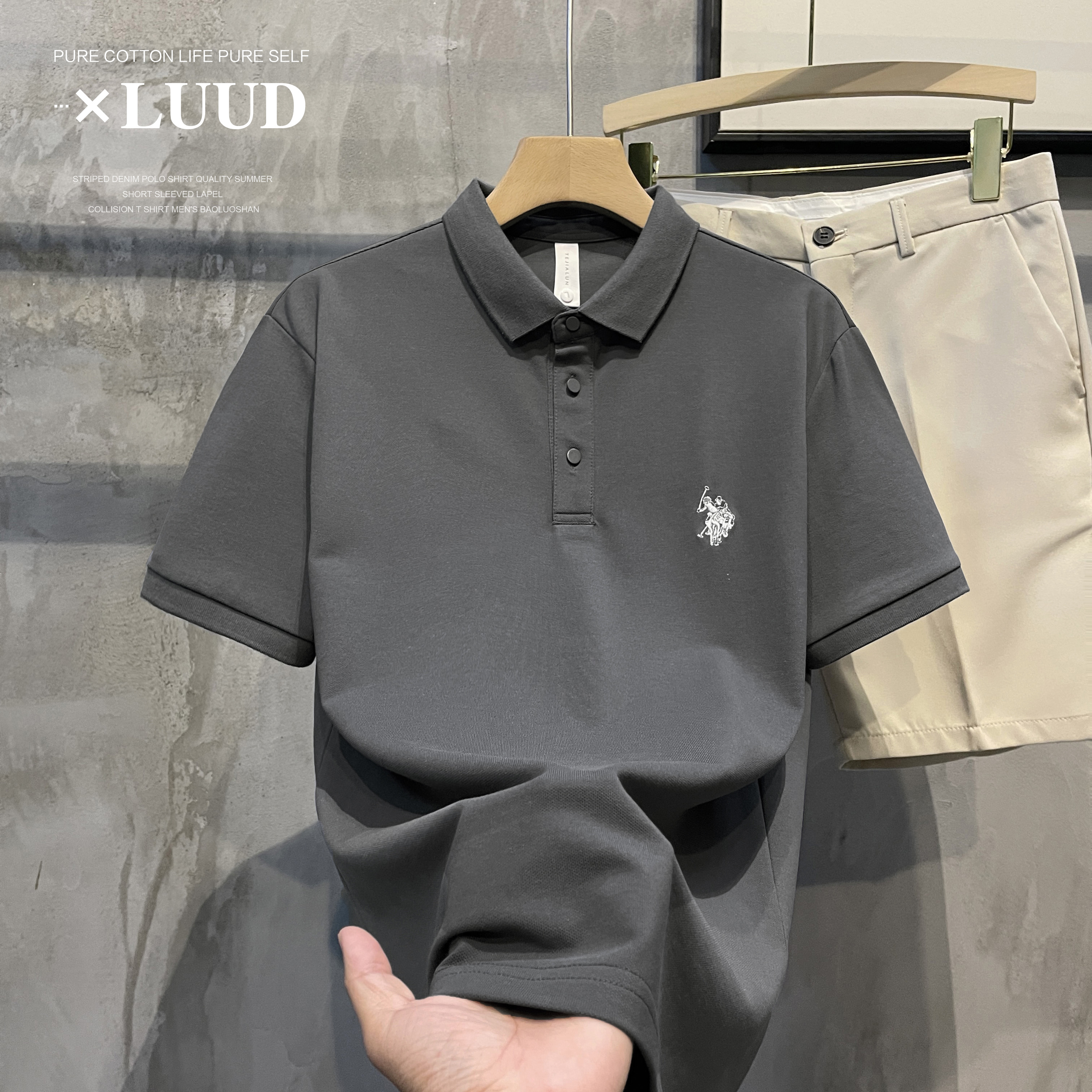 LUUD 潮流高端男士有領短袖韓版修身小刺繡休閒百搭翻領POLO衫男