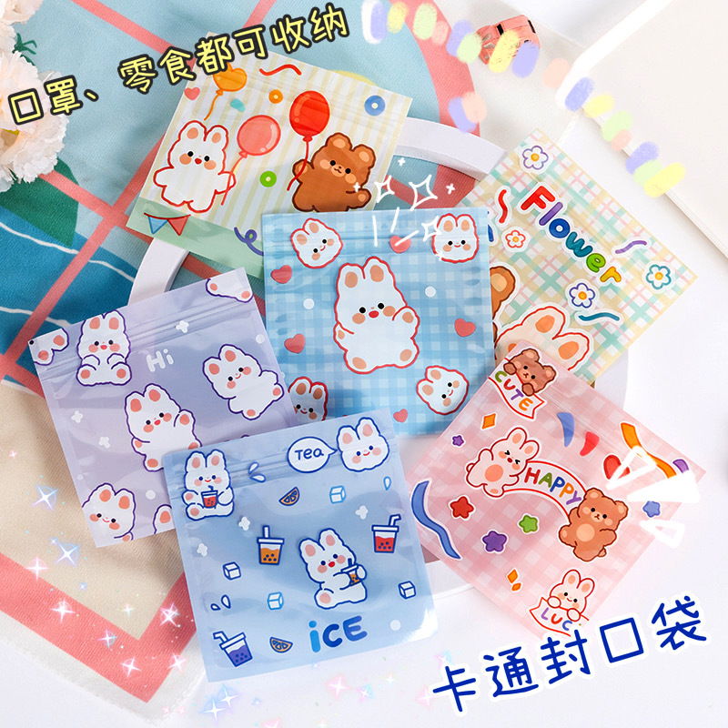 韩国可爱零食自封袋少女心小熊饼干糖果小号口罩收纳包装袋糖果袋