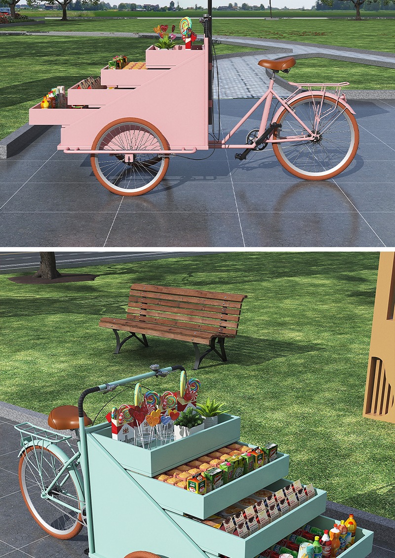 倒騎驢三輪擺攤促銷架餐車移動小吃車花車攤位車水果撈飲品咖啡車