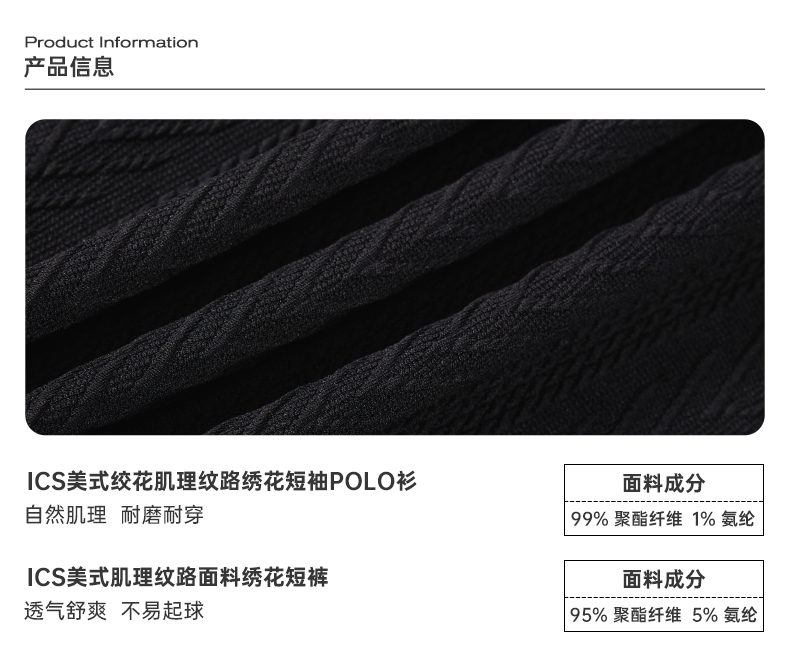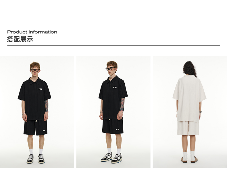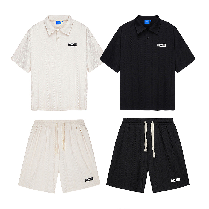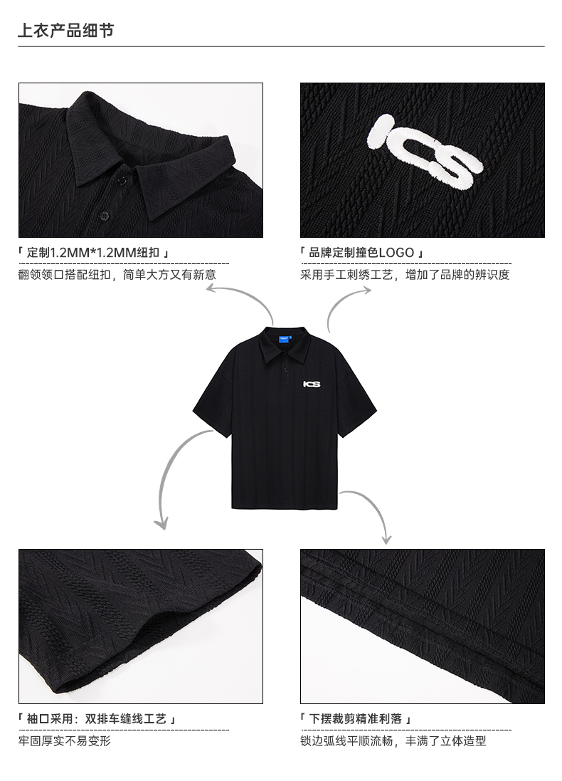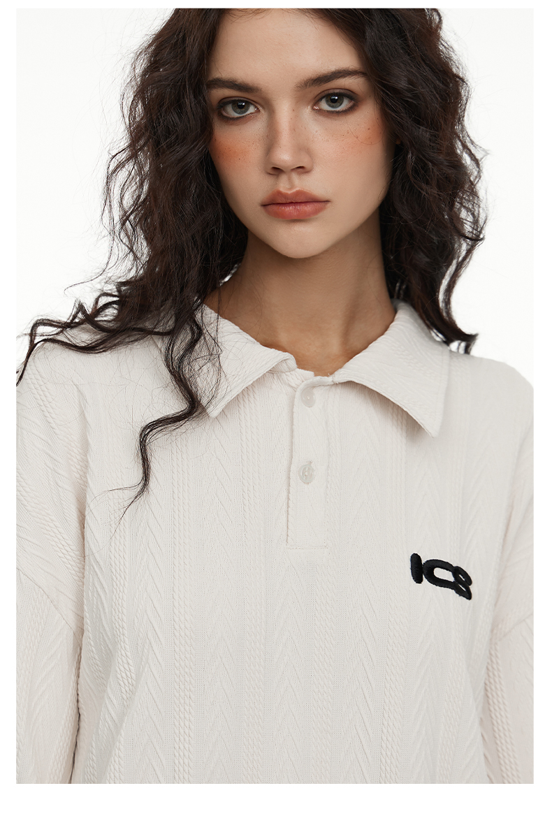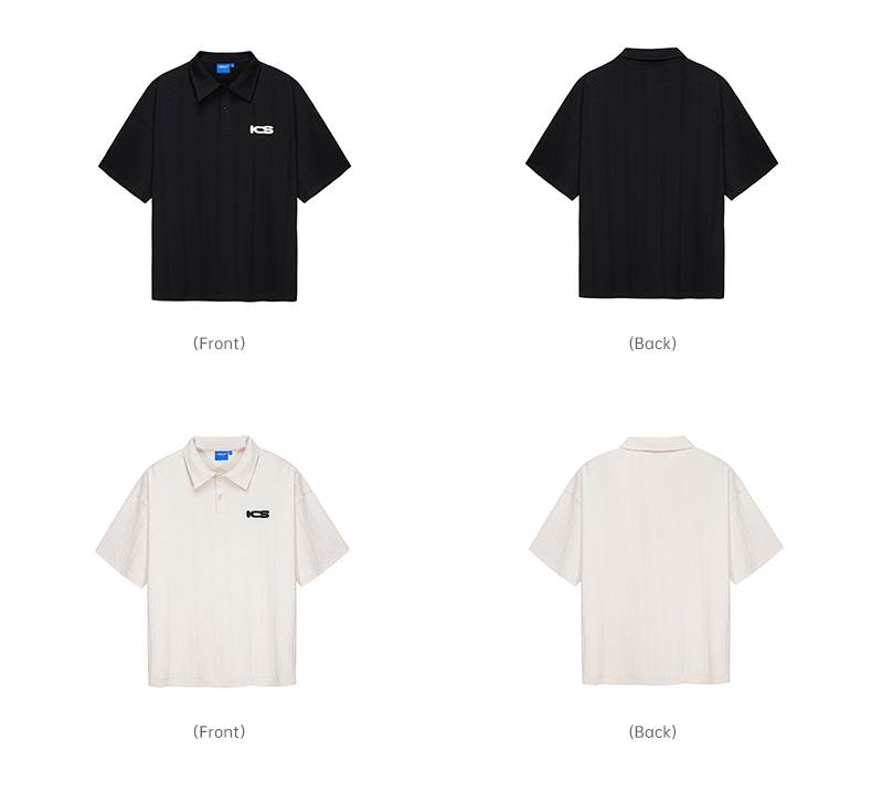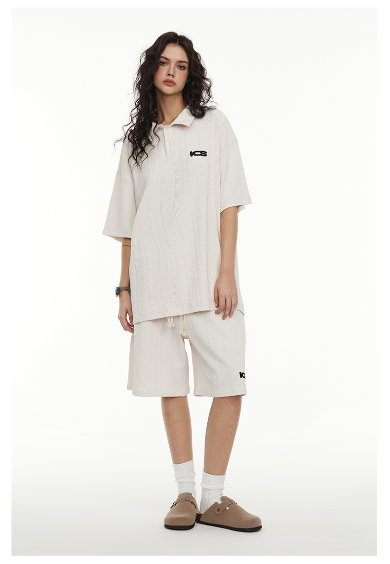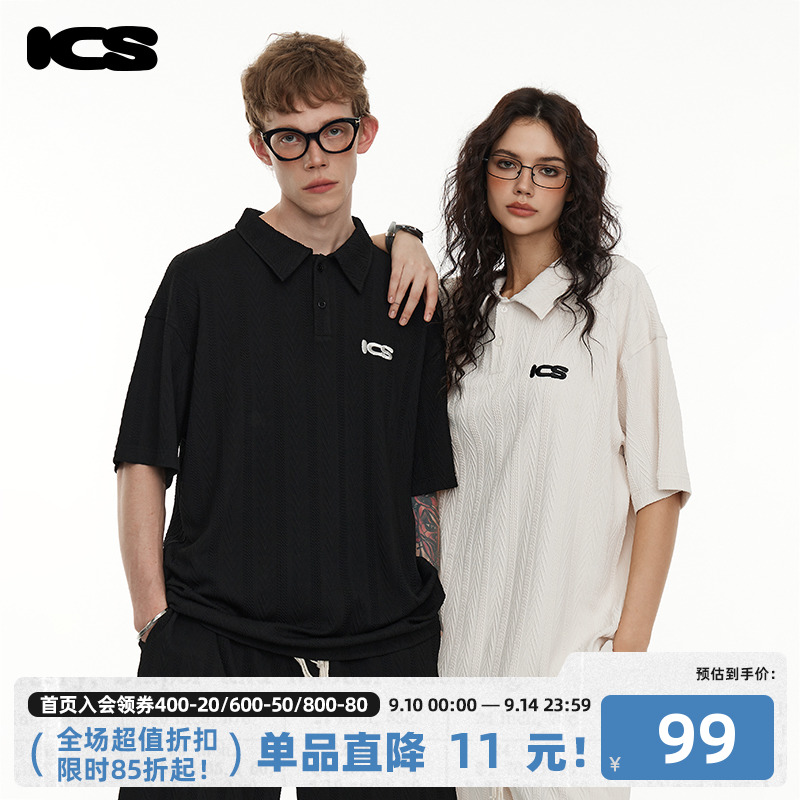 ICONSLAB美式絞花肌理紋路繡花短袖polo衫男復古情侶裝翻領T恤夏