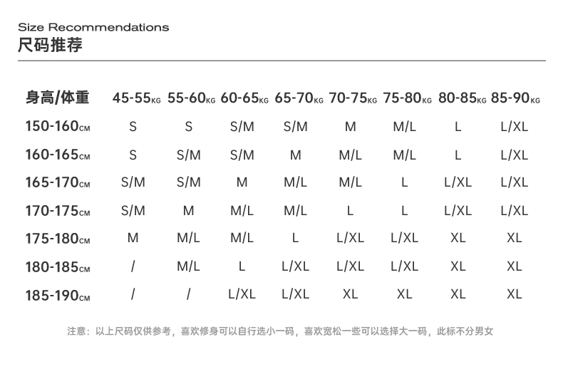 尺碼 S M L XL