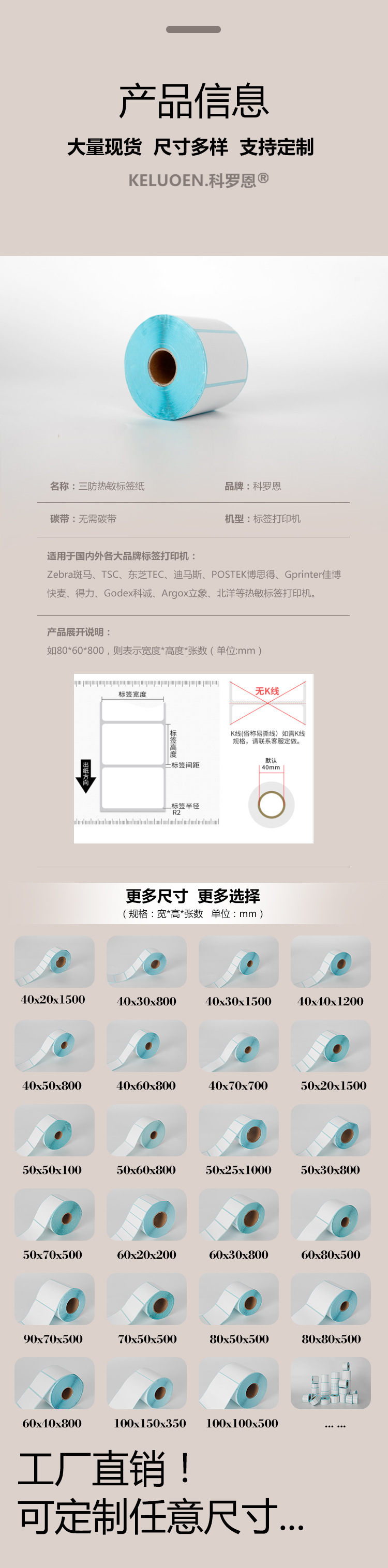 尺寸 40*30*800张 100卷一箱,50*30*800张 100卷一箱,60*40*800张 64卷一箱,70*120*500张,60*40*1200张 50卷一箱