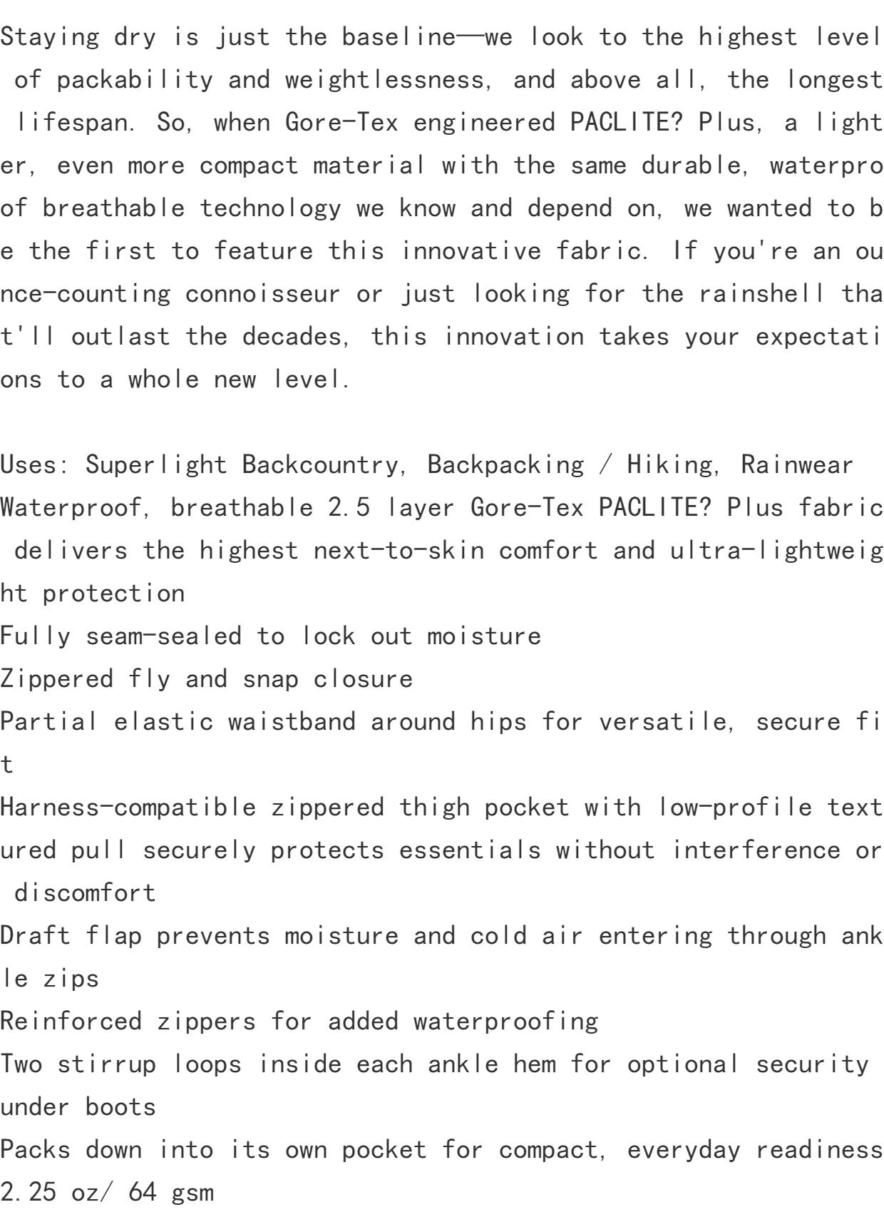 顏色分類 DarkStorm風暴黑 Gore-Tex PACLITE® Plus