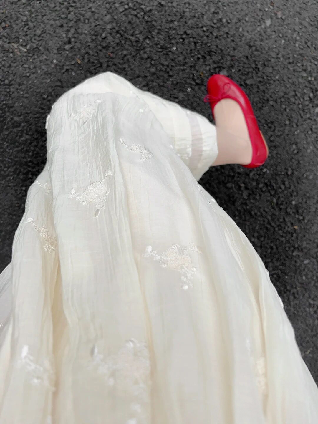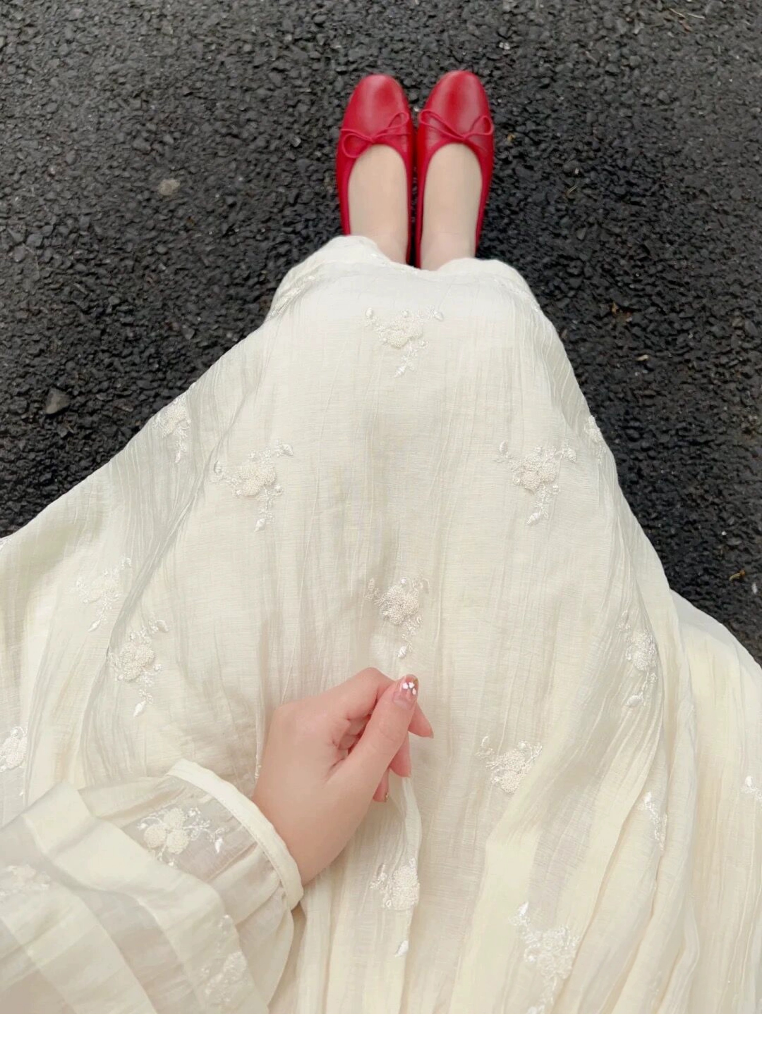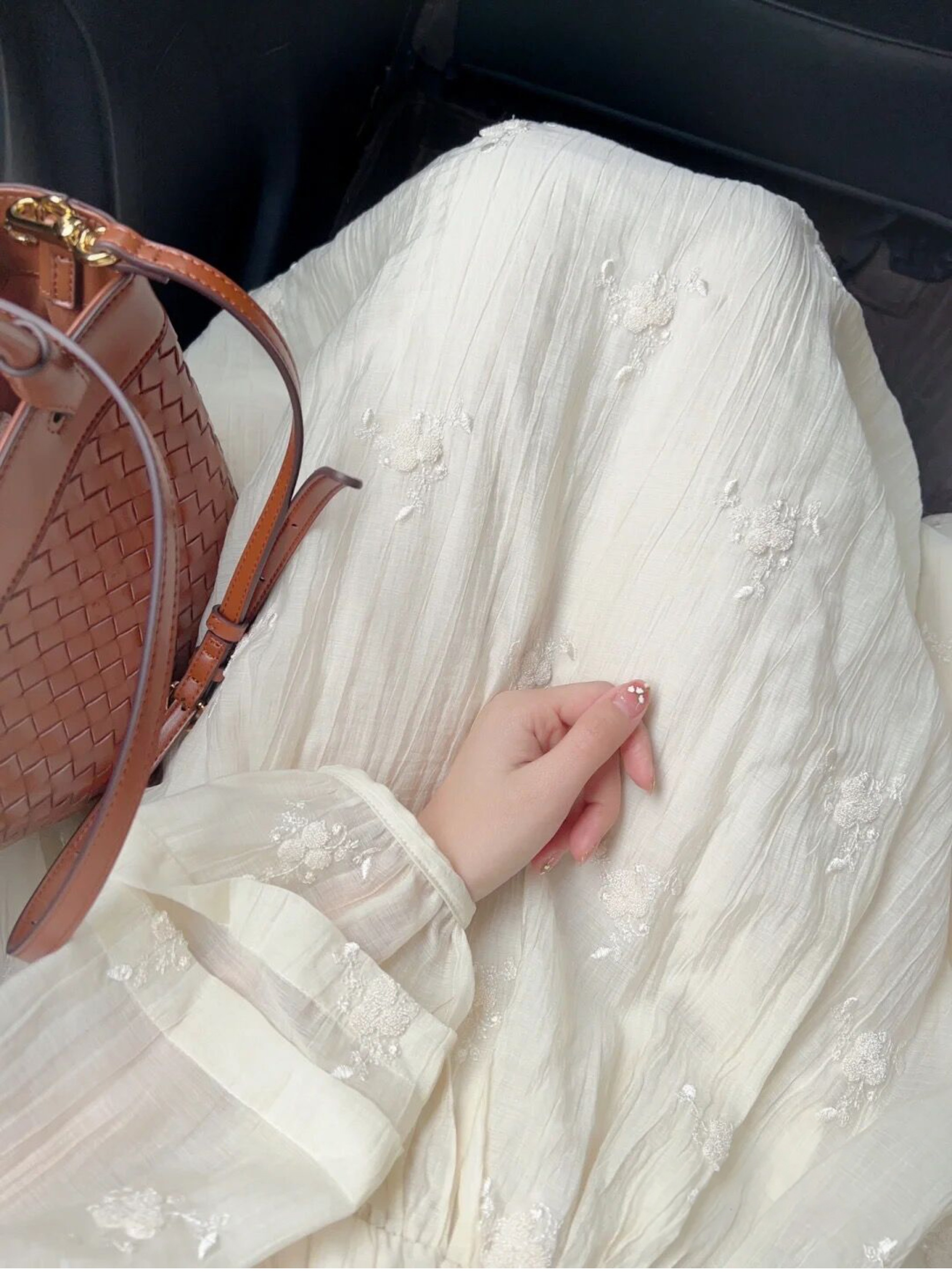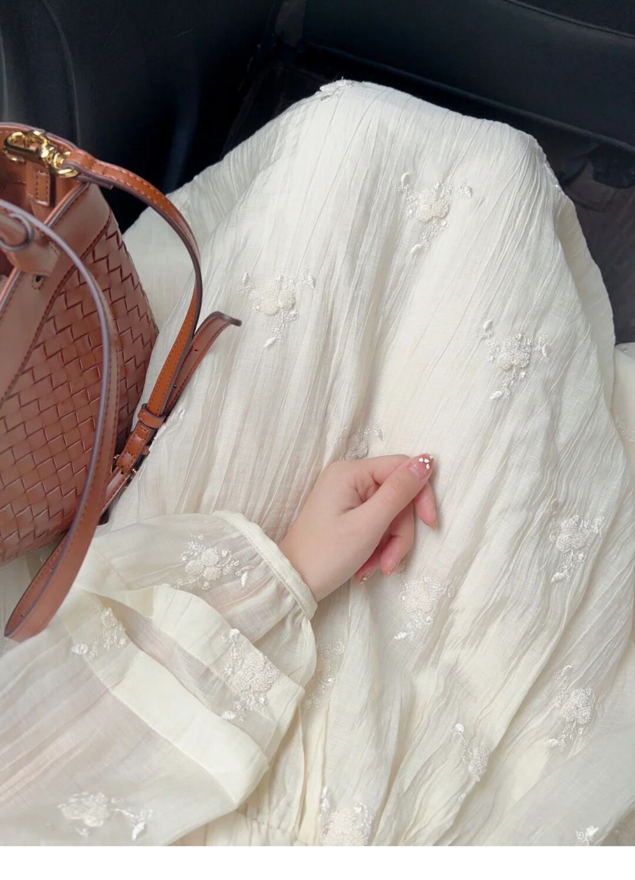 法式重工肌理感刺繡碎花長袖洋裝超仙女秋冬季繫帶收腰氣質長裙