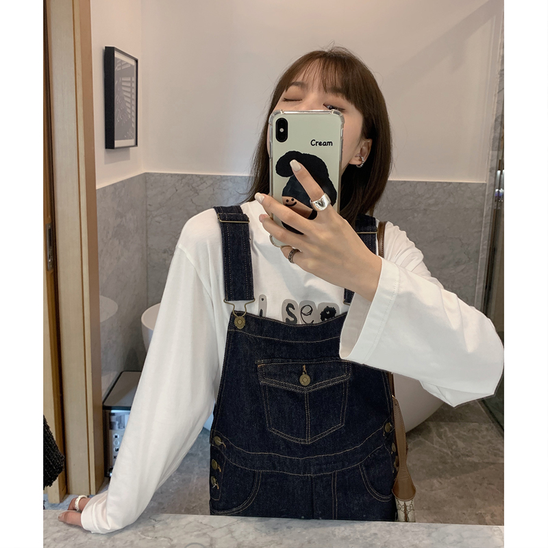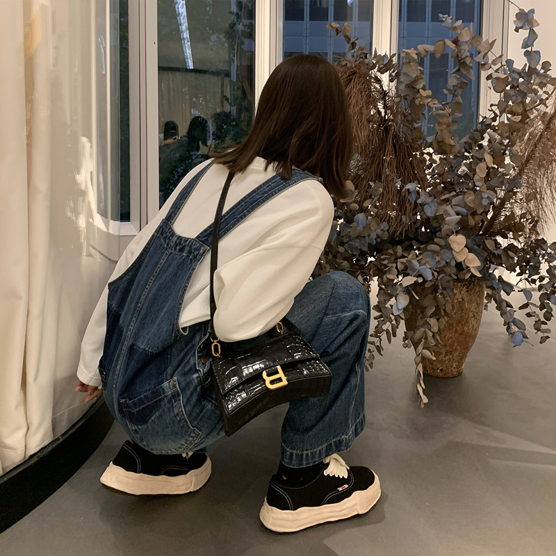 牛仔抱嬰袋褲女春秋新款韓版寬鬆顯瘦減齡設計感網紅炸街直筒連身褲