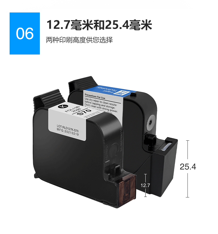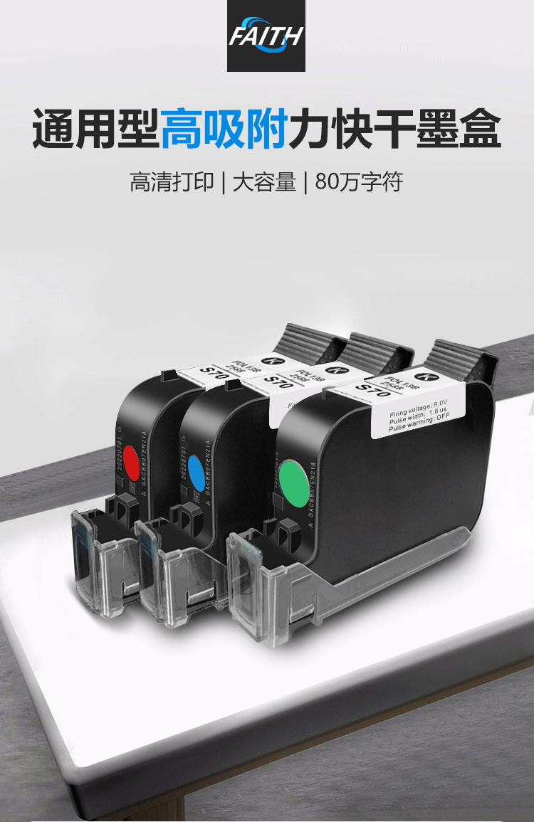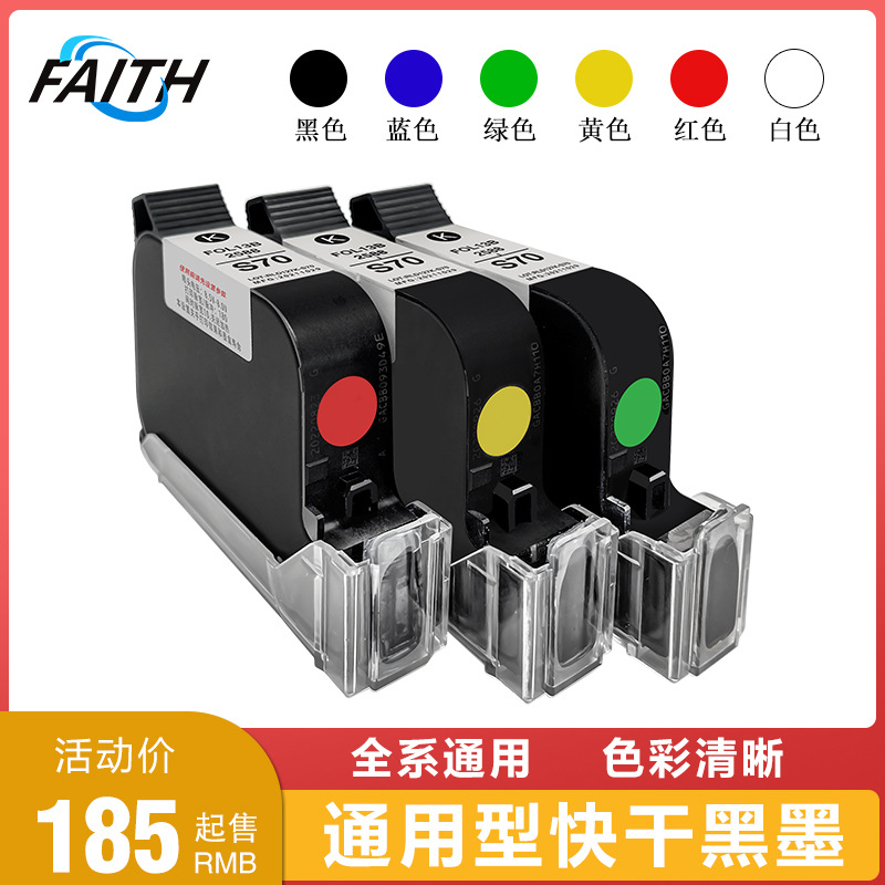 FAITH 喷码机专用耗材墨盒一寸半寸高附着力黑色快干溶剂墨盒