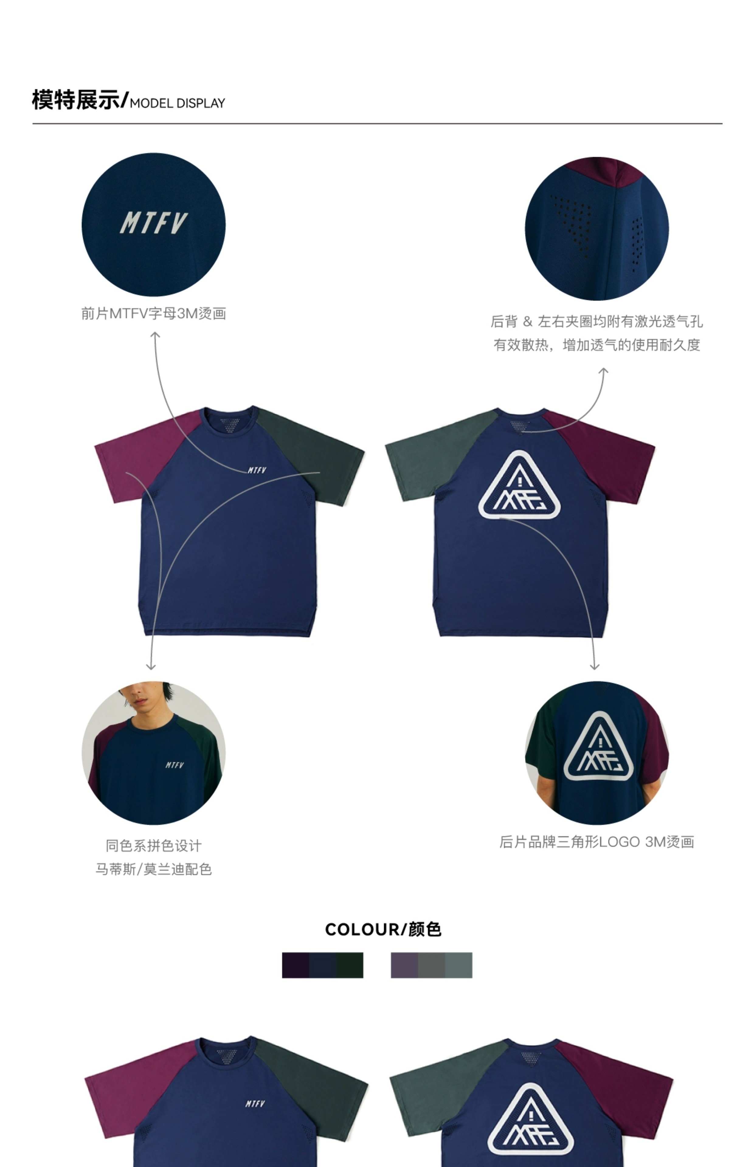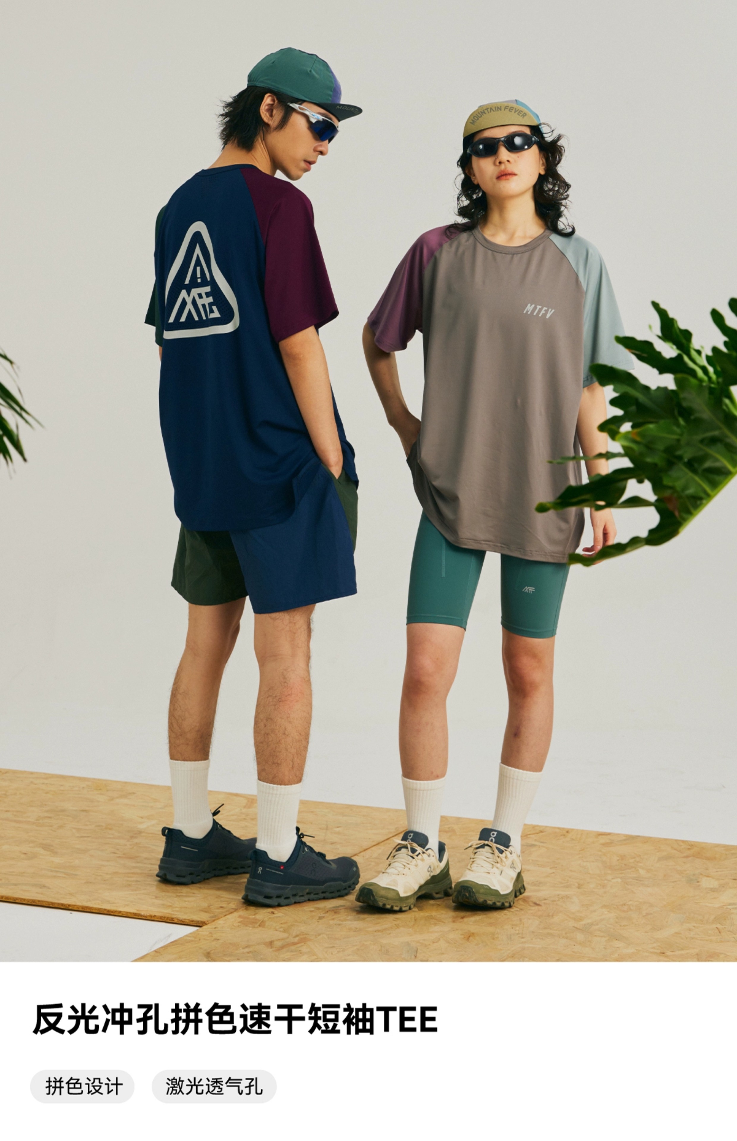 MOUNTAINFEVER SS23 激光透氣沖孔3M反光LOGO彈力速乾拼色短袖TEE