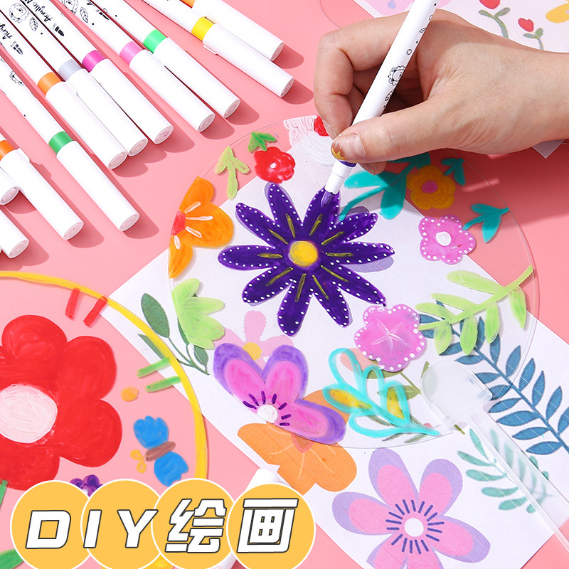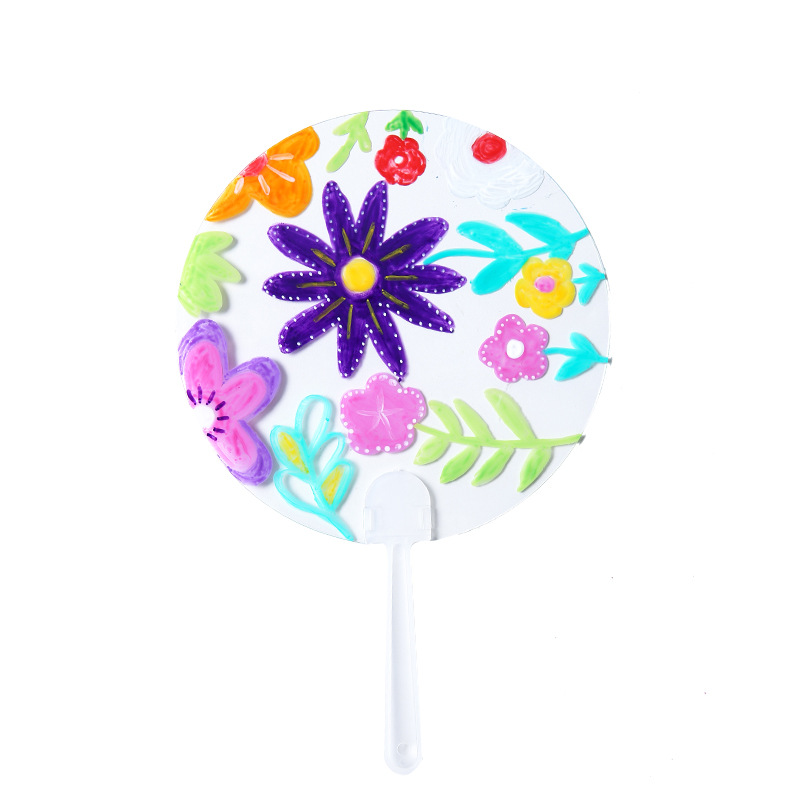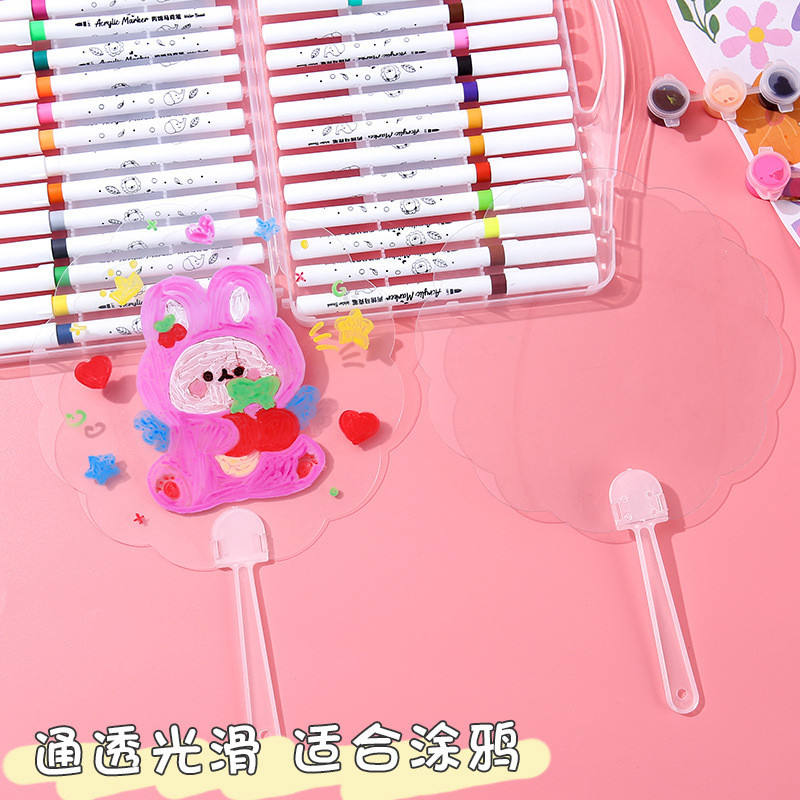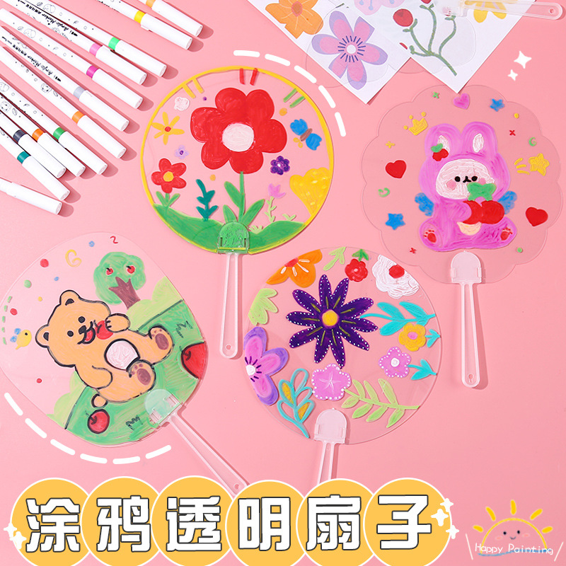 PVC透明空白扇子儿童手工diy涂鸦画扇团扇材料包夏季画画圆扇六一