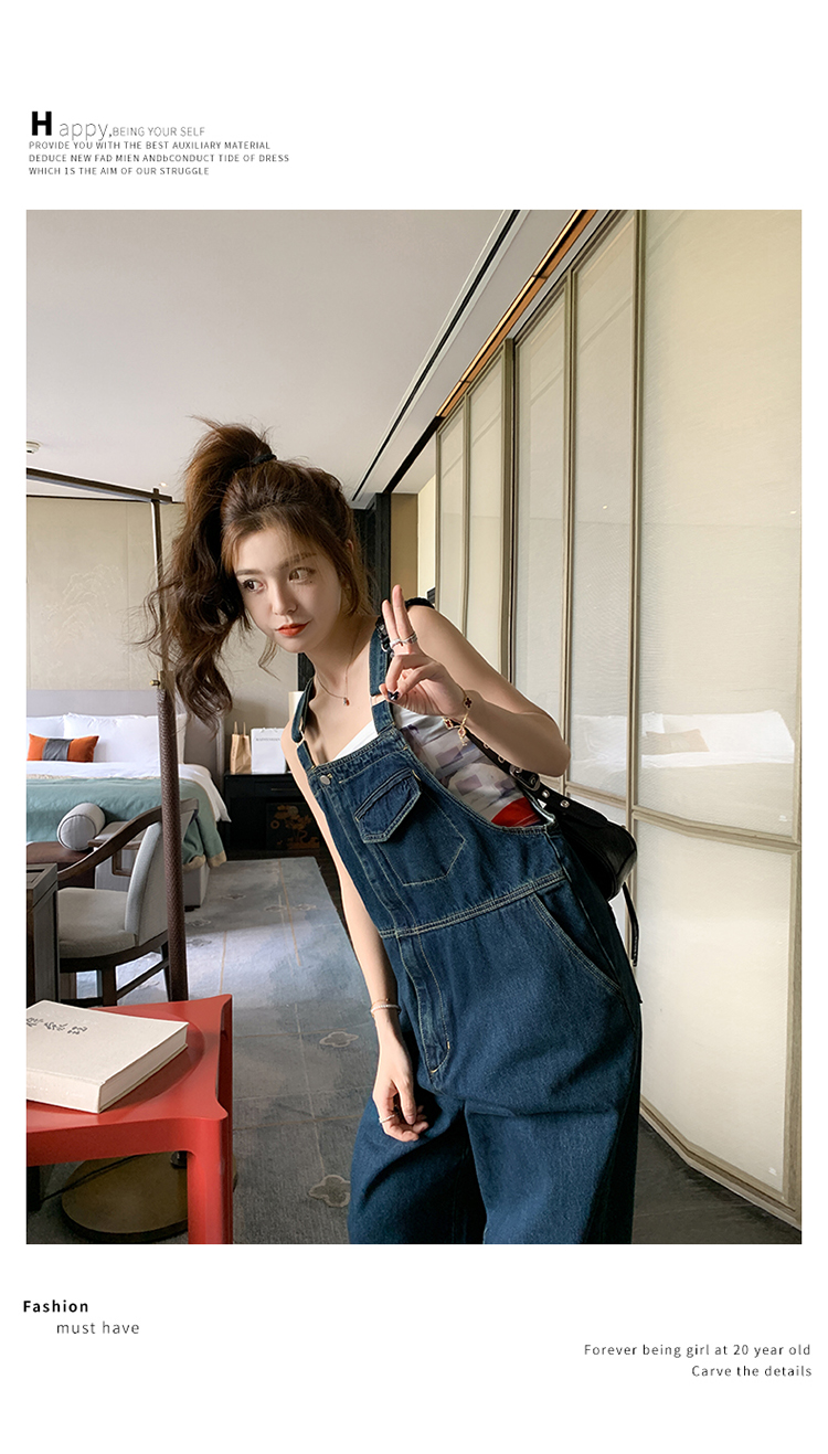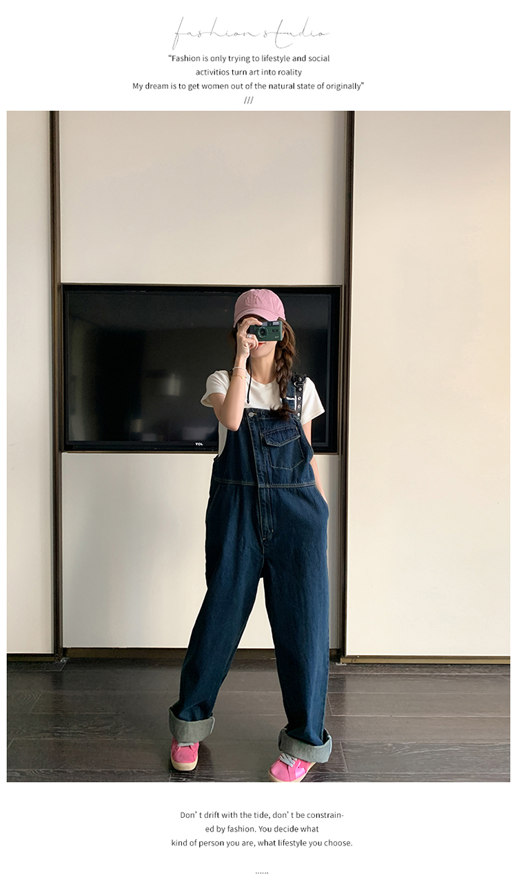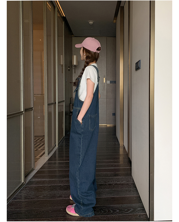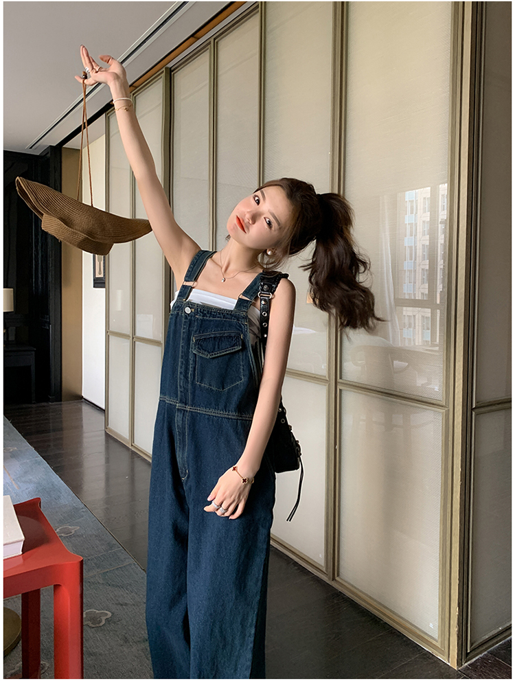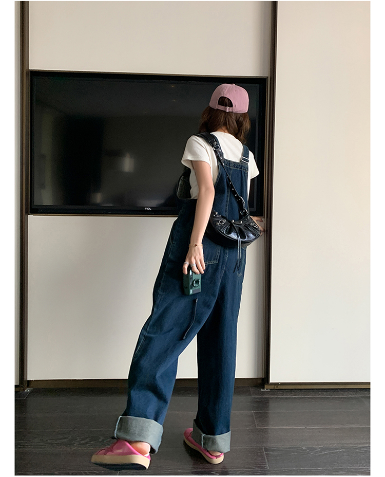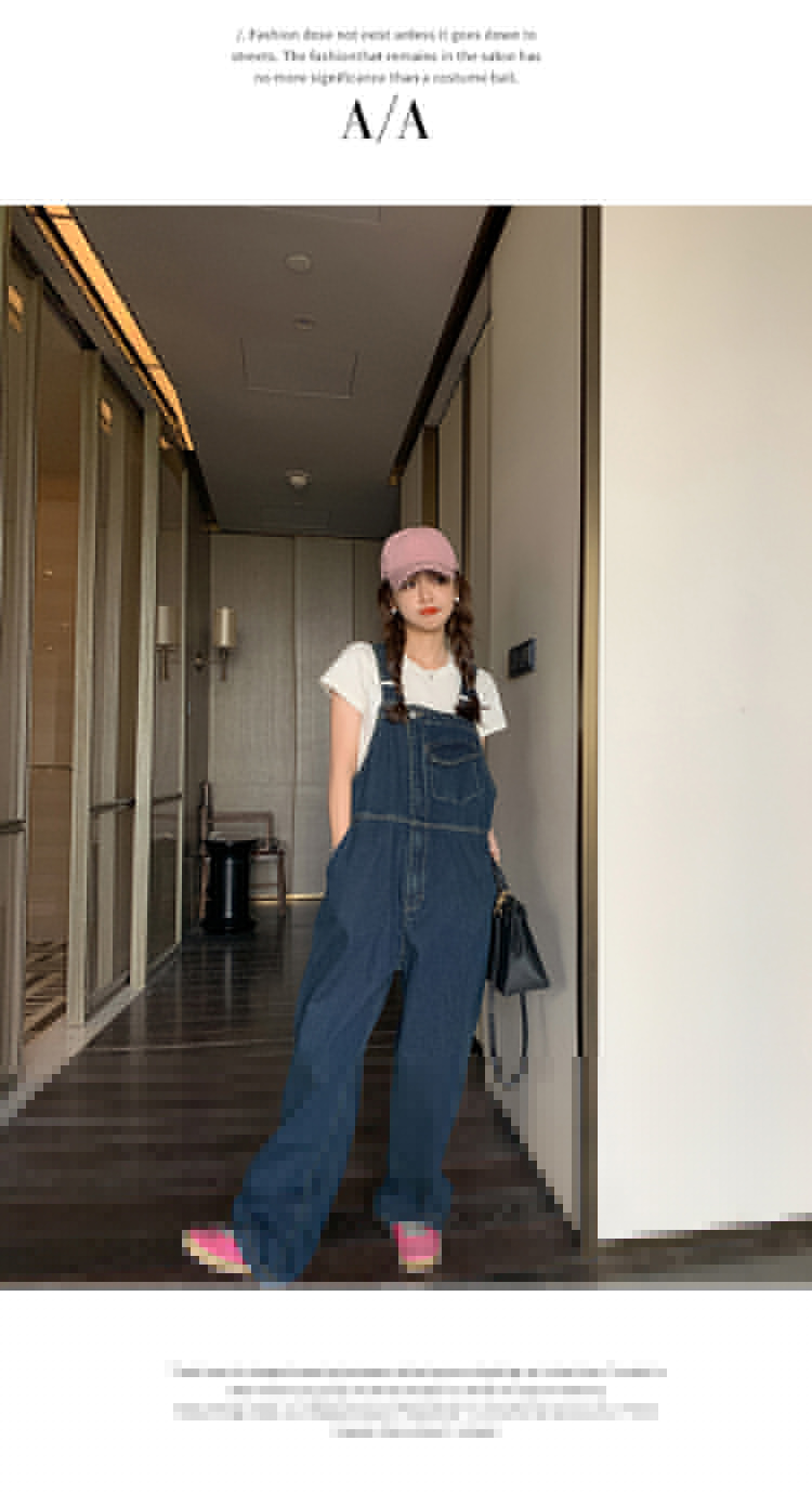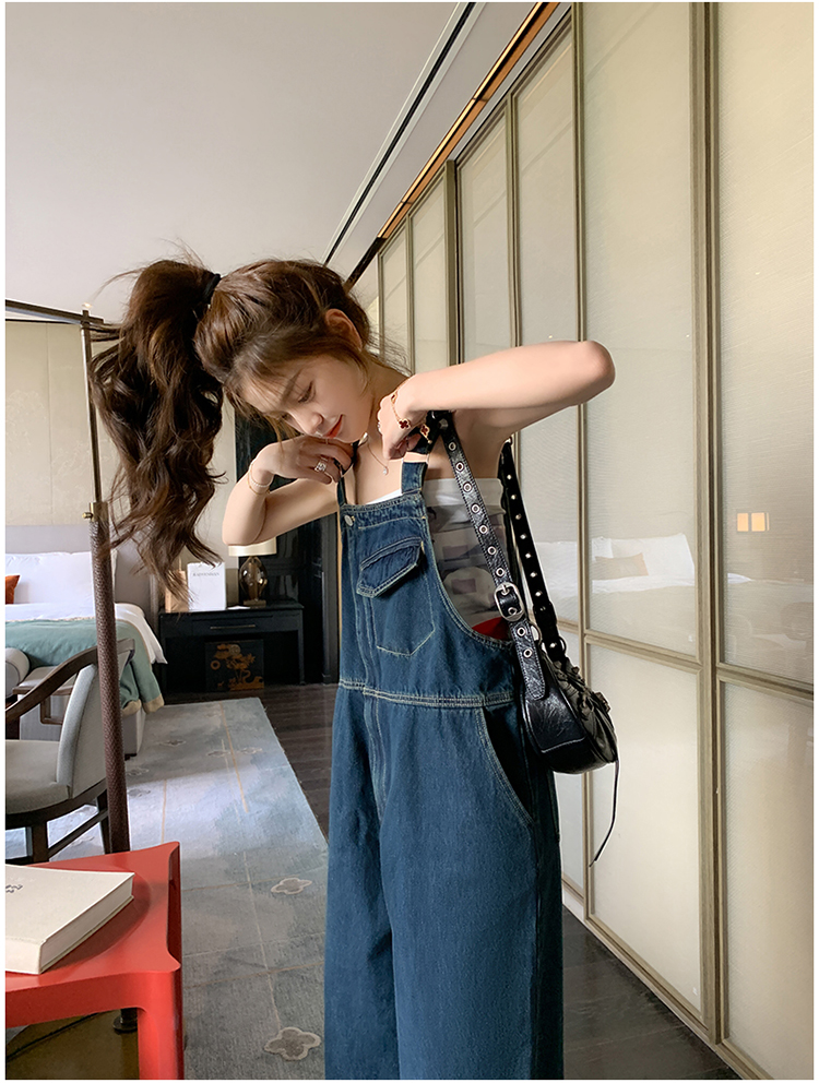 網紅直筒牛仔抱嬰袋褲女夏2023新款韓版高腰顯瘦闊腿垂感連身拖地褲