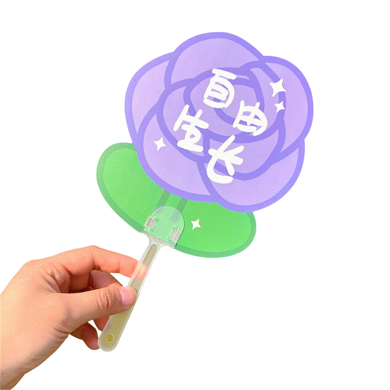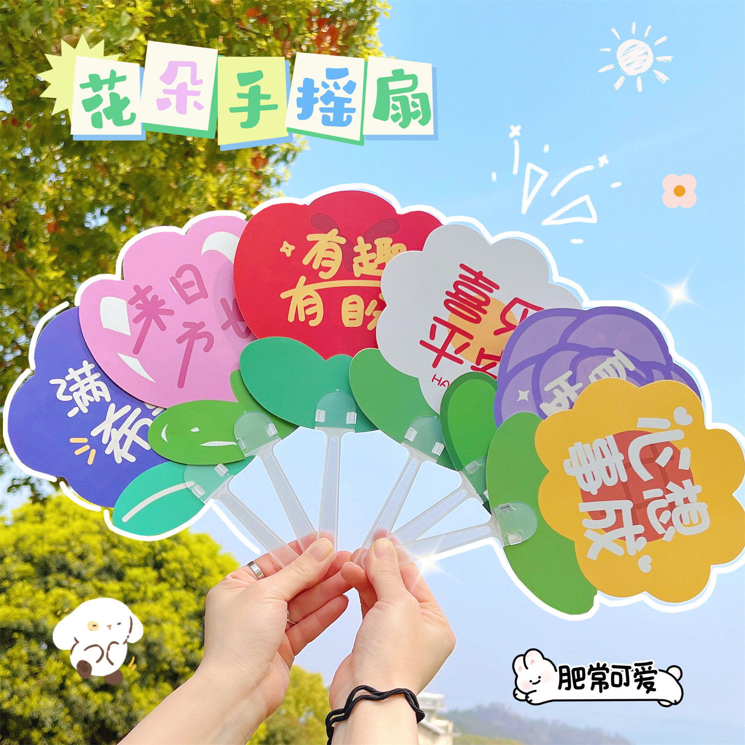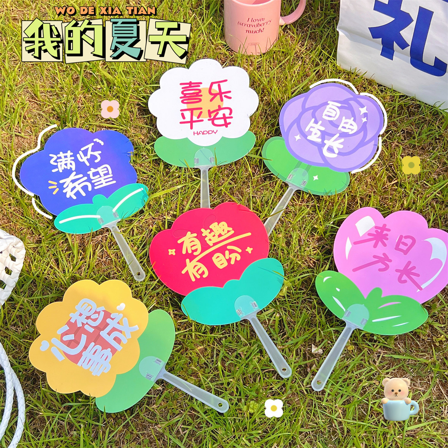 励志文字花开半夏手持扇 迷你便携异形花朵手摇扇夏季可爱小扇子
