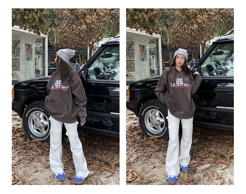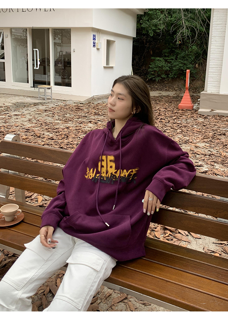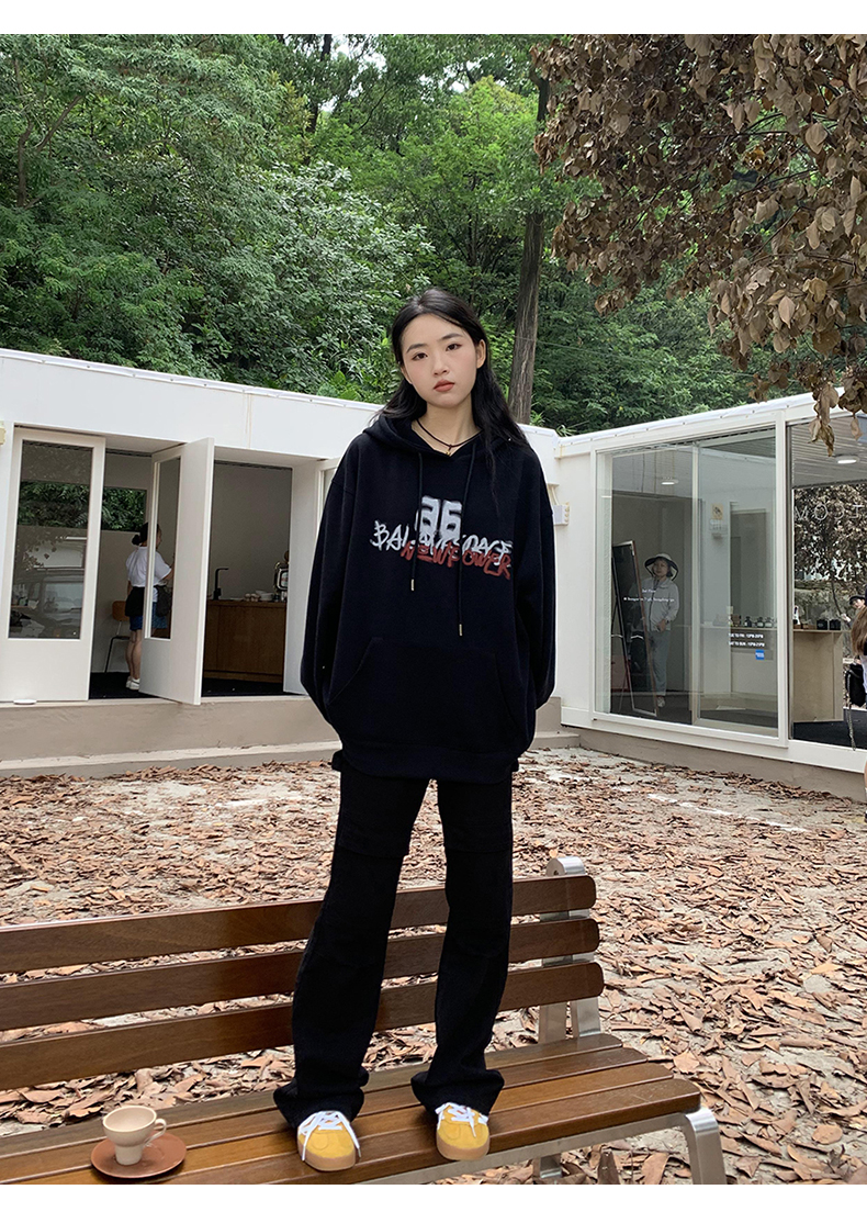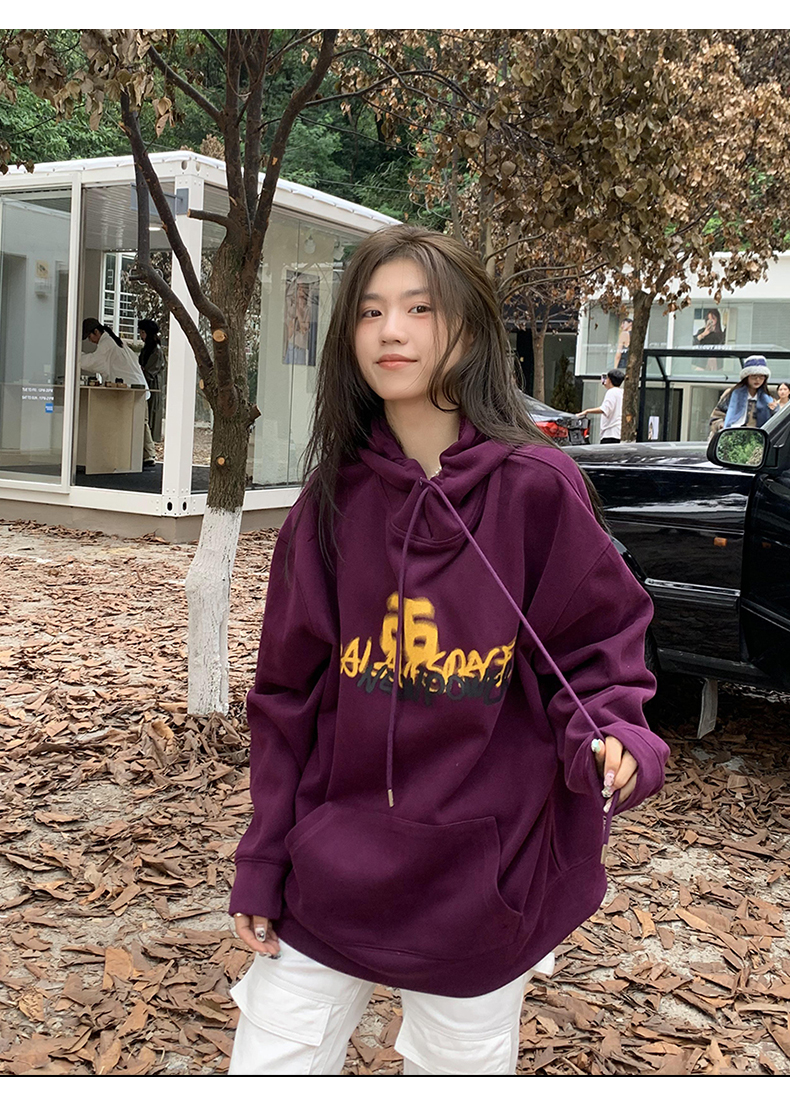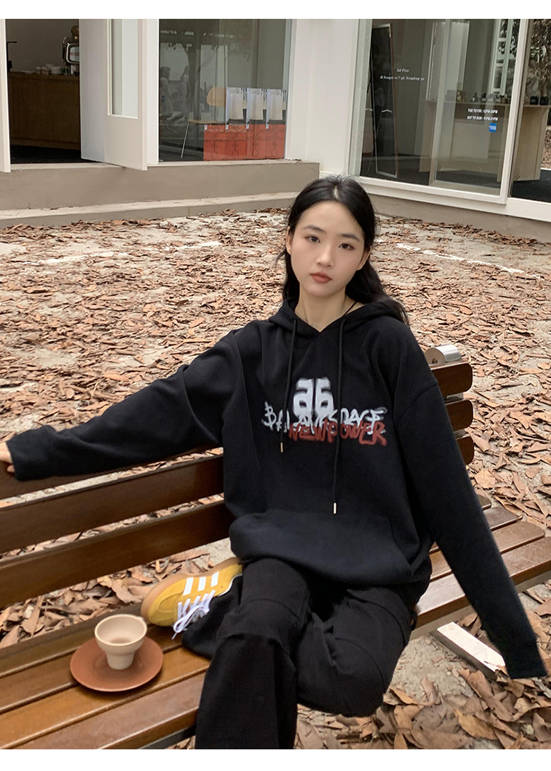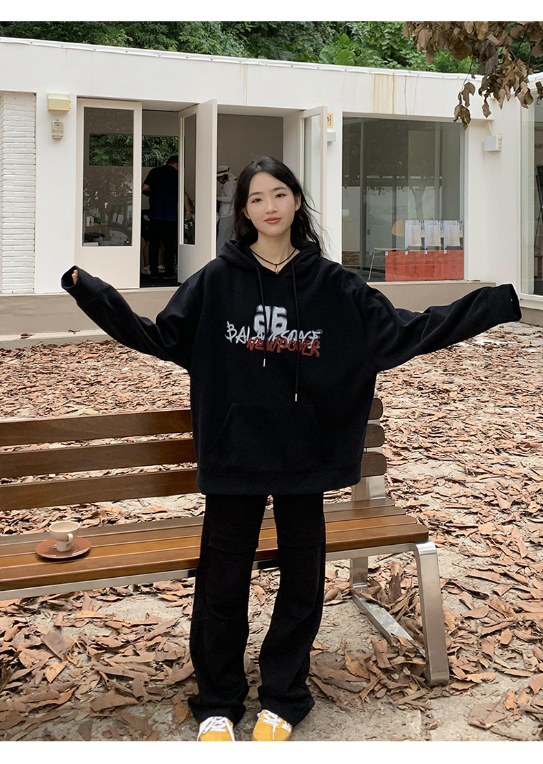 橘子樹在哪兒中性風男女同款連帽運動衫春秋寬鬆深灰色字母印花帽衫