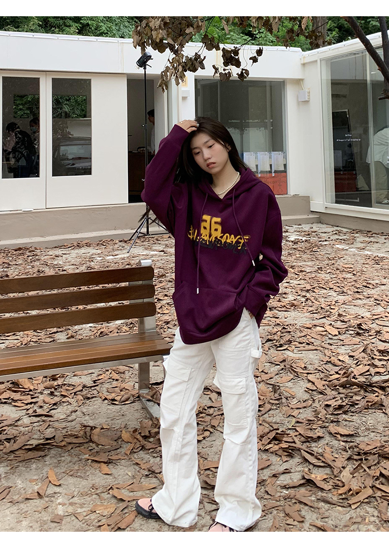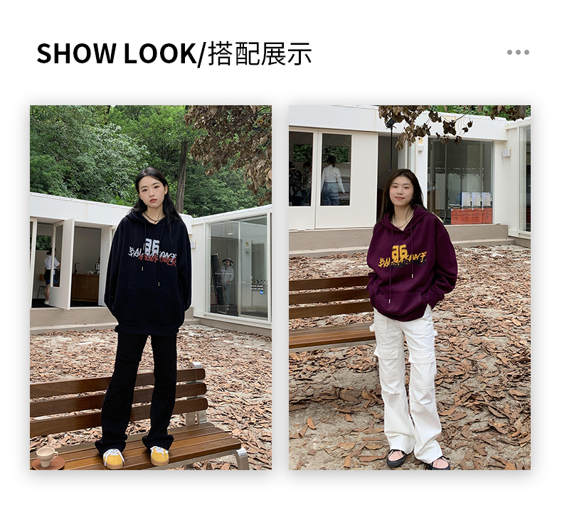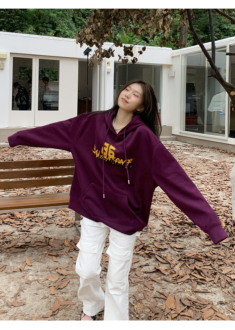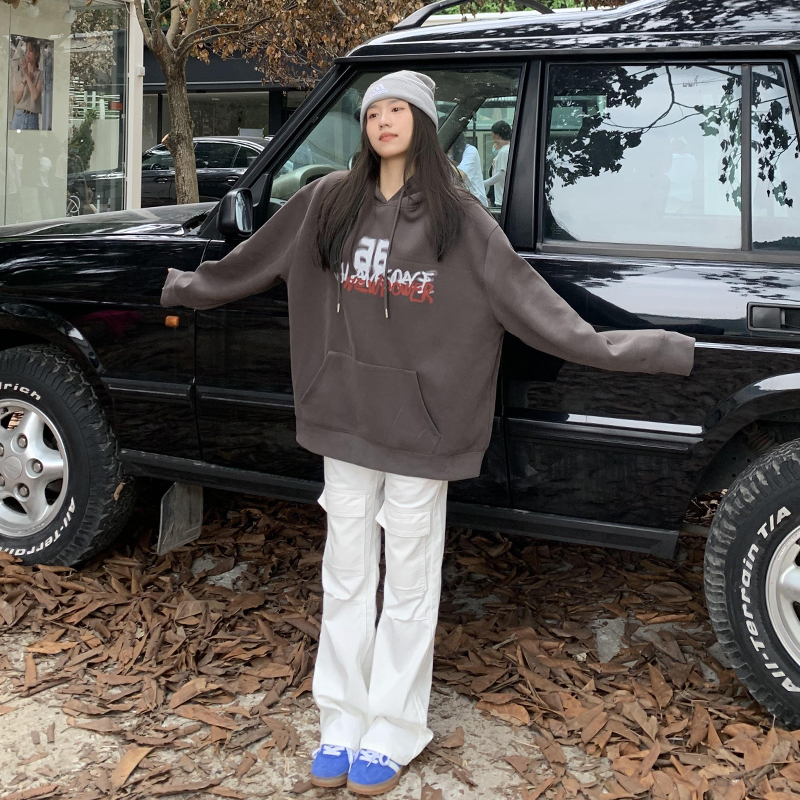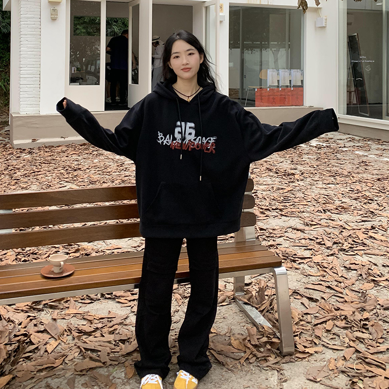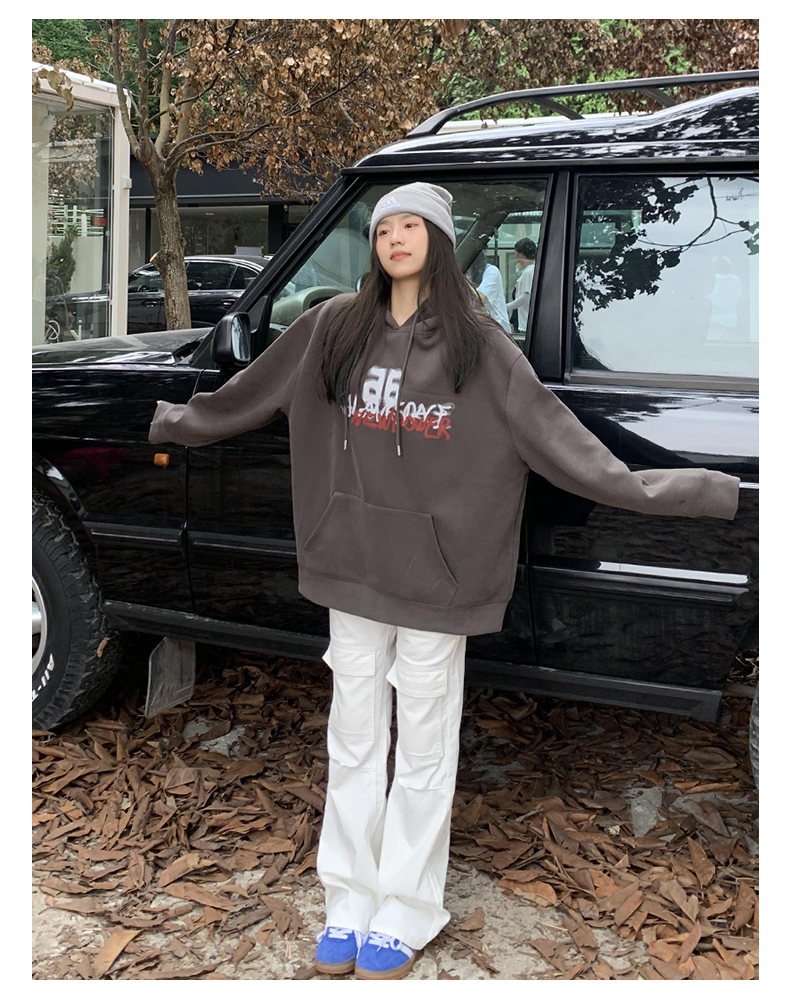 橘子樹在哪兒中性風男女同款連帽運動衫春秋寬鬆深灰色字母印花帽衫