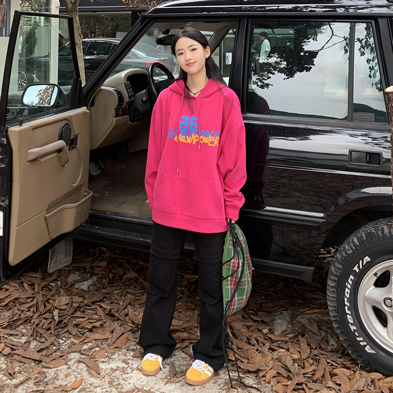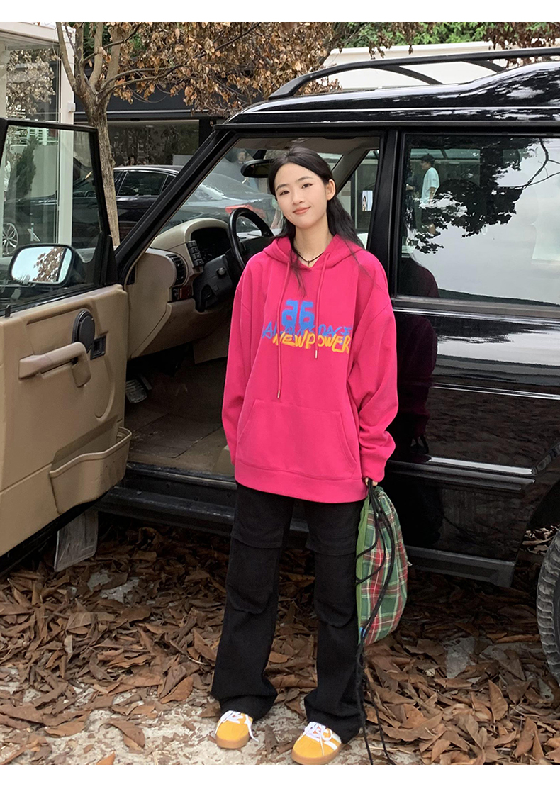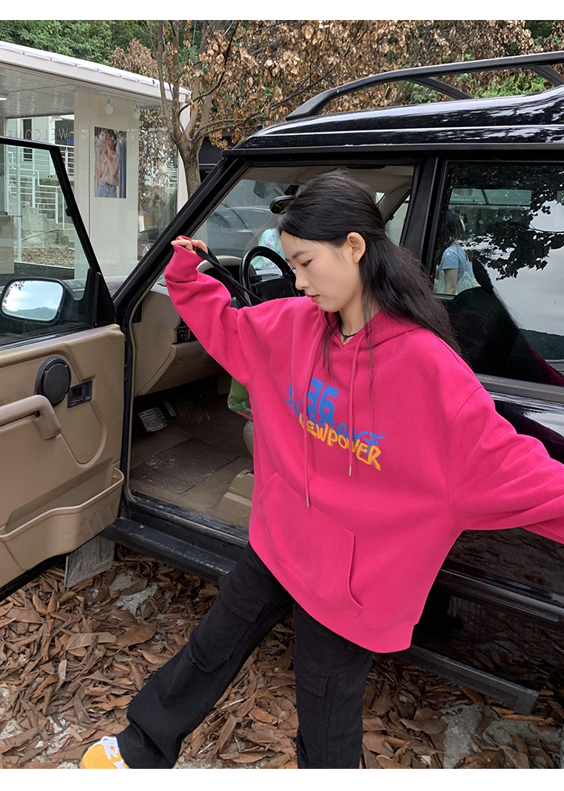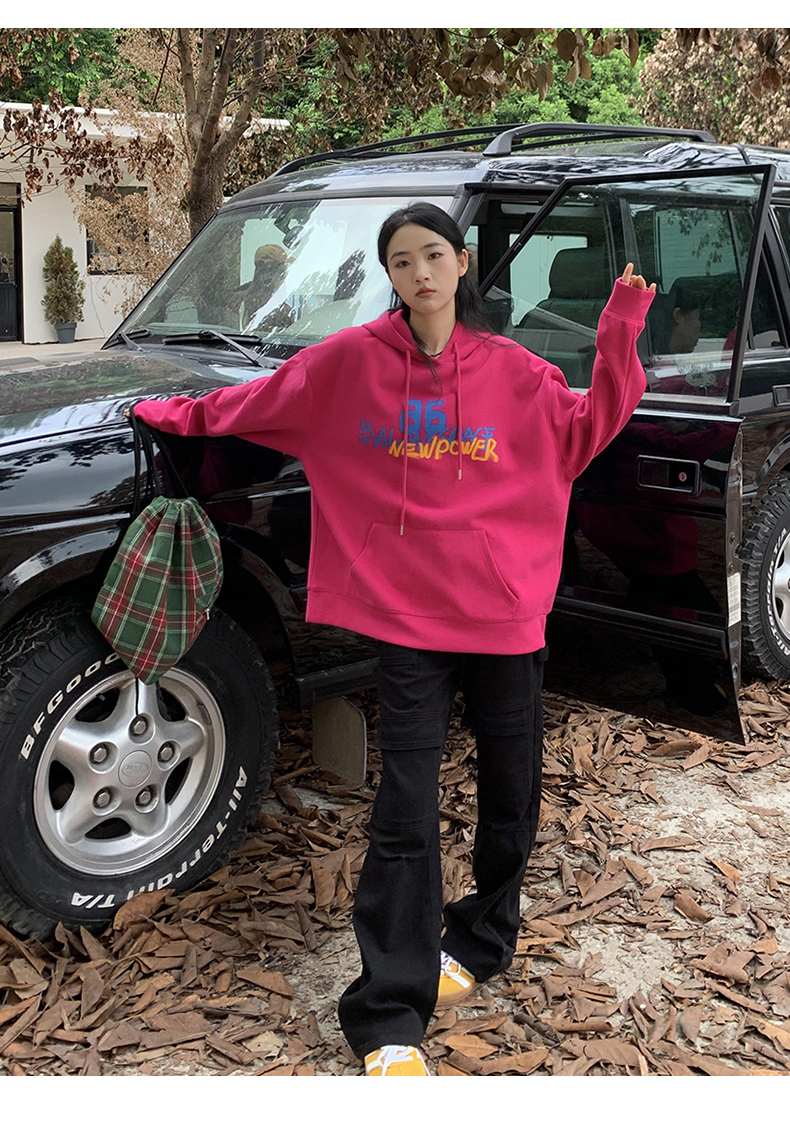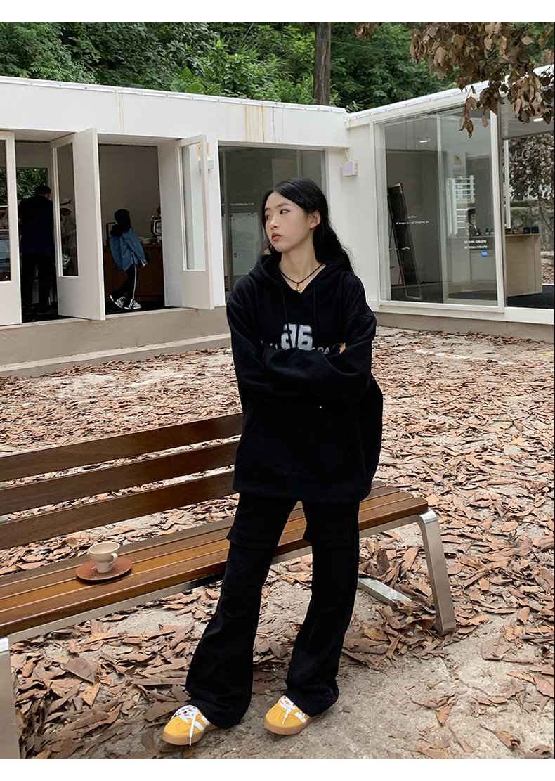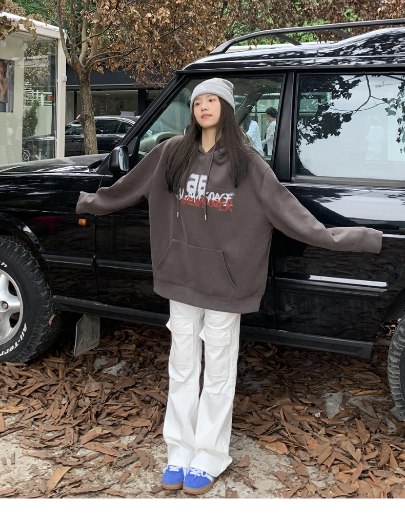 橘子樹在哪兒中性風男女同款連帽運動衫春秋寬鬆深灰色字母印花帽衫