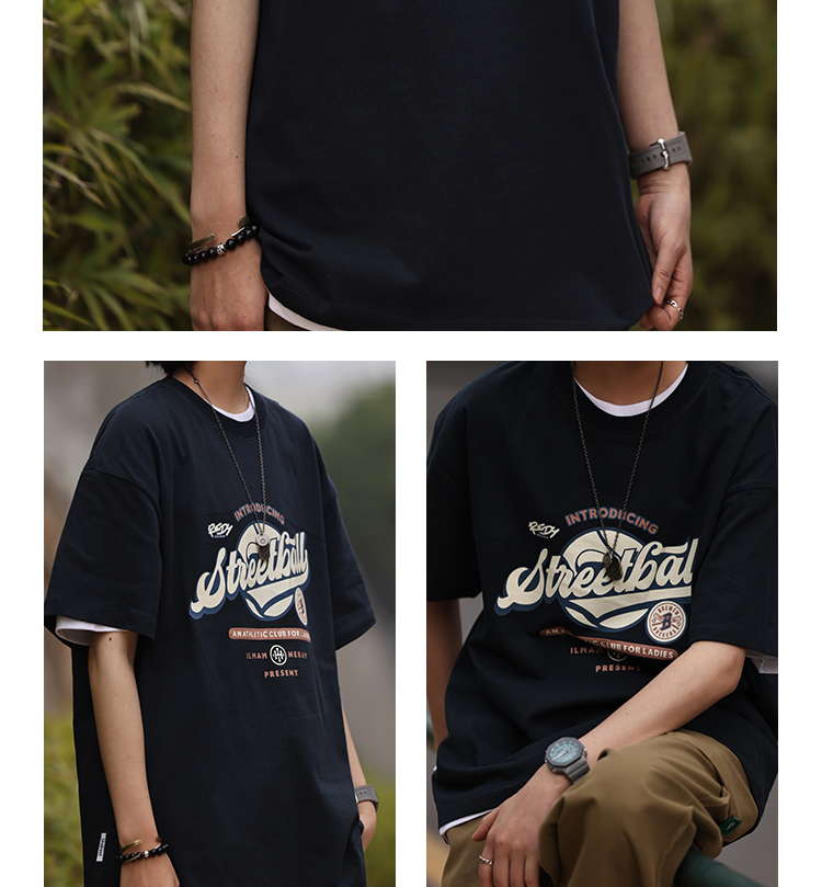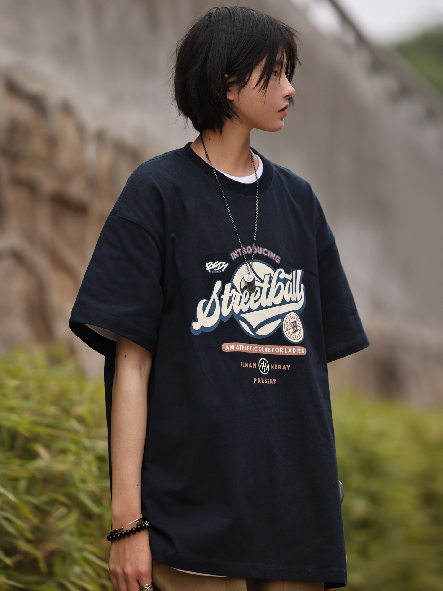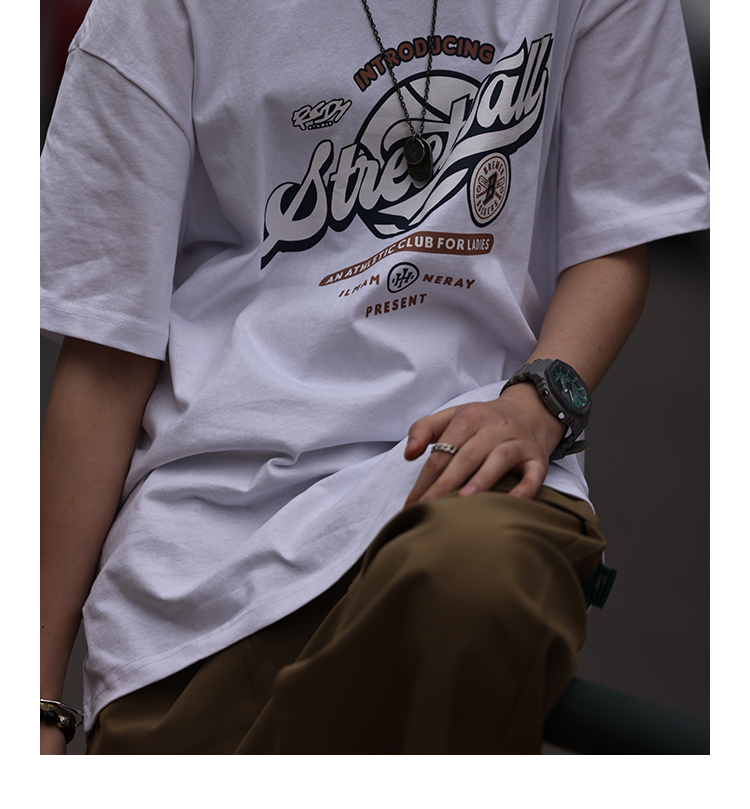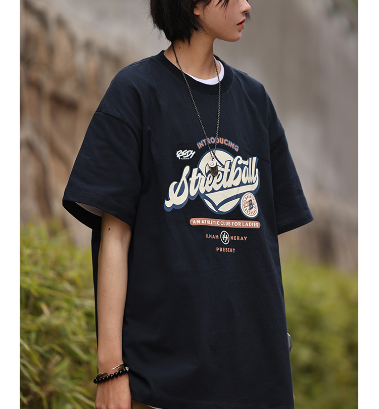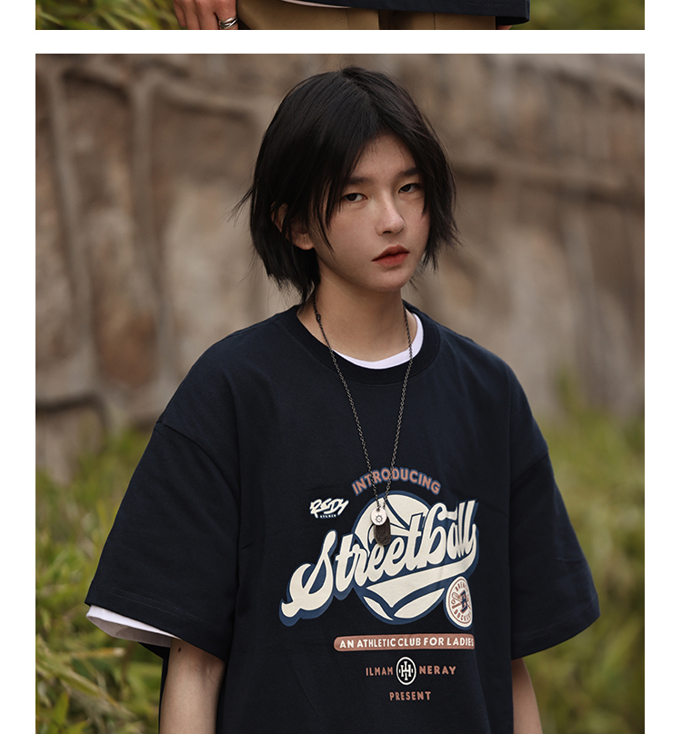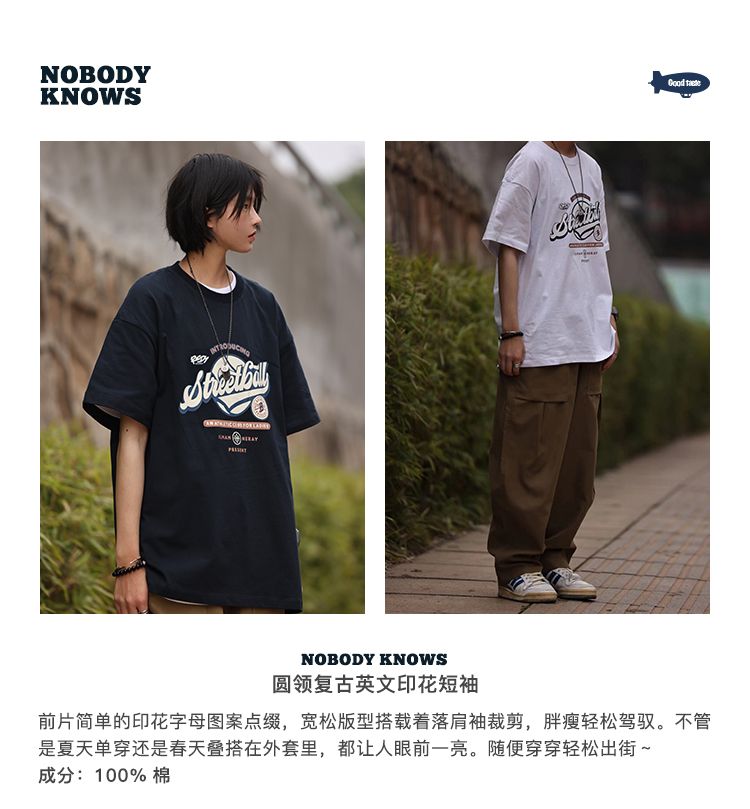 Nobodyknows美式復古學院風純棉休閒百搭字母印花短袖寬鬆潮牌T恤